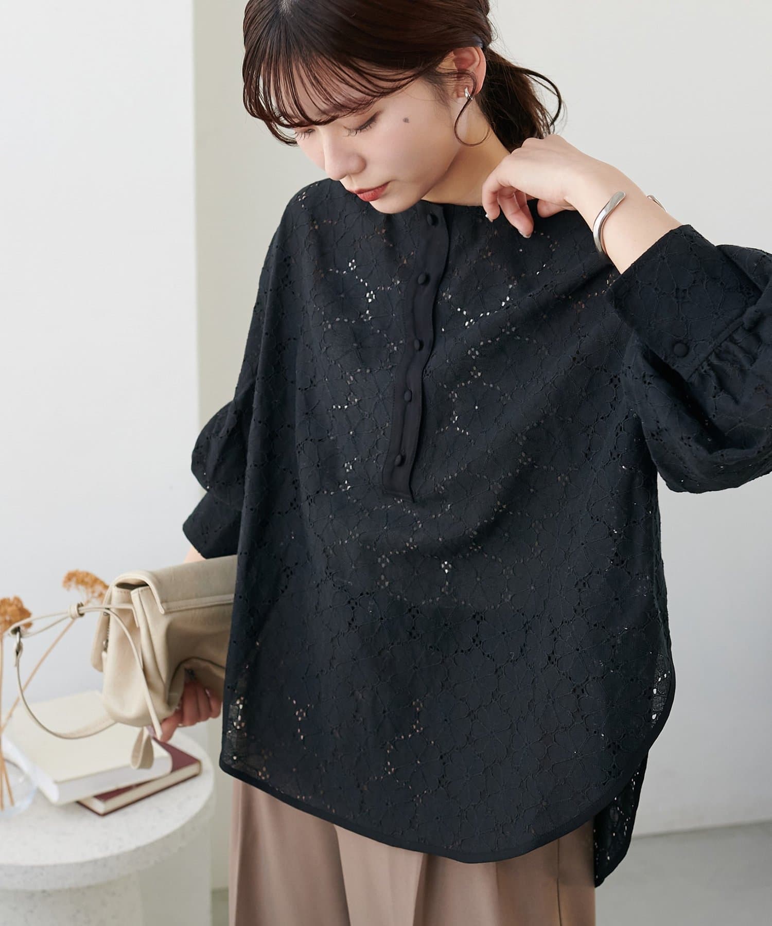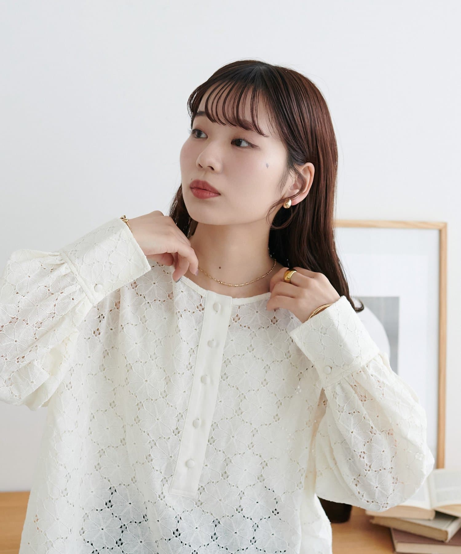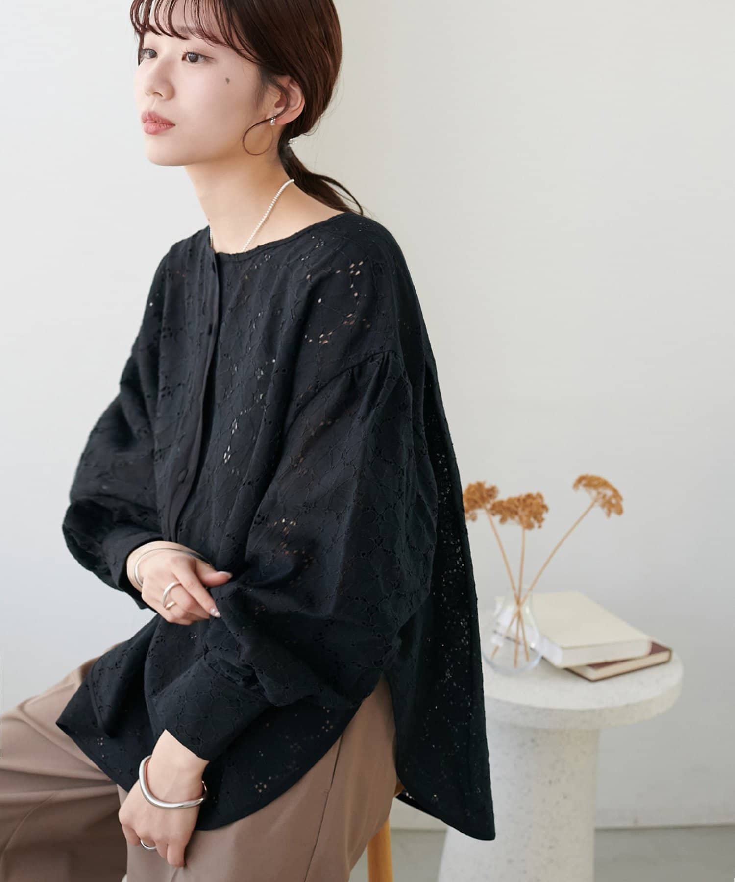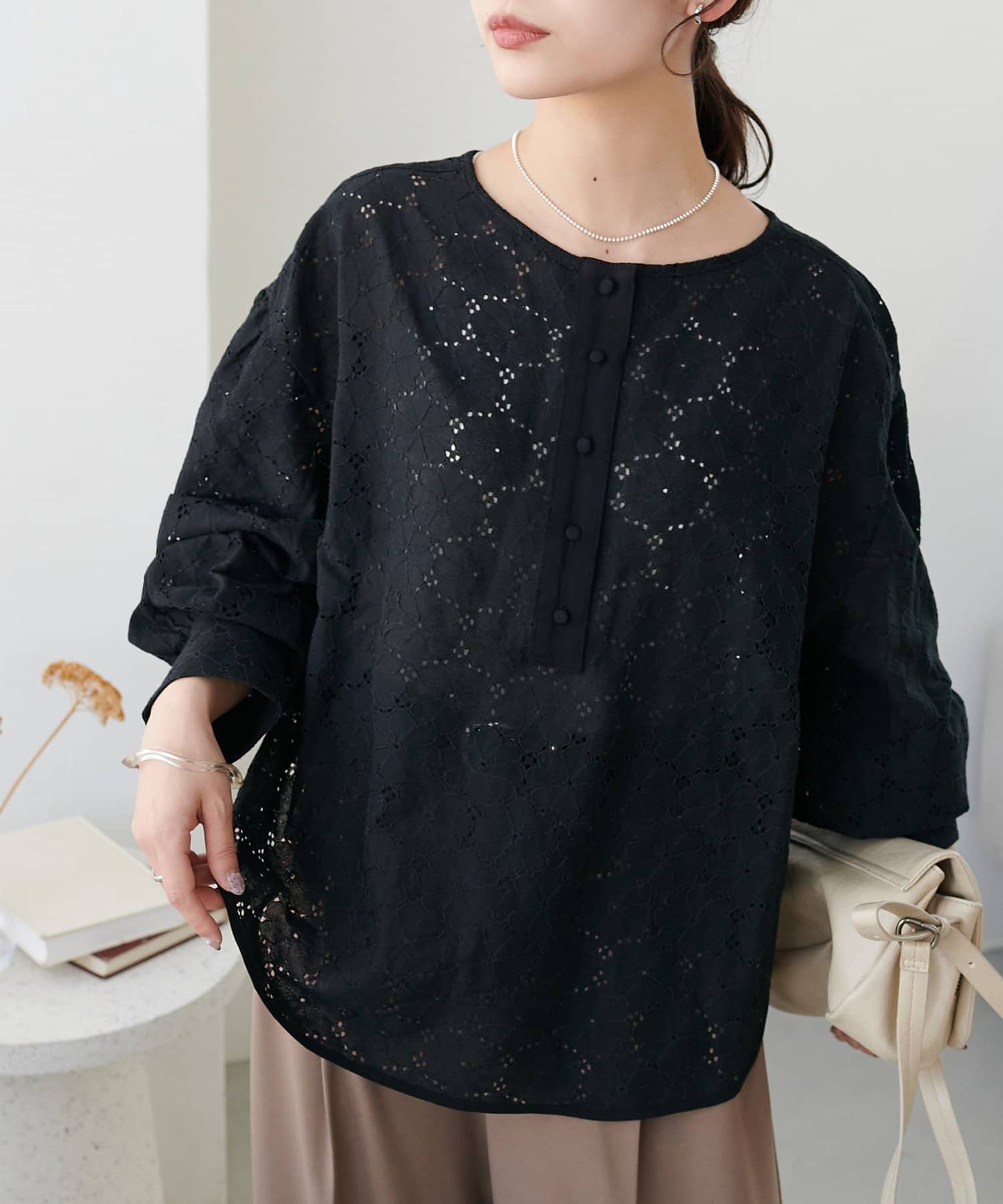 【WEB限定】ノーカラーレースブラウス