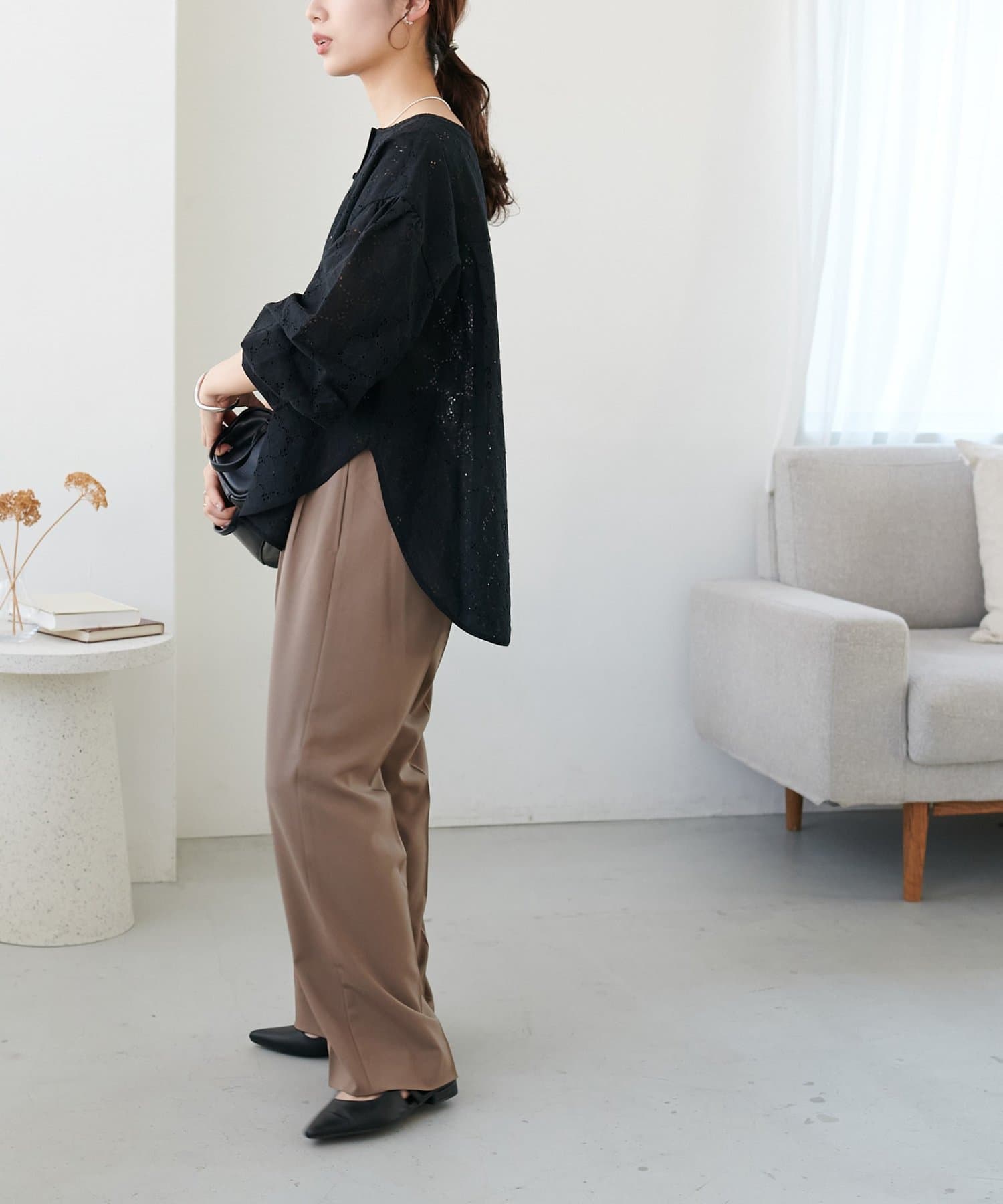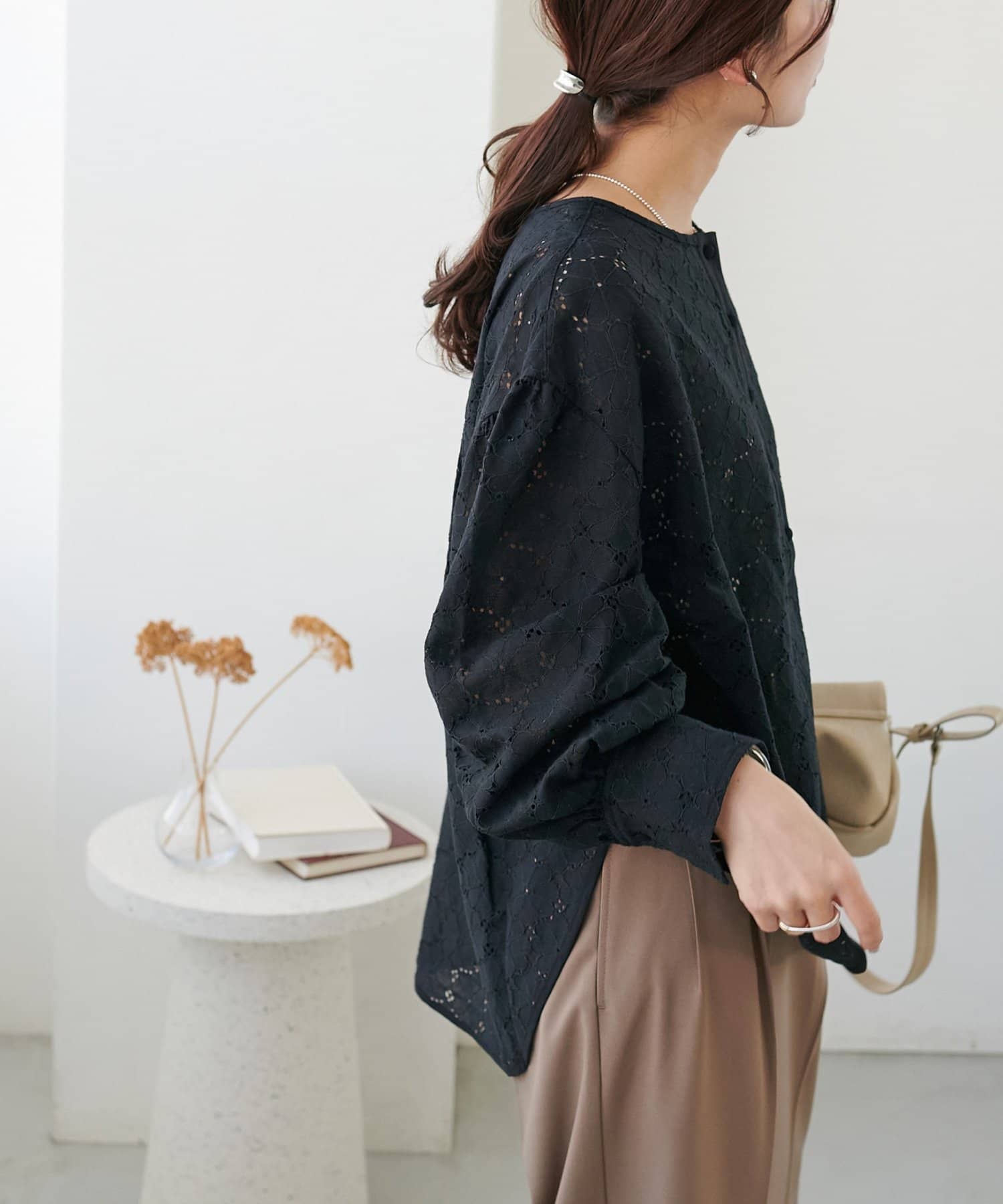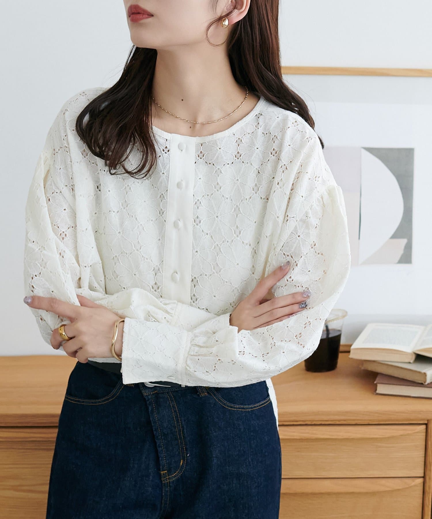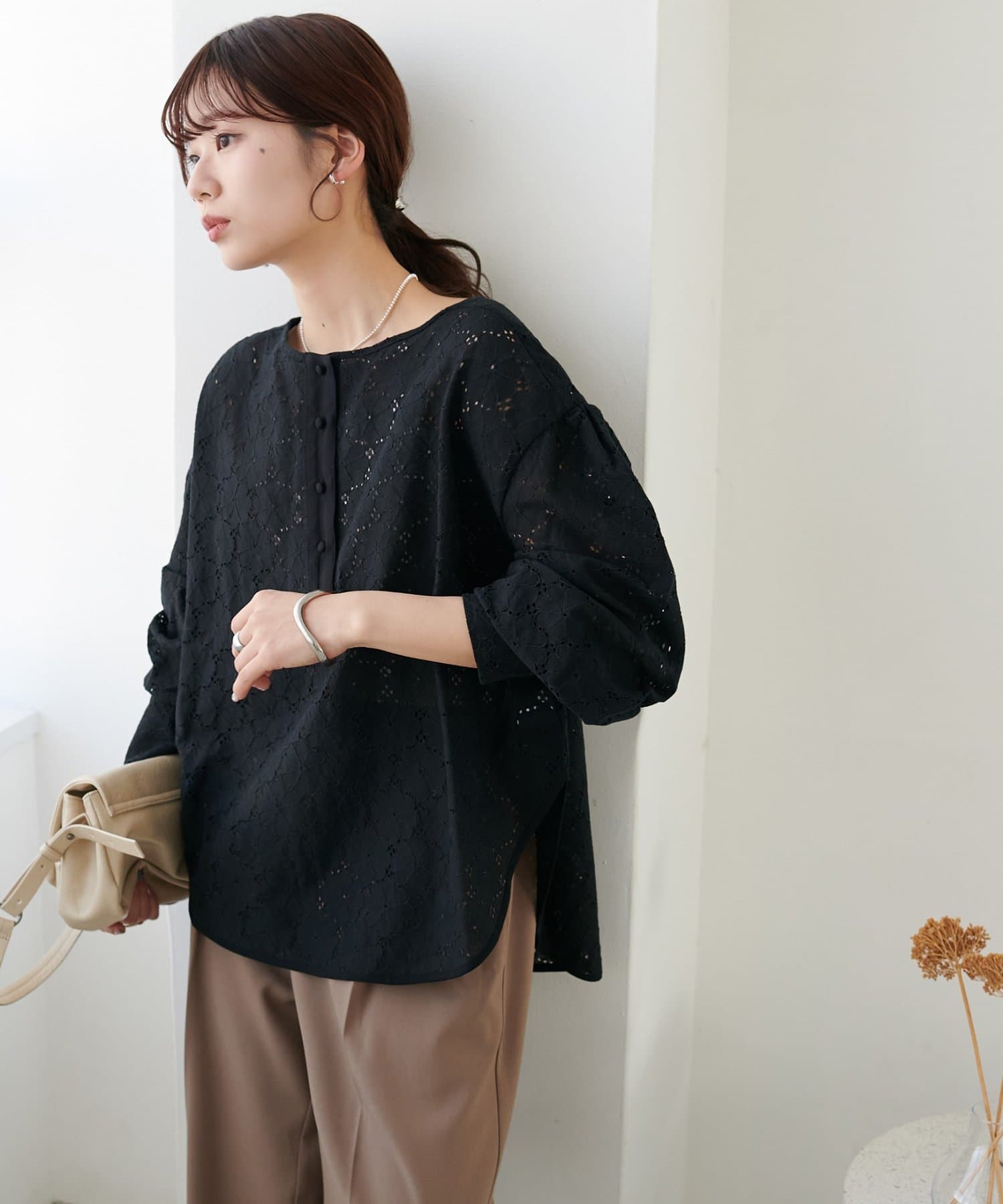 【WEB限定】ノーカラーレースブラウス