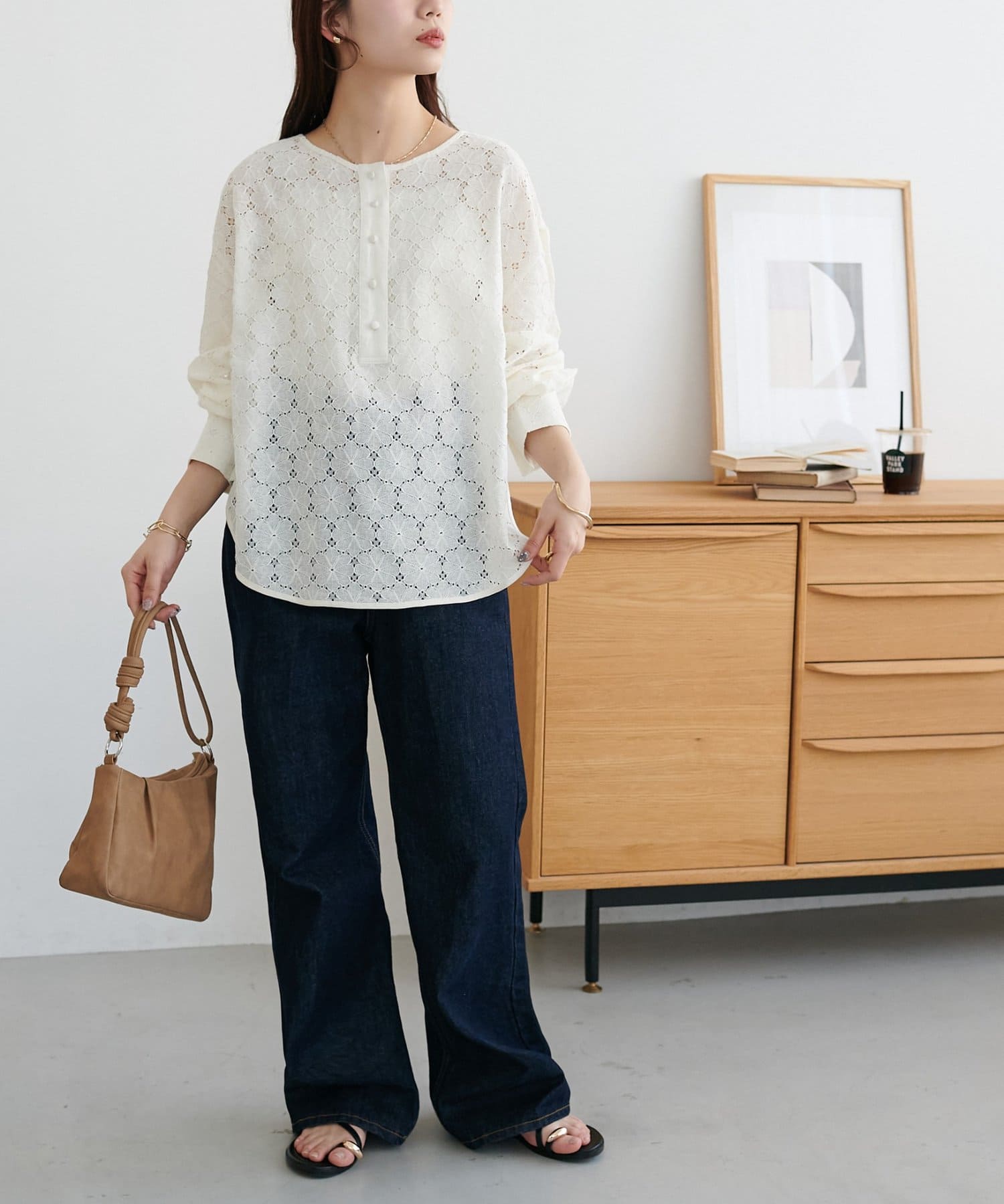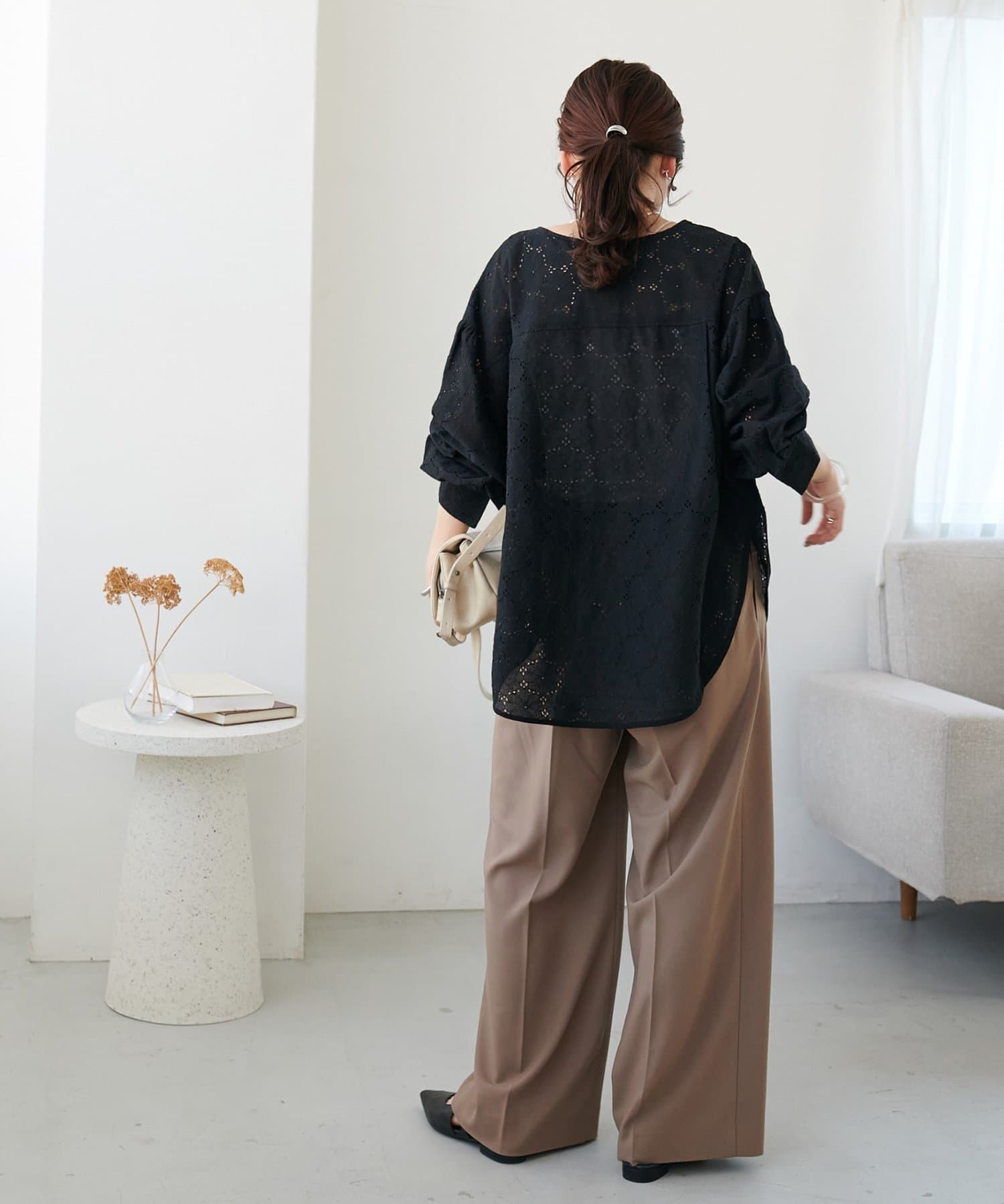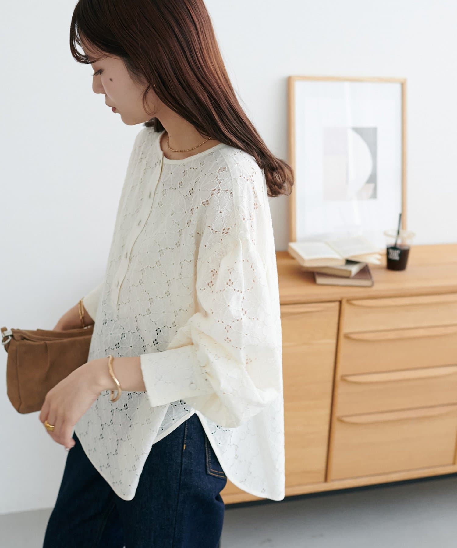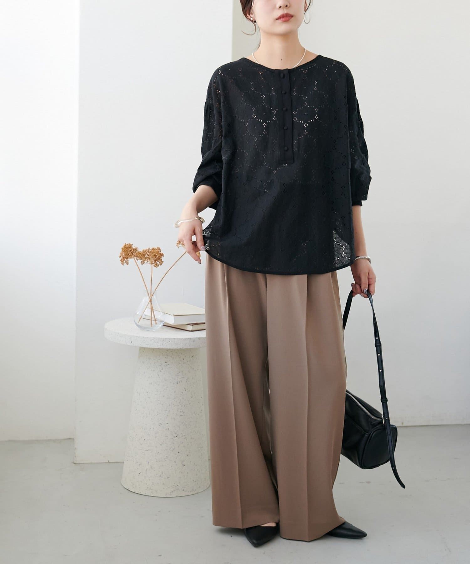 【WEB限定】ノーカラーレースブラウス