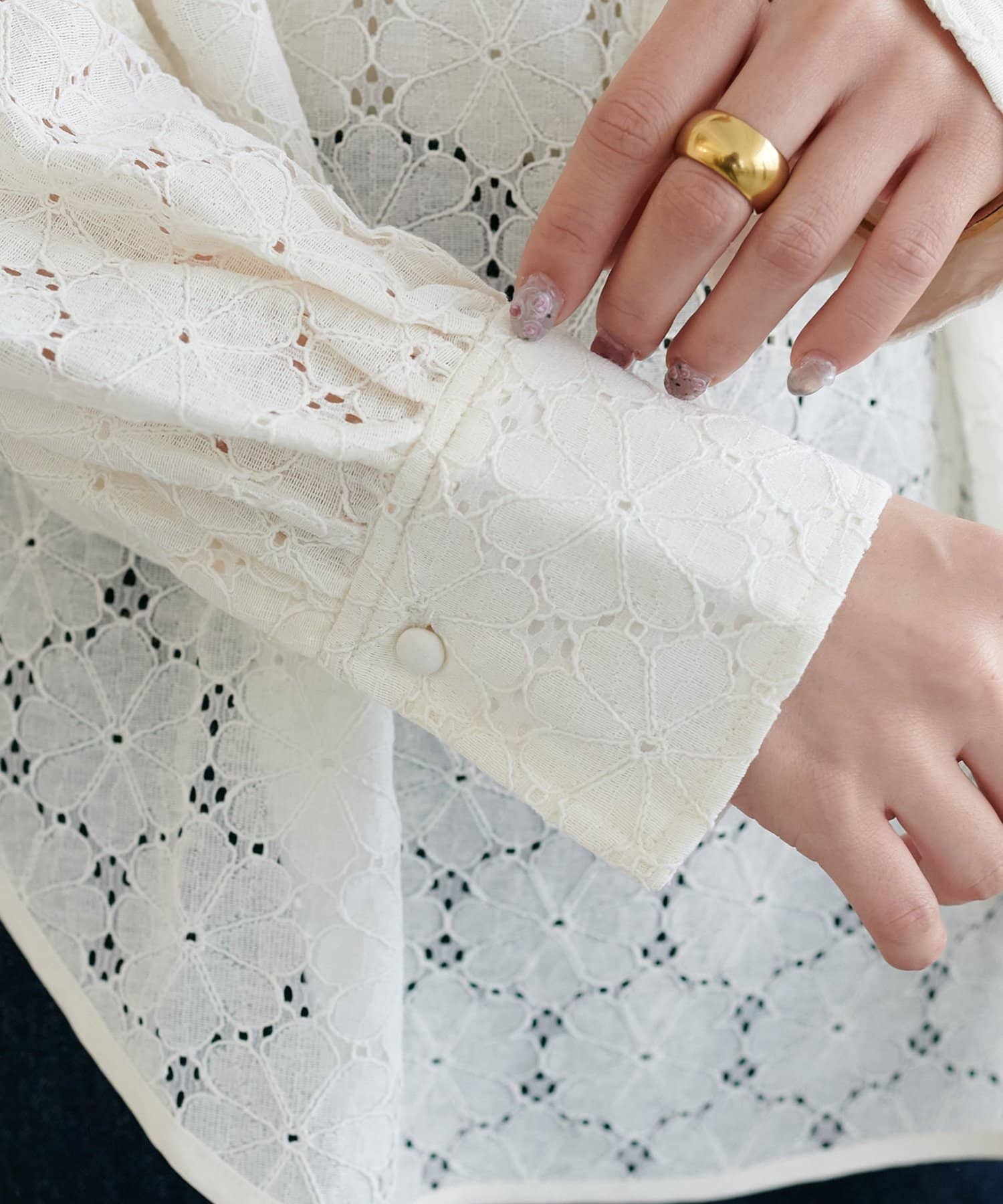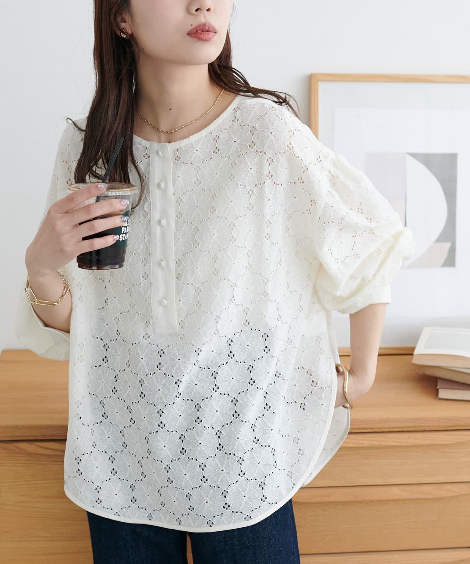 TOP > DISCOAT > レディース > トップス > シャツ/ブラウス(ボタン) > 【WEB限定】ノーカラーレースブラウス