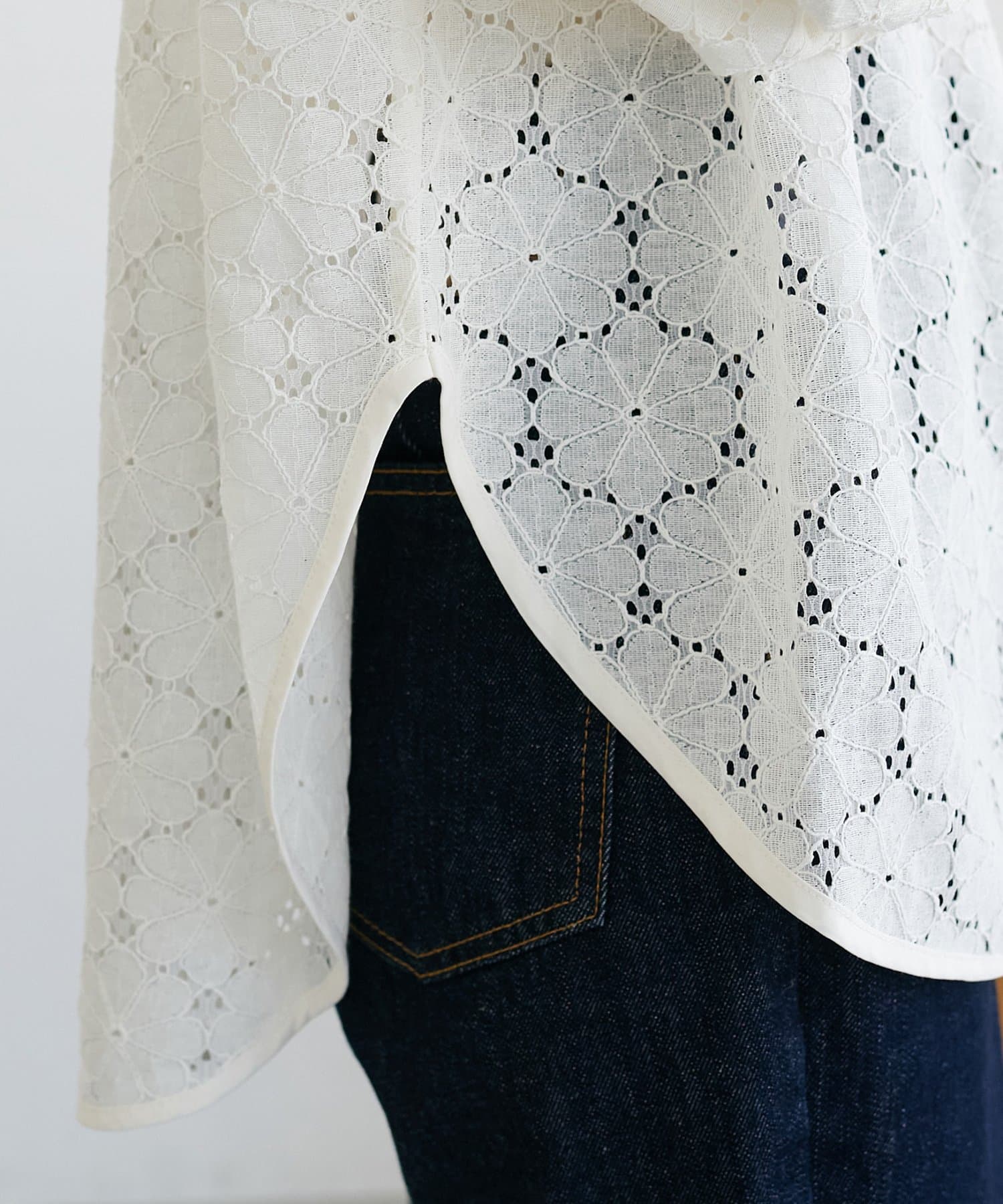 • DISCOAT(ディスコート) 【WEB限定】ノーカラーレースブラウス