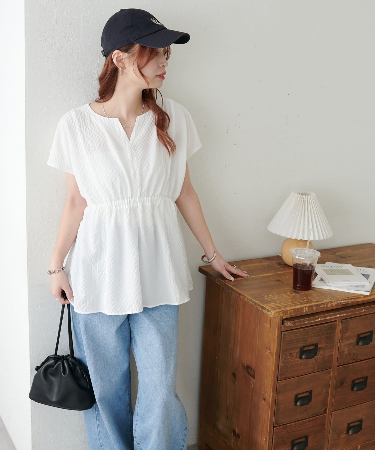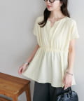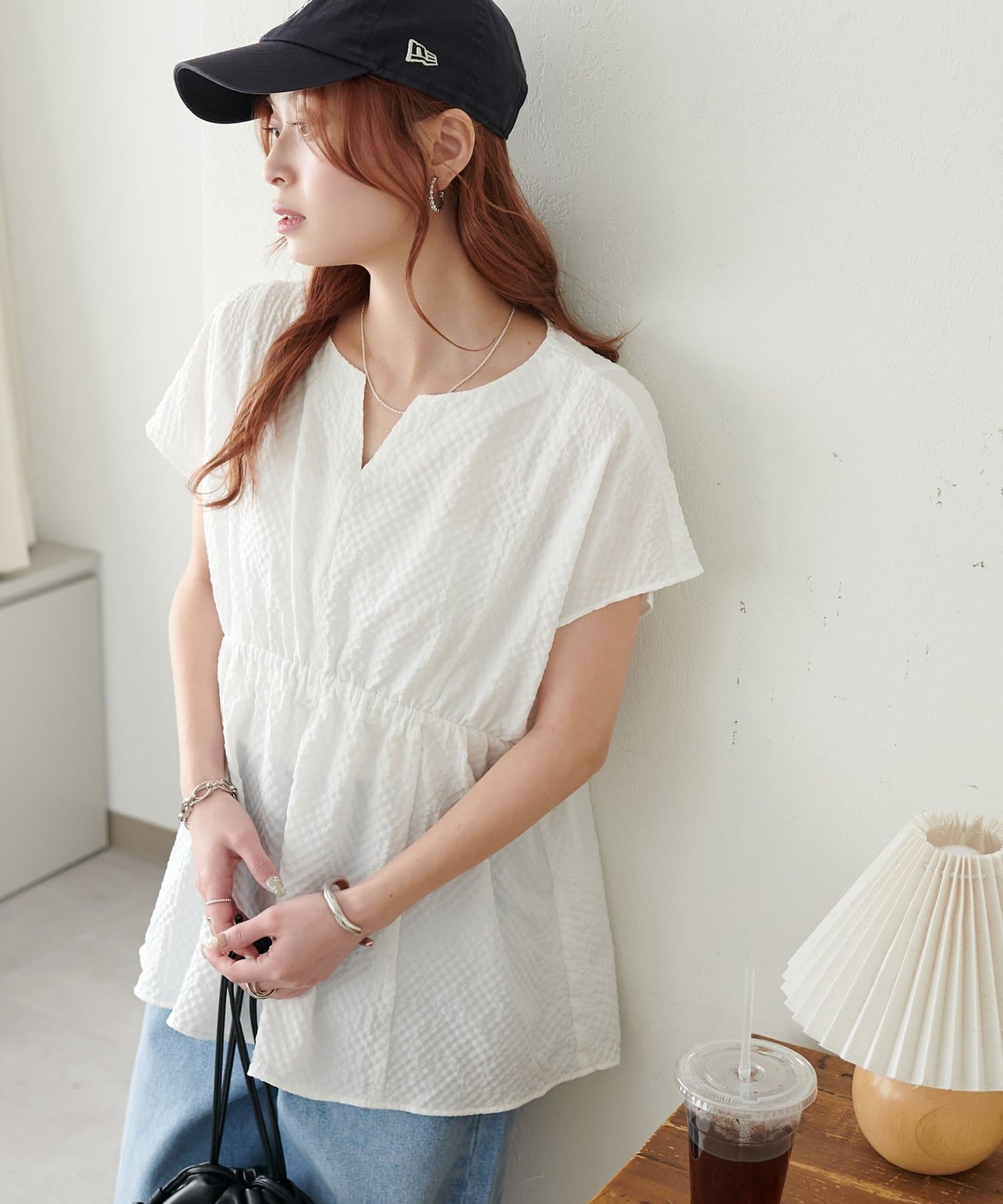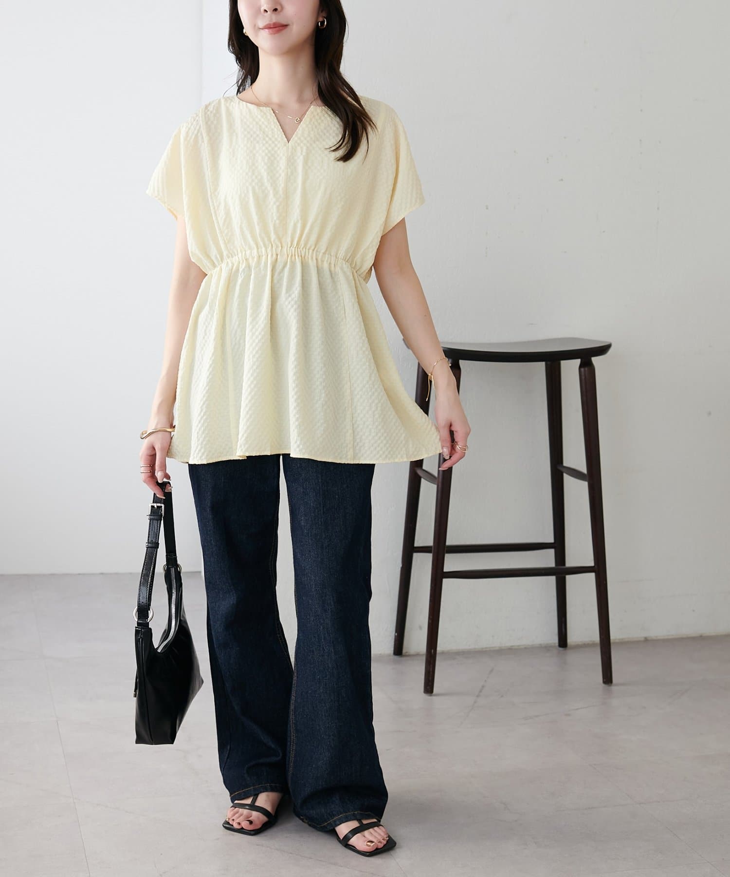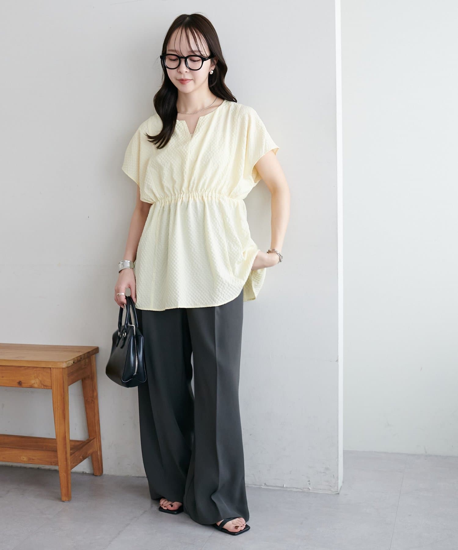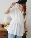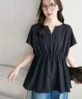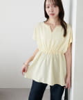 ウエストギャザーで着映える、大人のフレンチスリーブブラウス