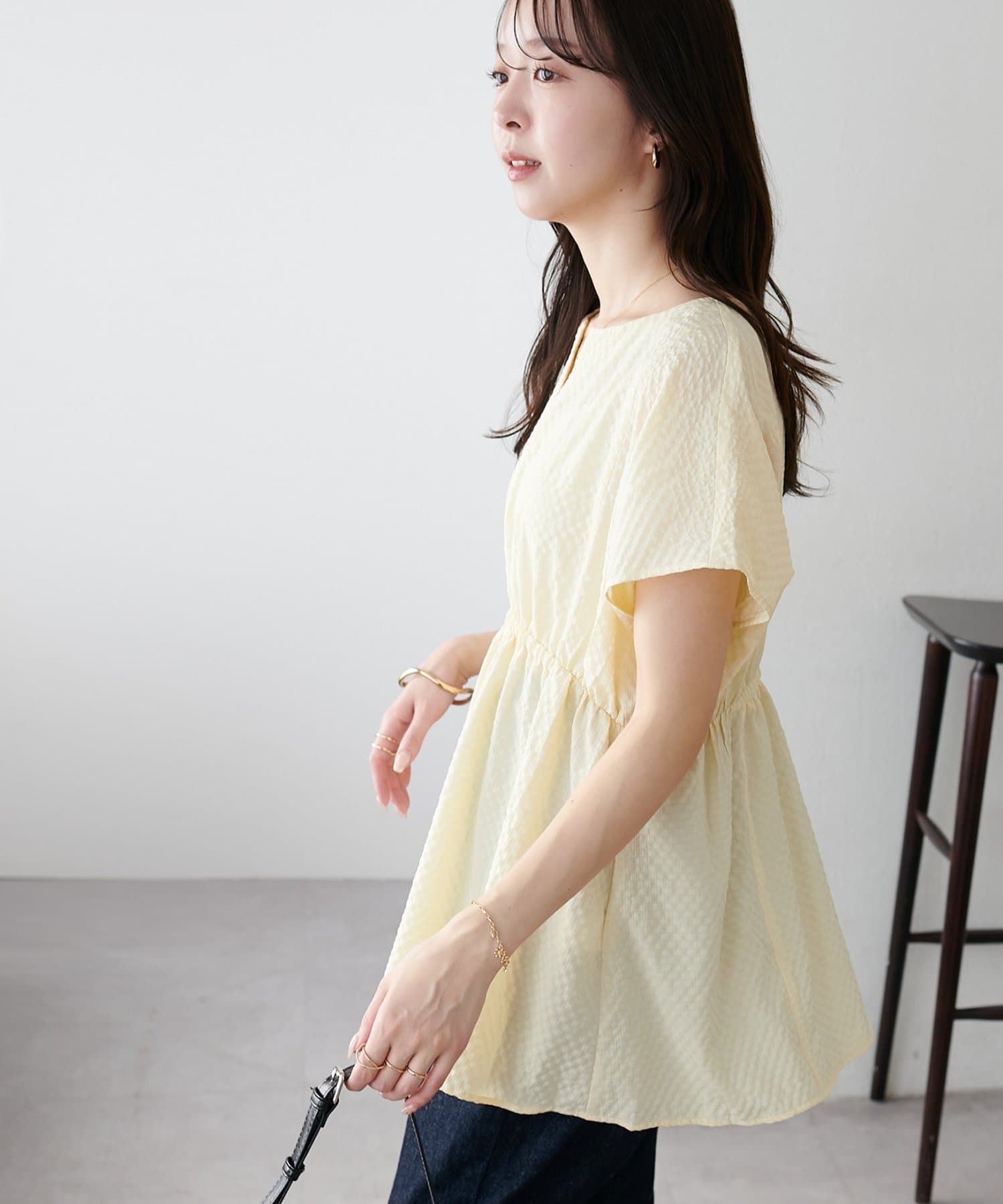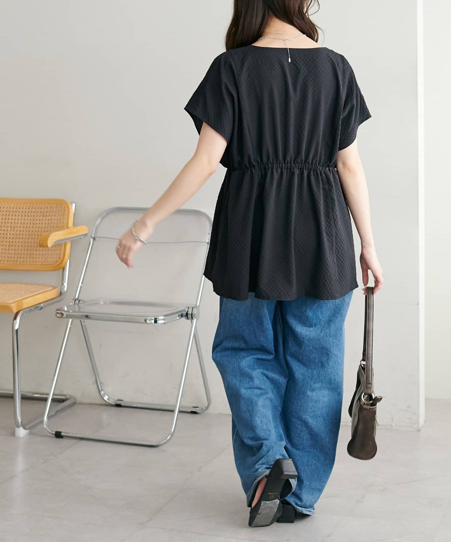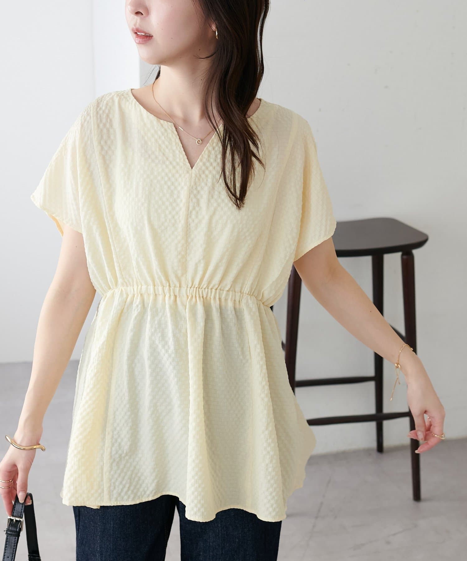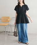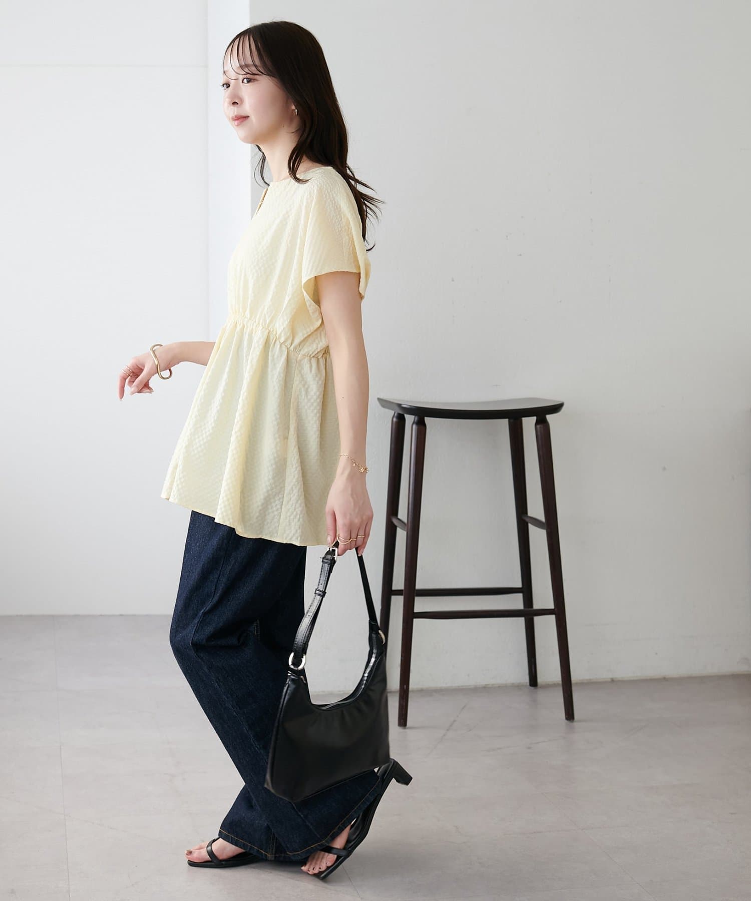 ウエストギャザーで着映える、大人のフレンチスリーブブラウス