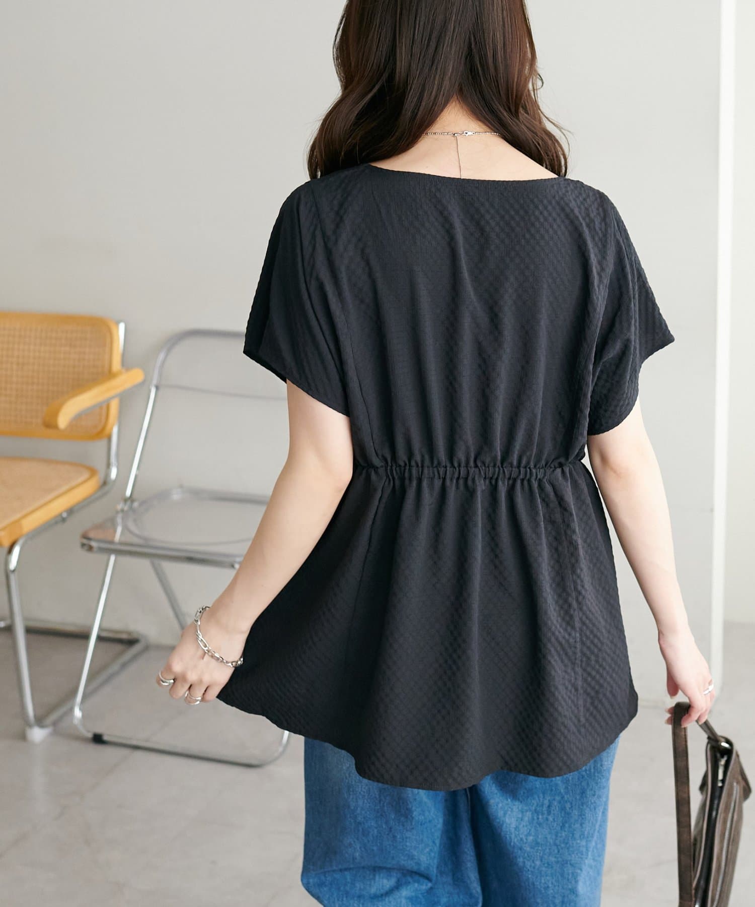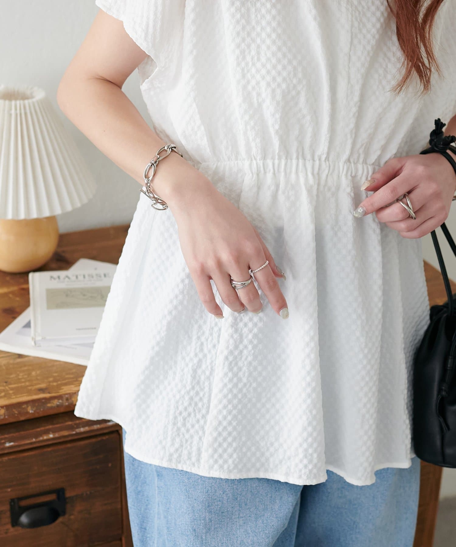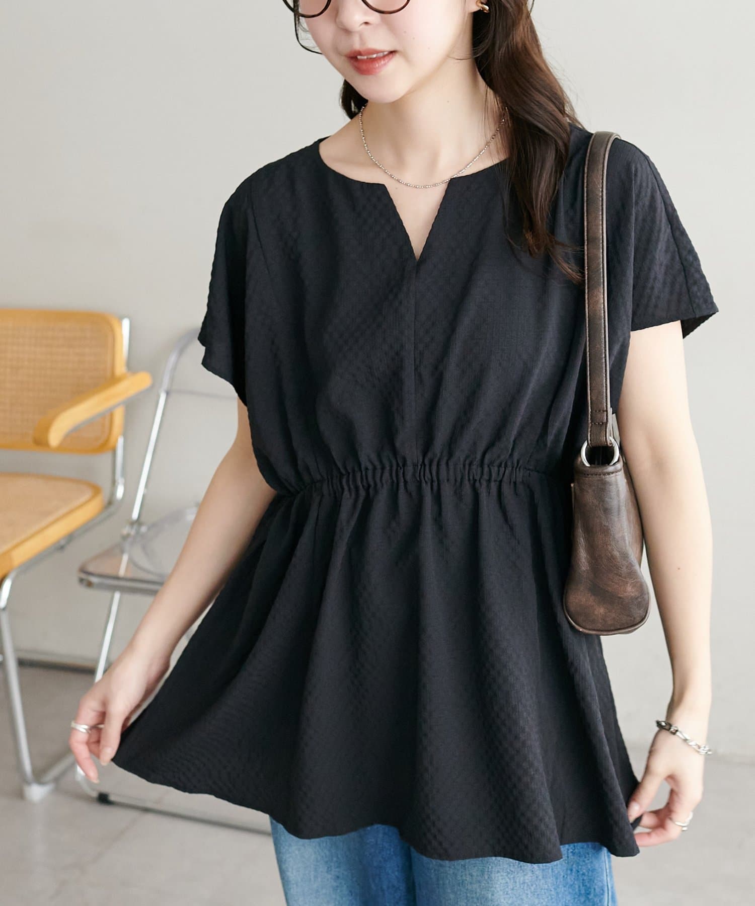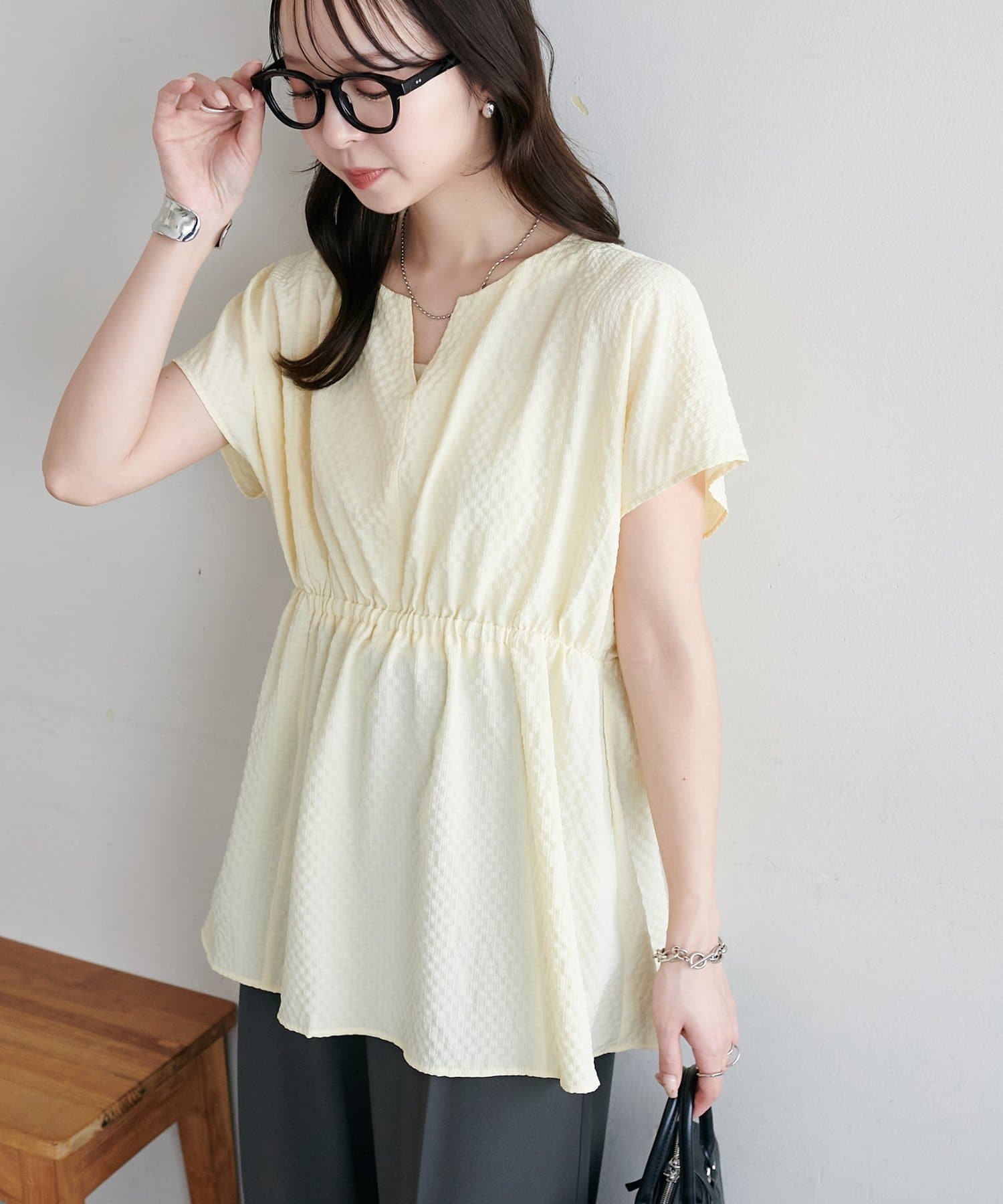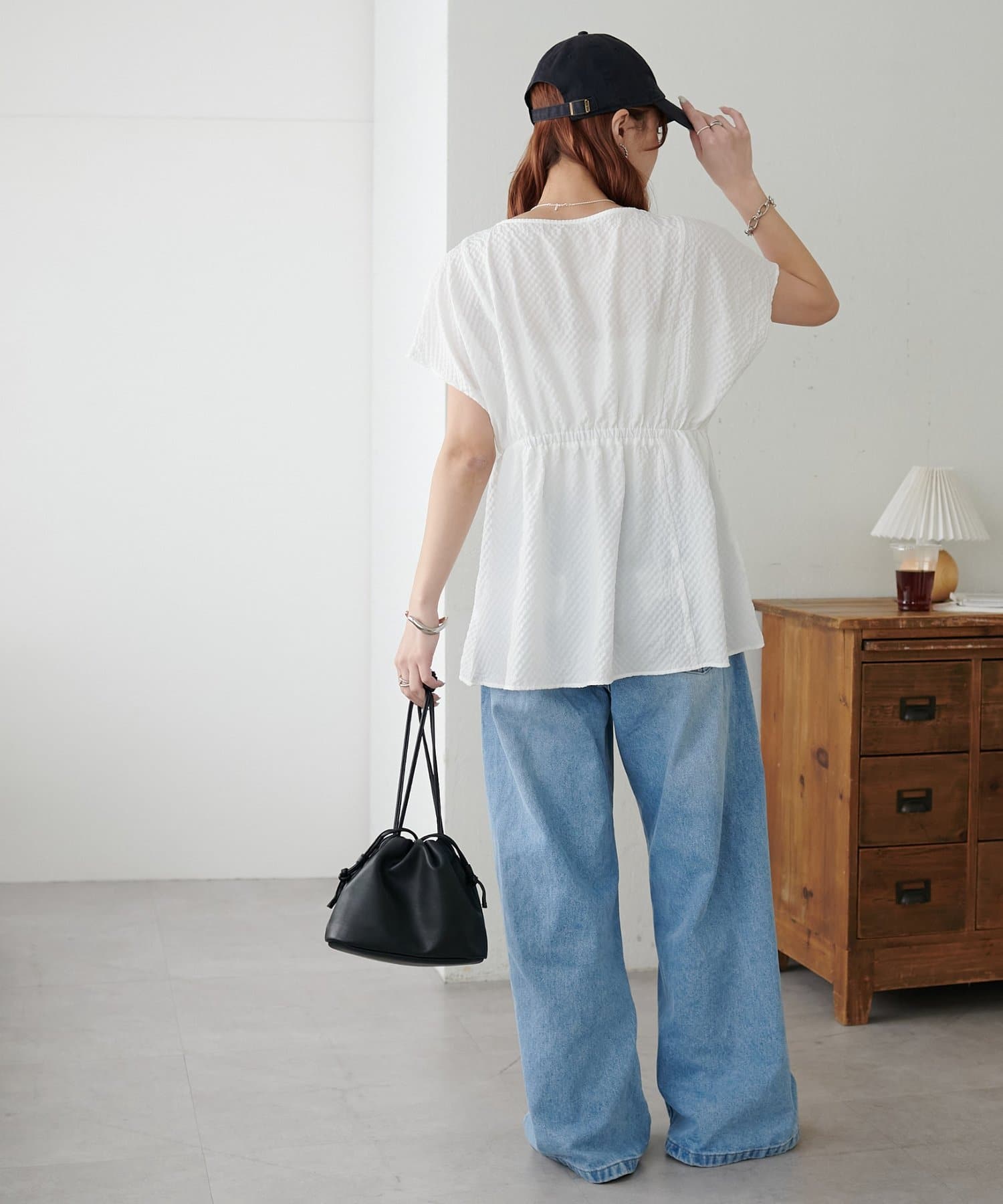 ウエストギャザーで着映える、大人のフレンチスリーブブラウス