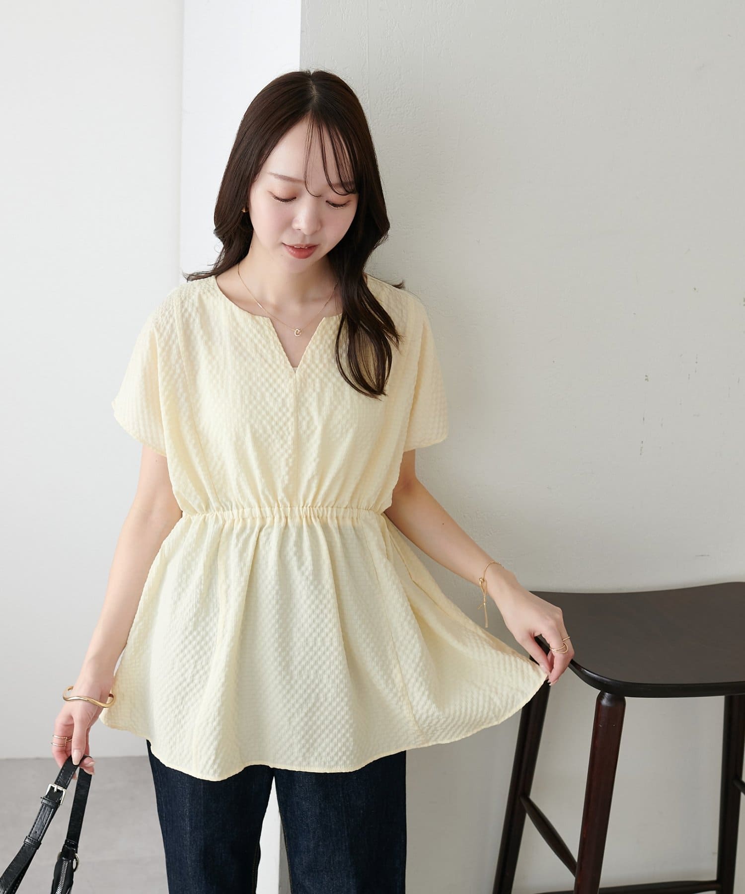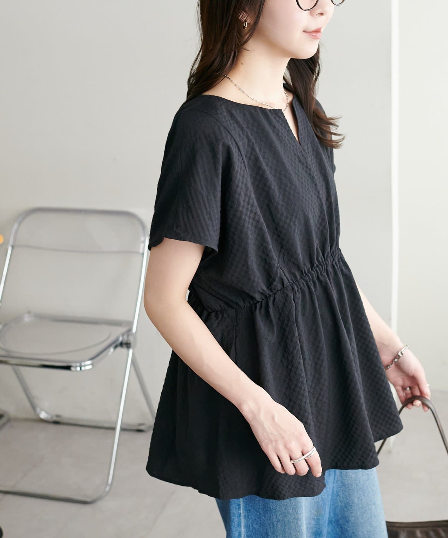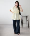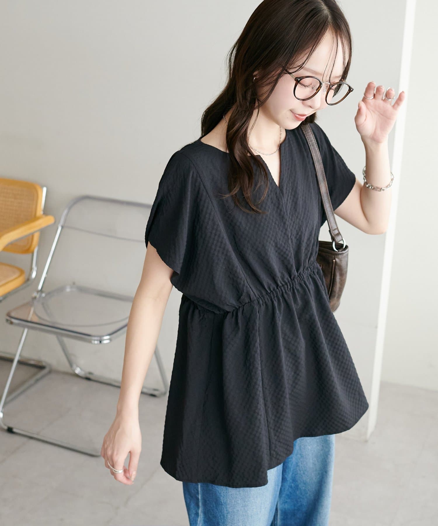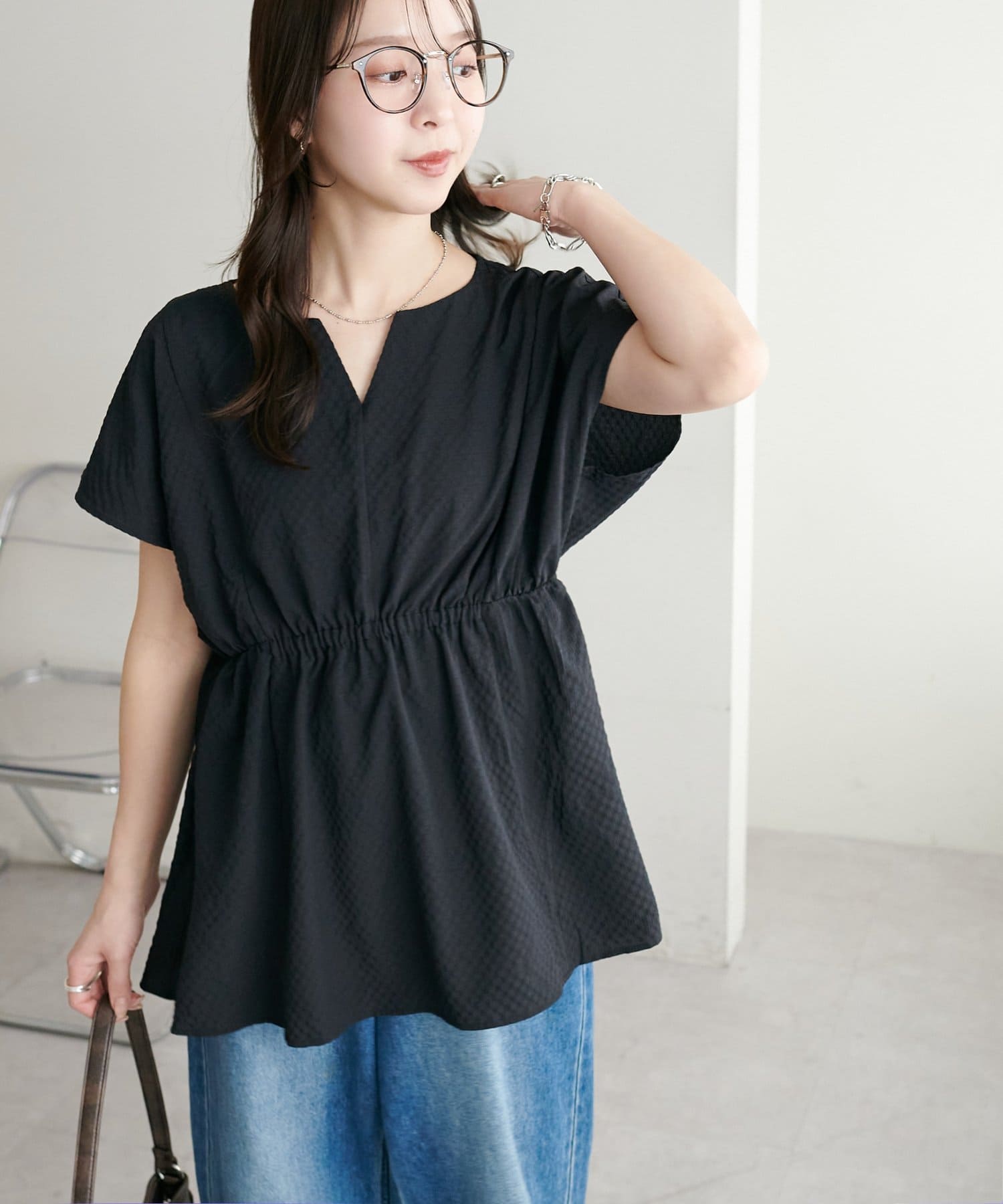 ウエストギャザーで着映える、大人のフレンチスリーブブラウス