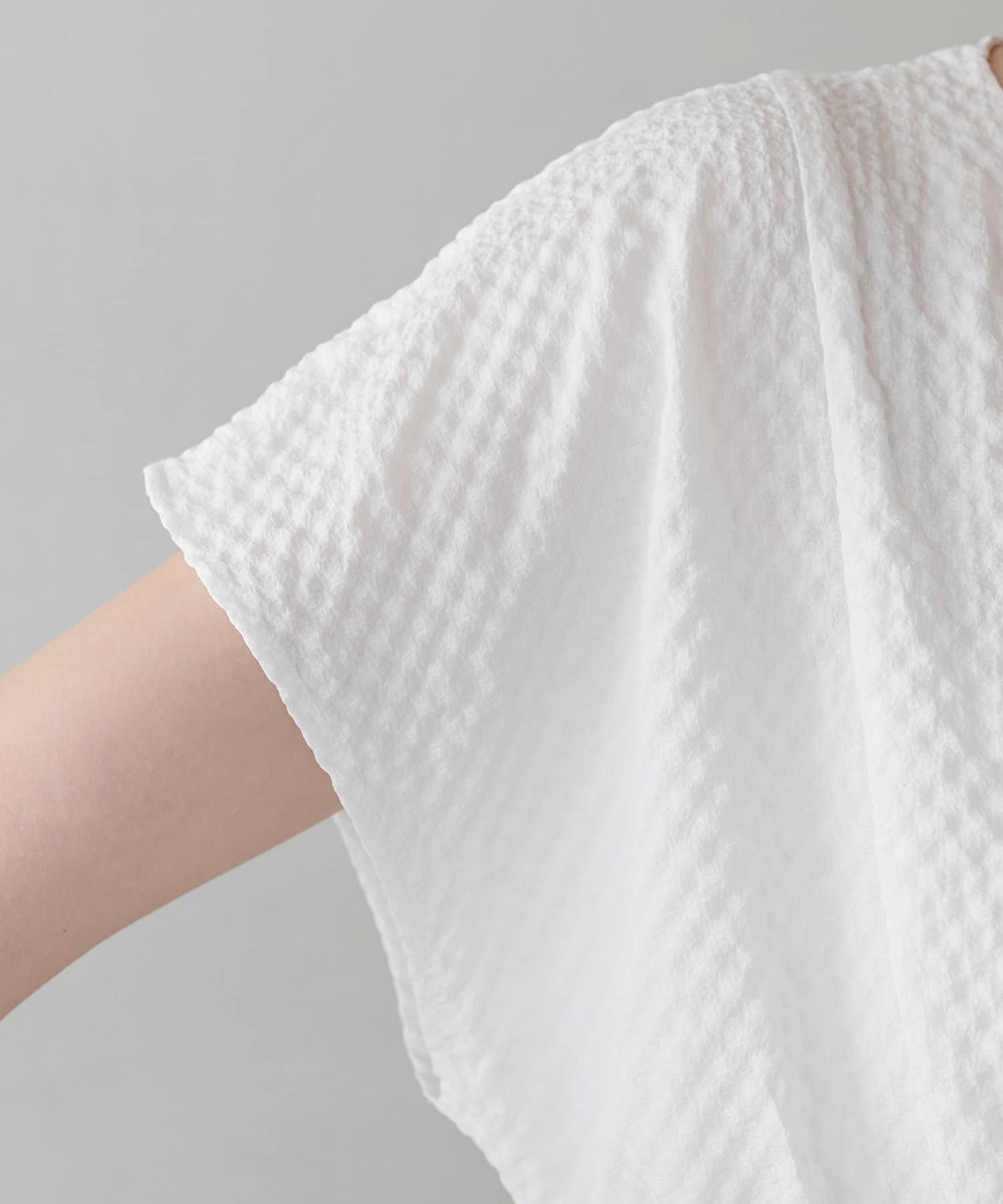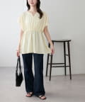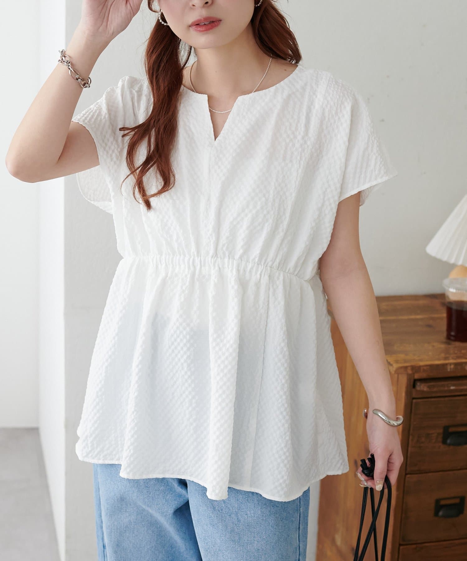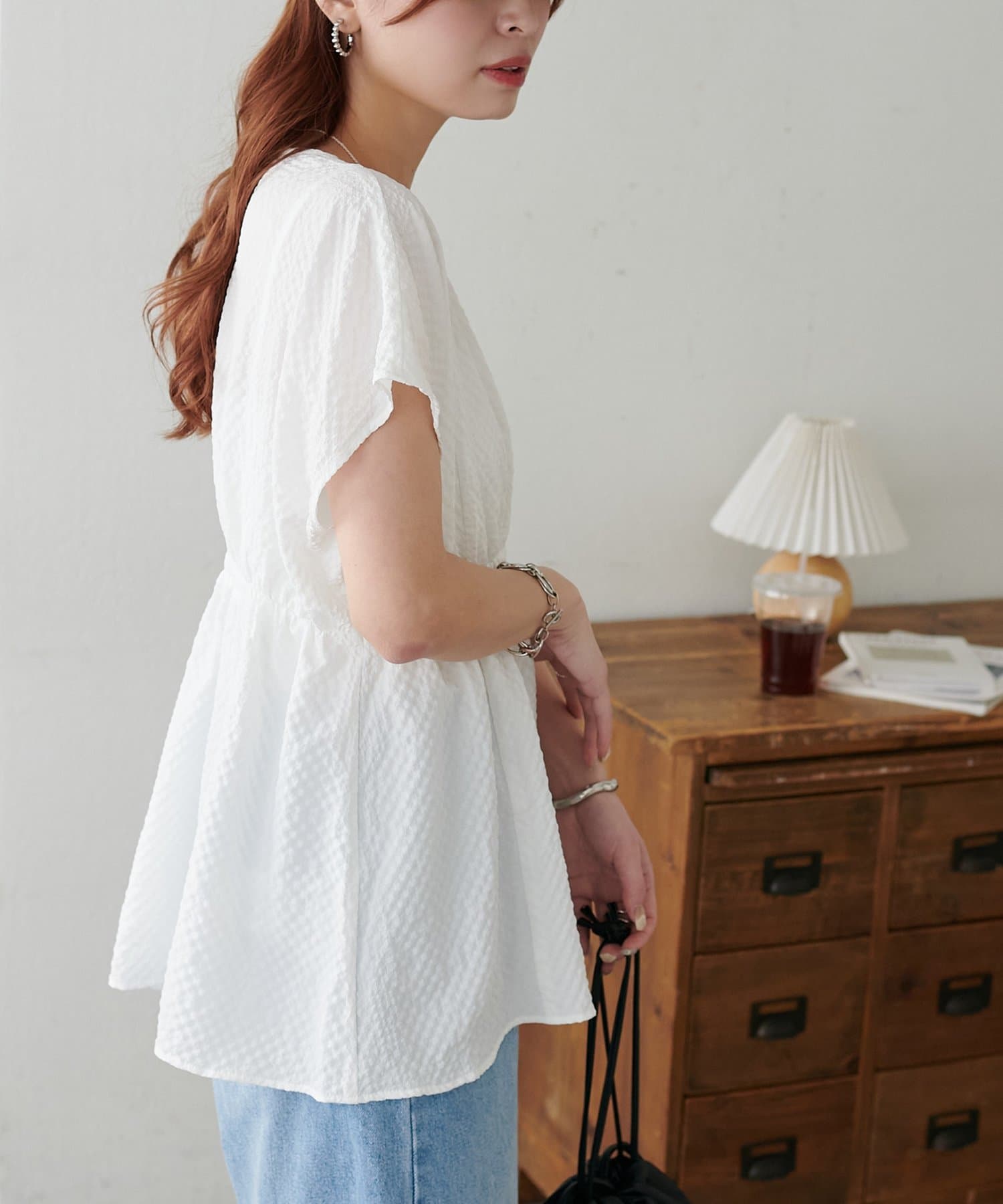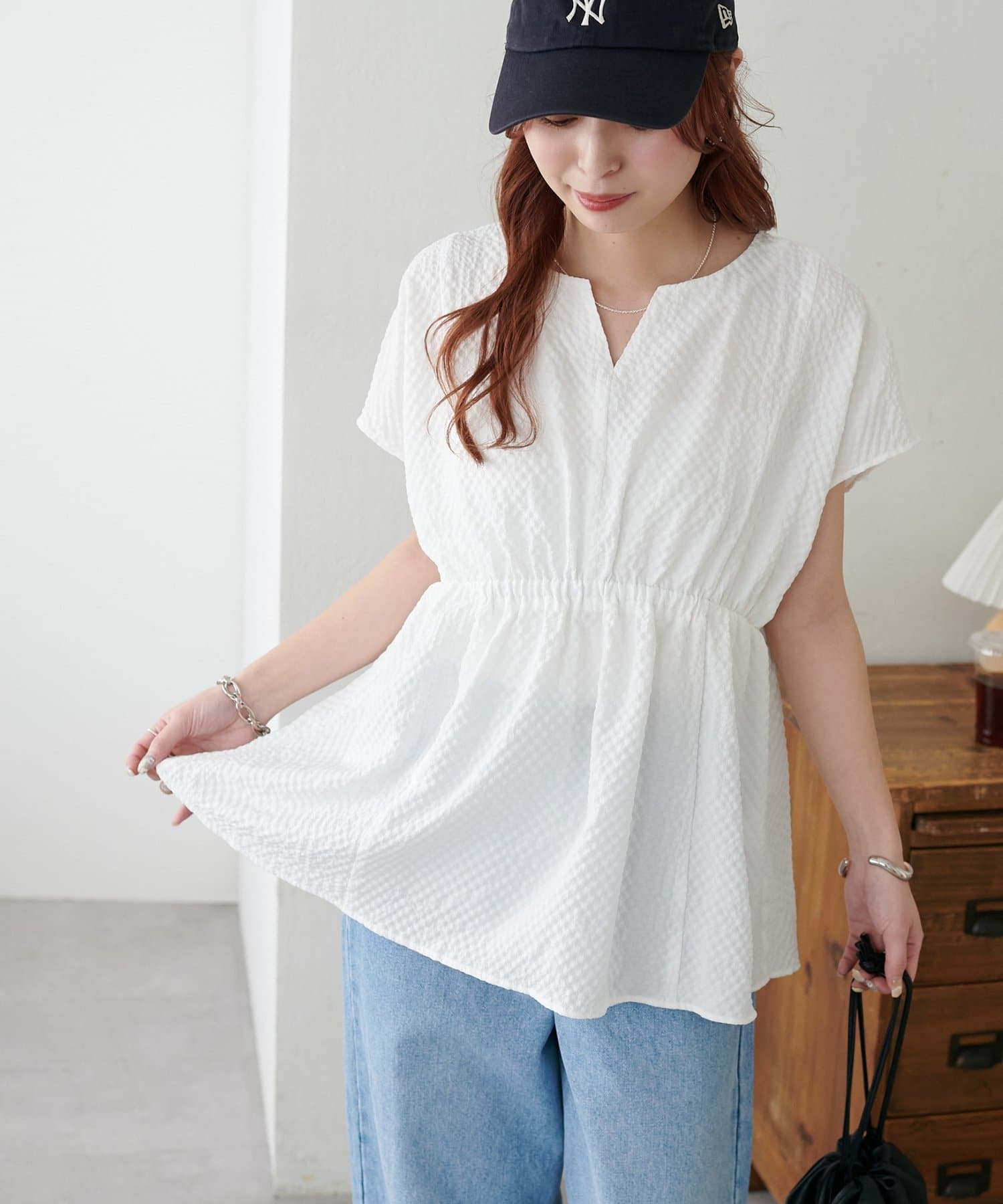 ウエストギャザーで着映える、大人のフレンチスリーブブラウス