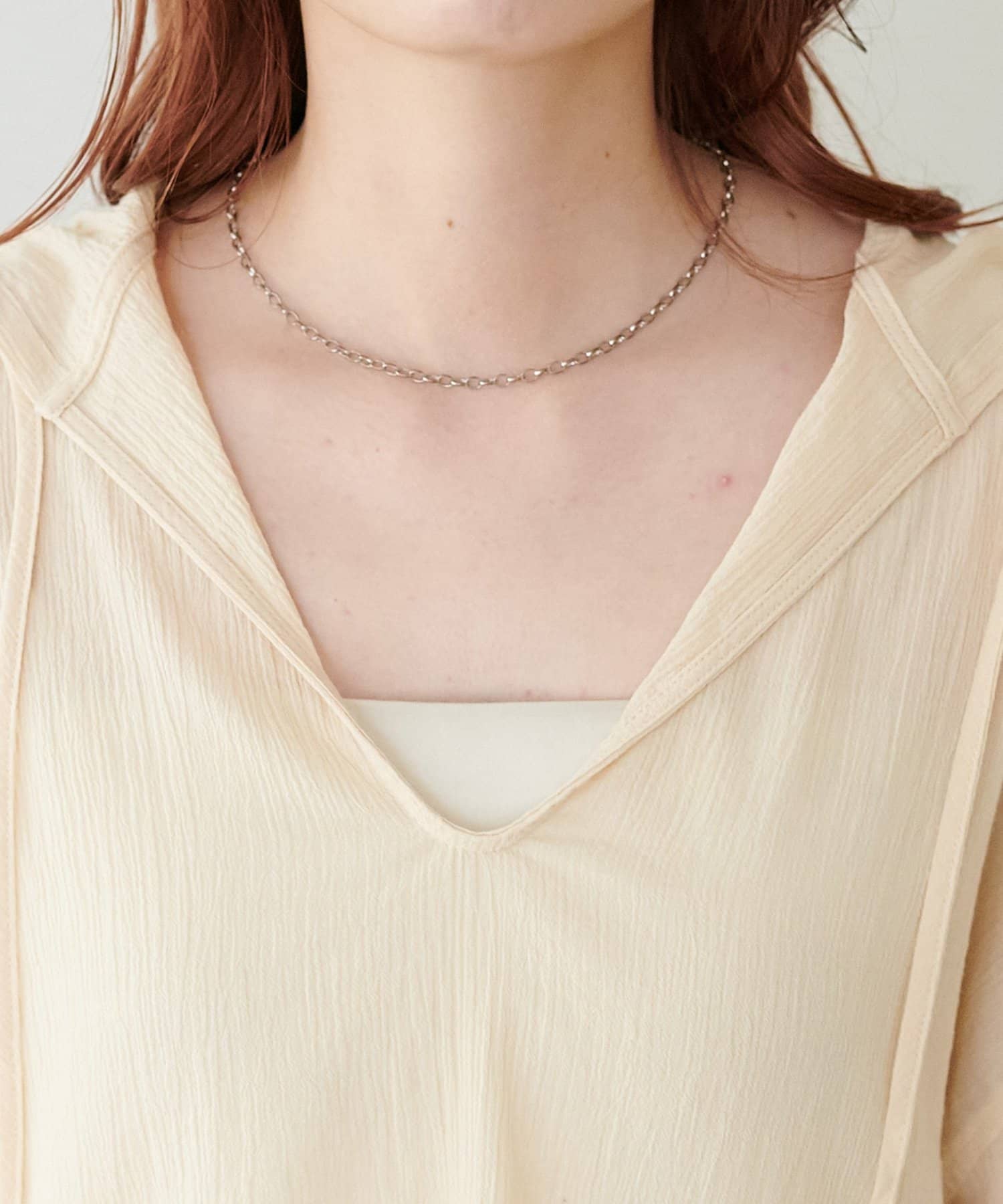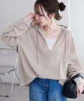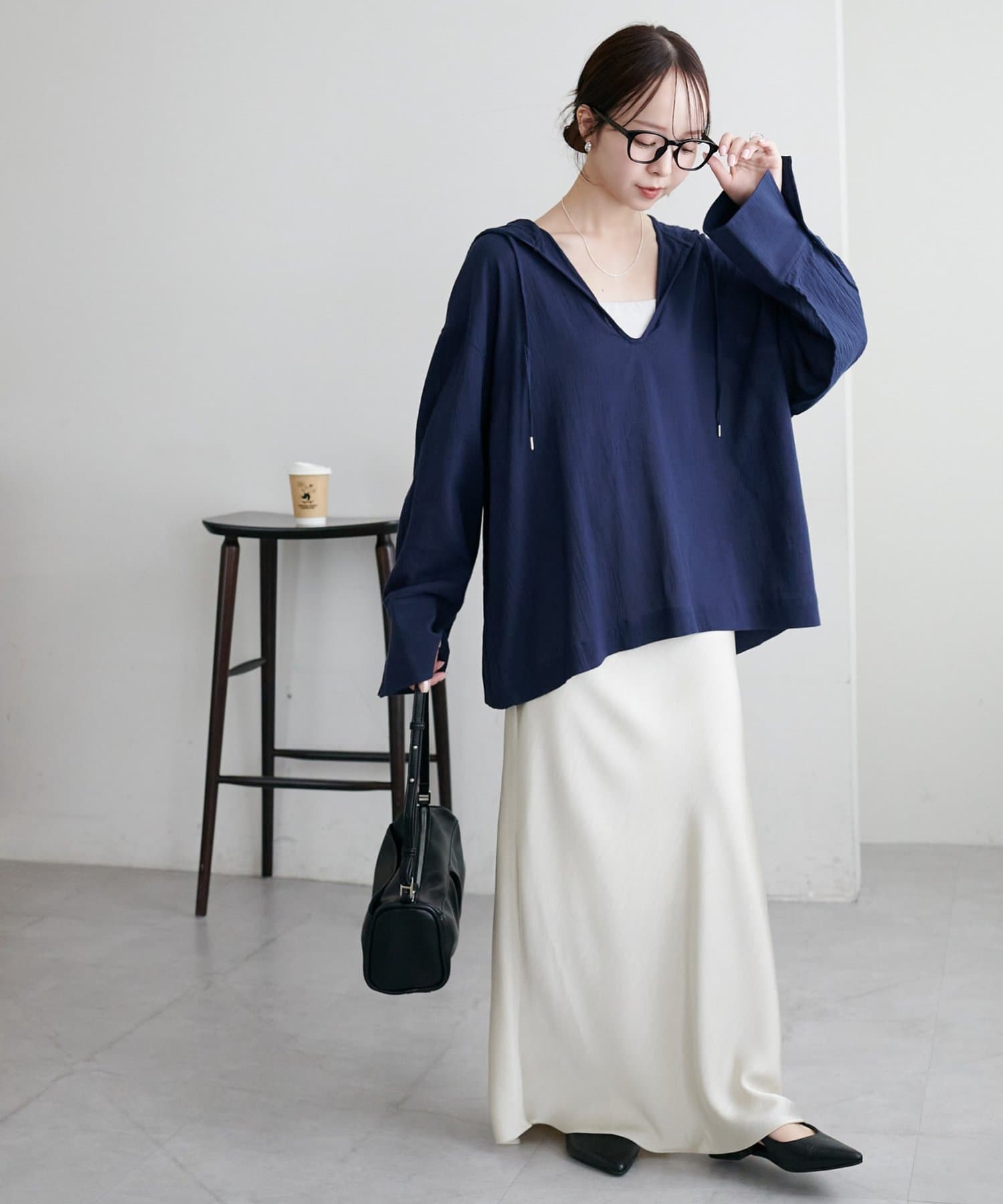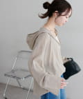 ・顔周りをすっきりと見せる、抜け感のあるフード付きスキッパーデザイン。