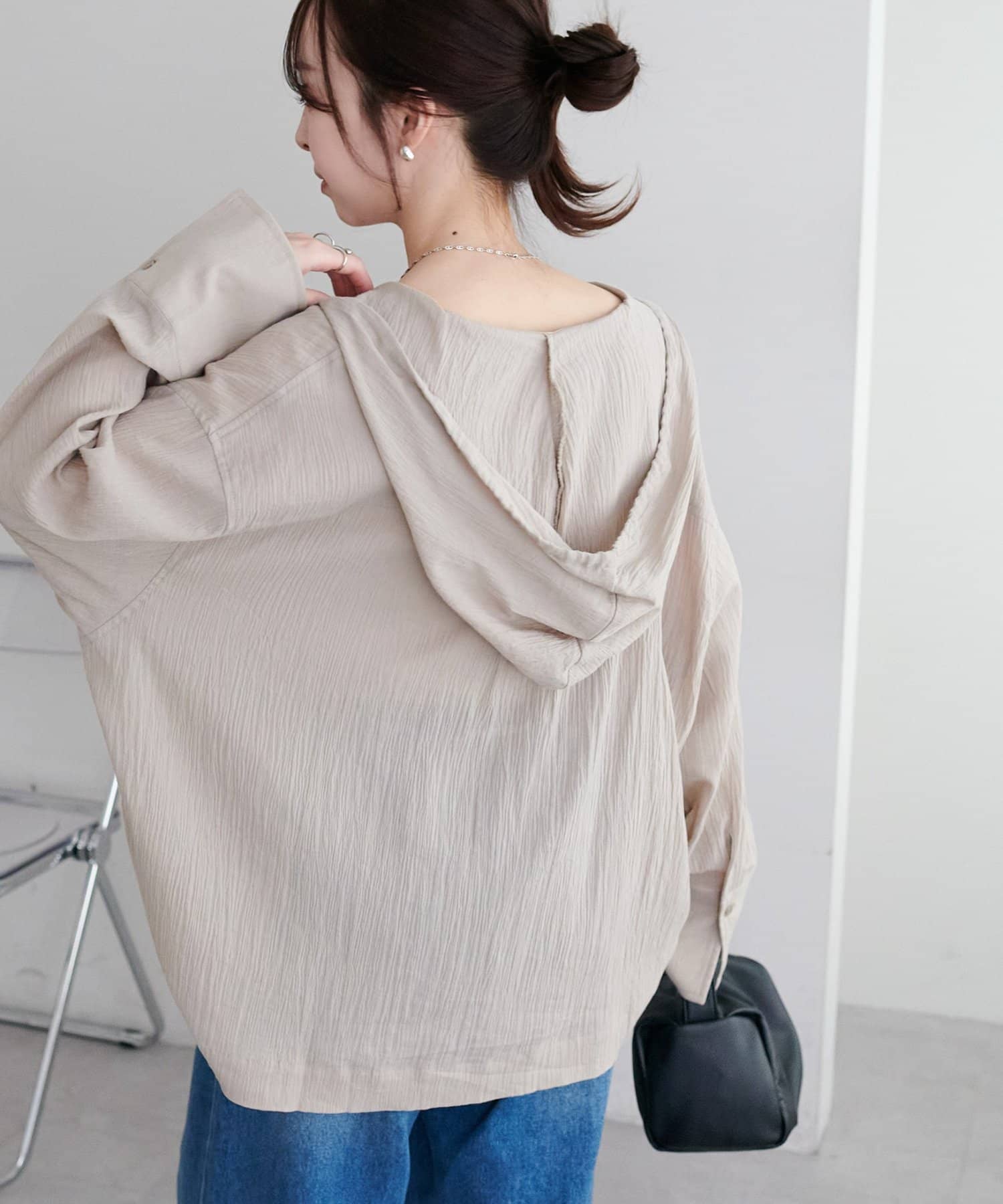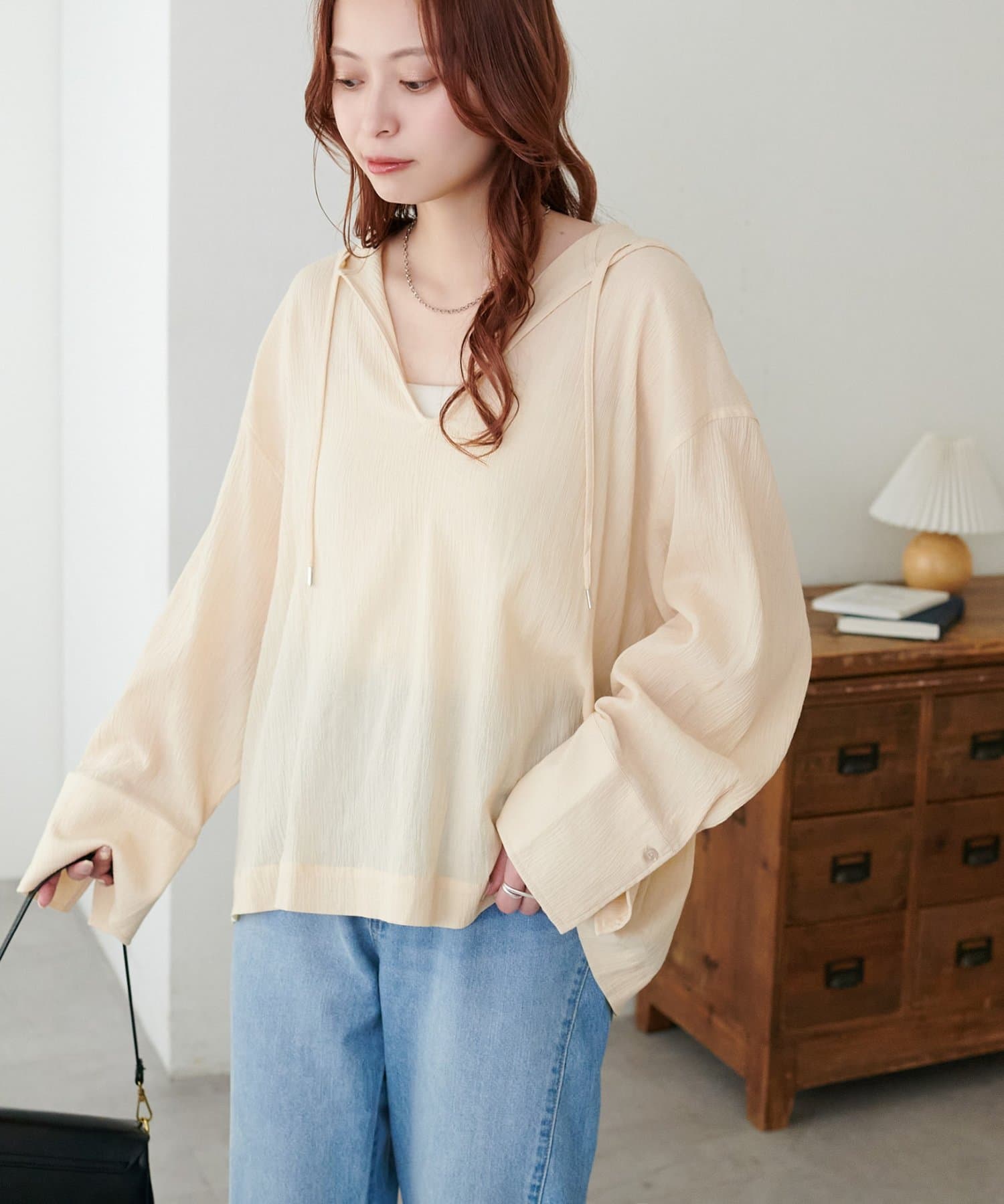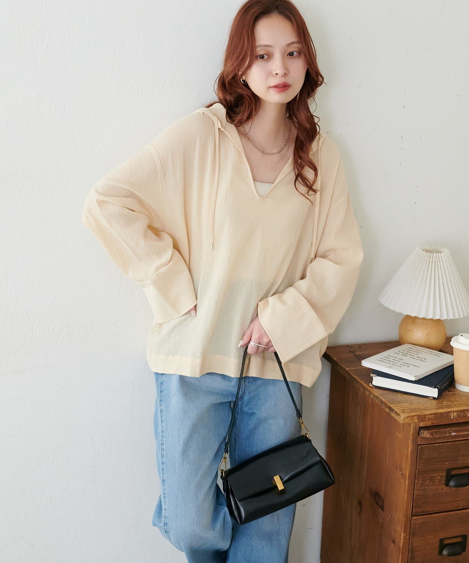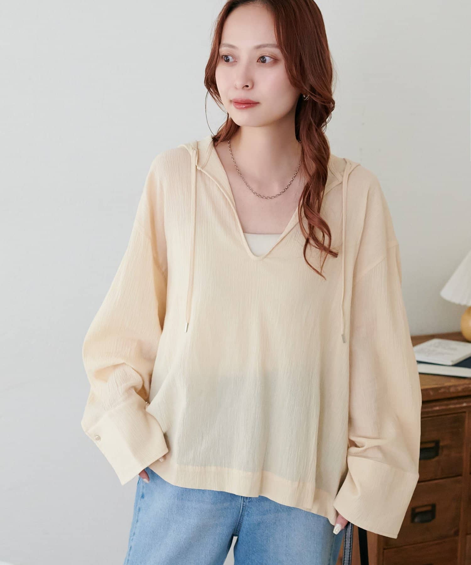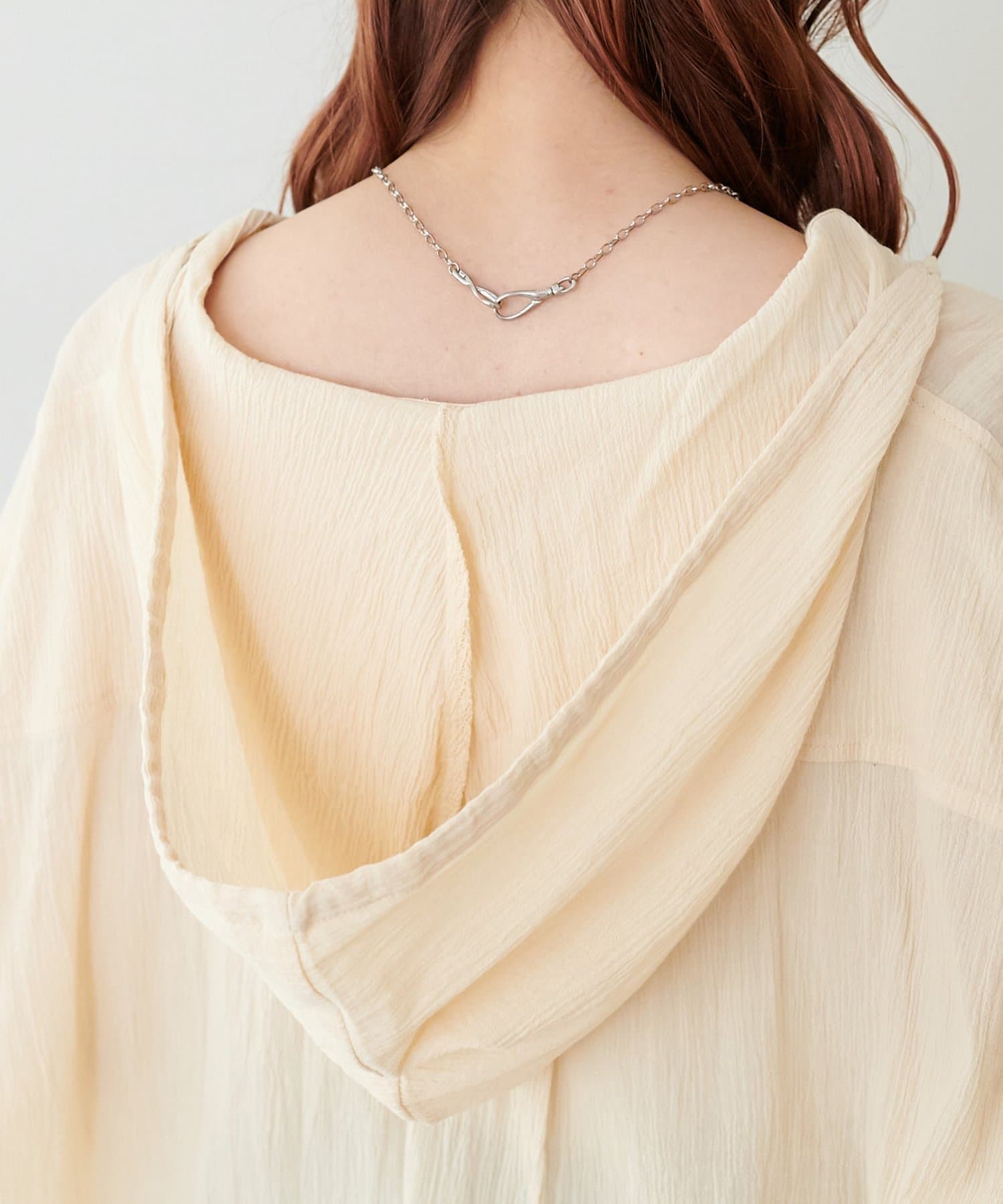 軽やかに纏う、大人のこなれ感。透け感が涼しげなシアーフーディー