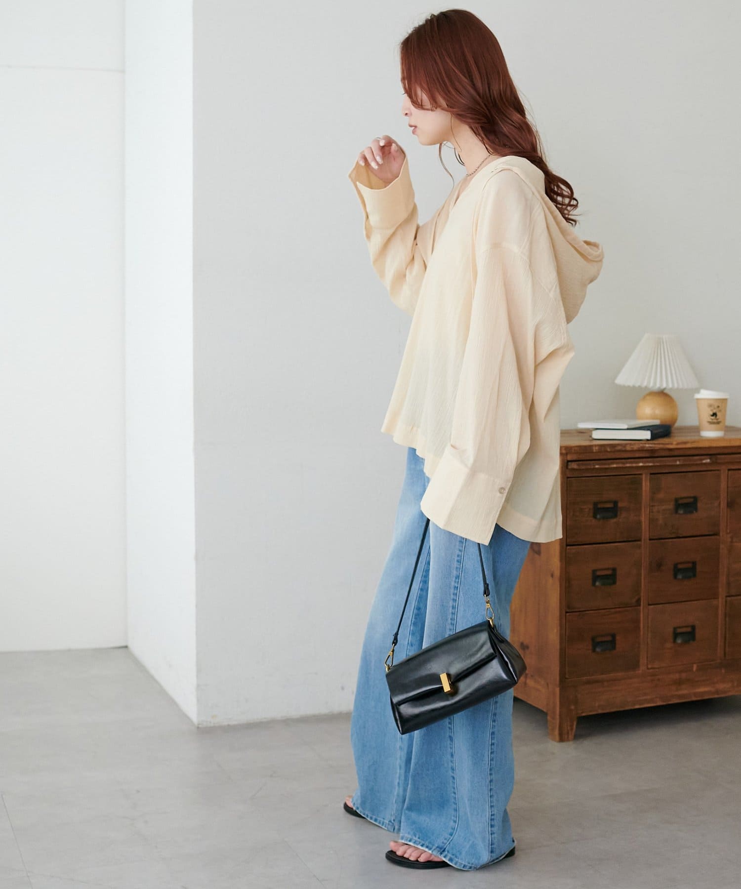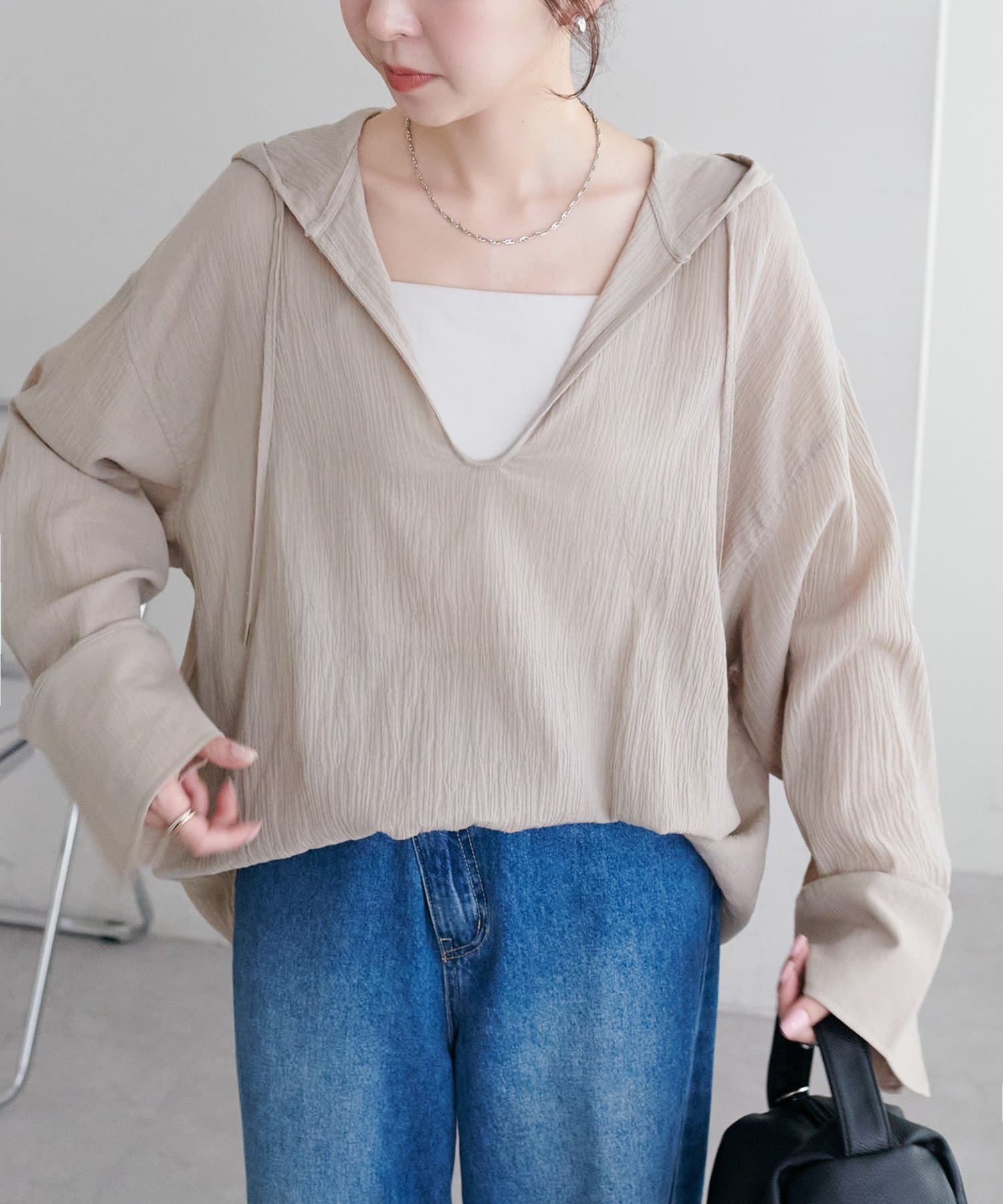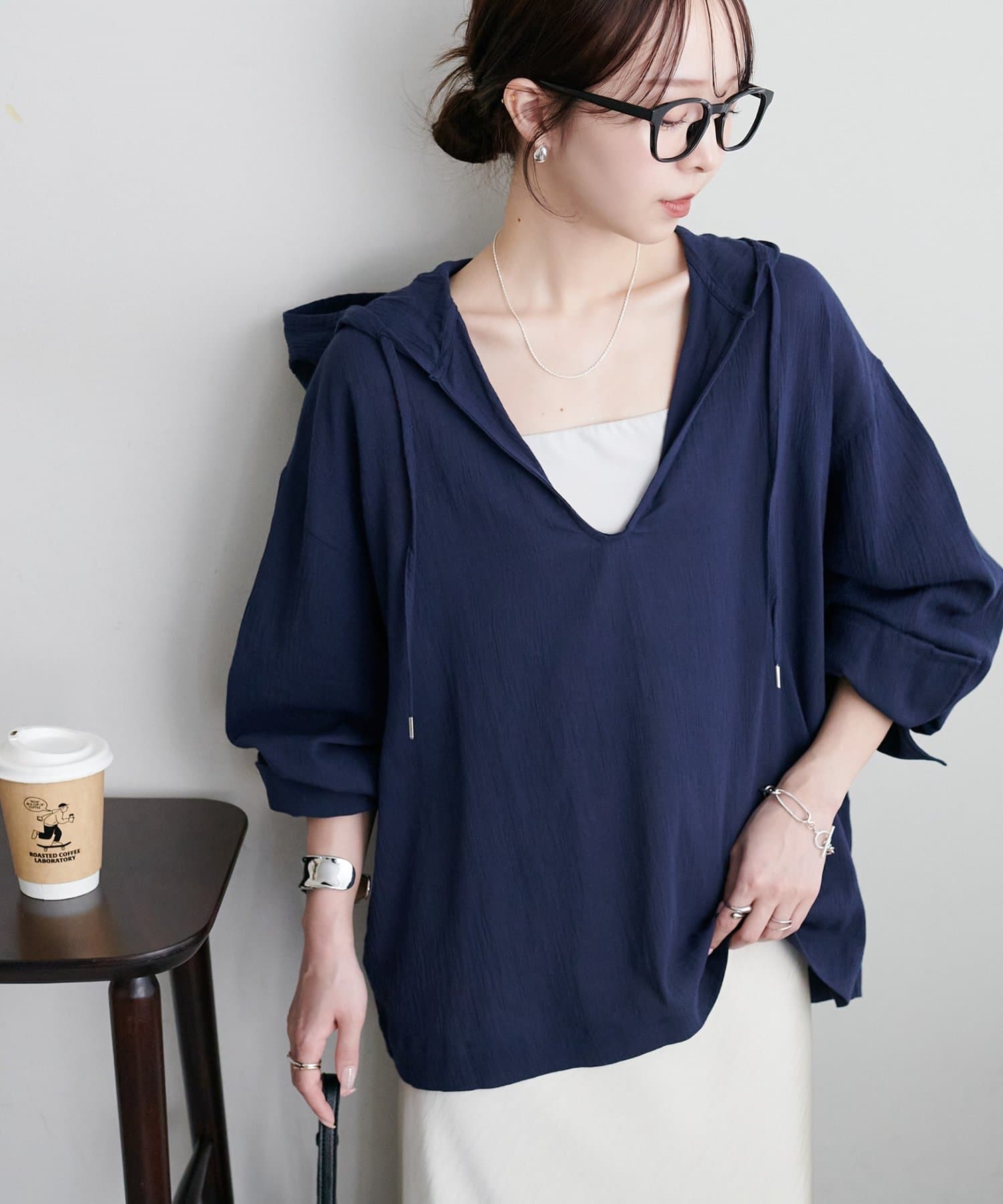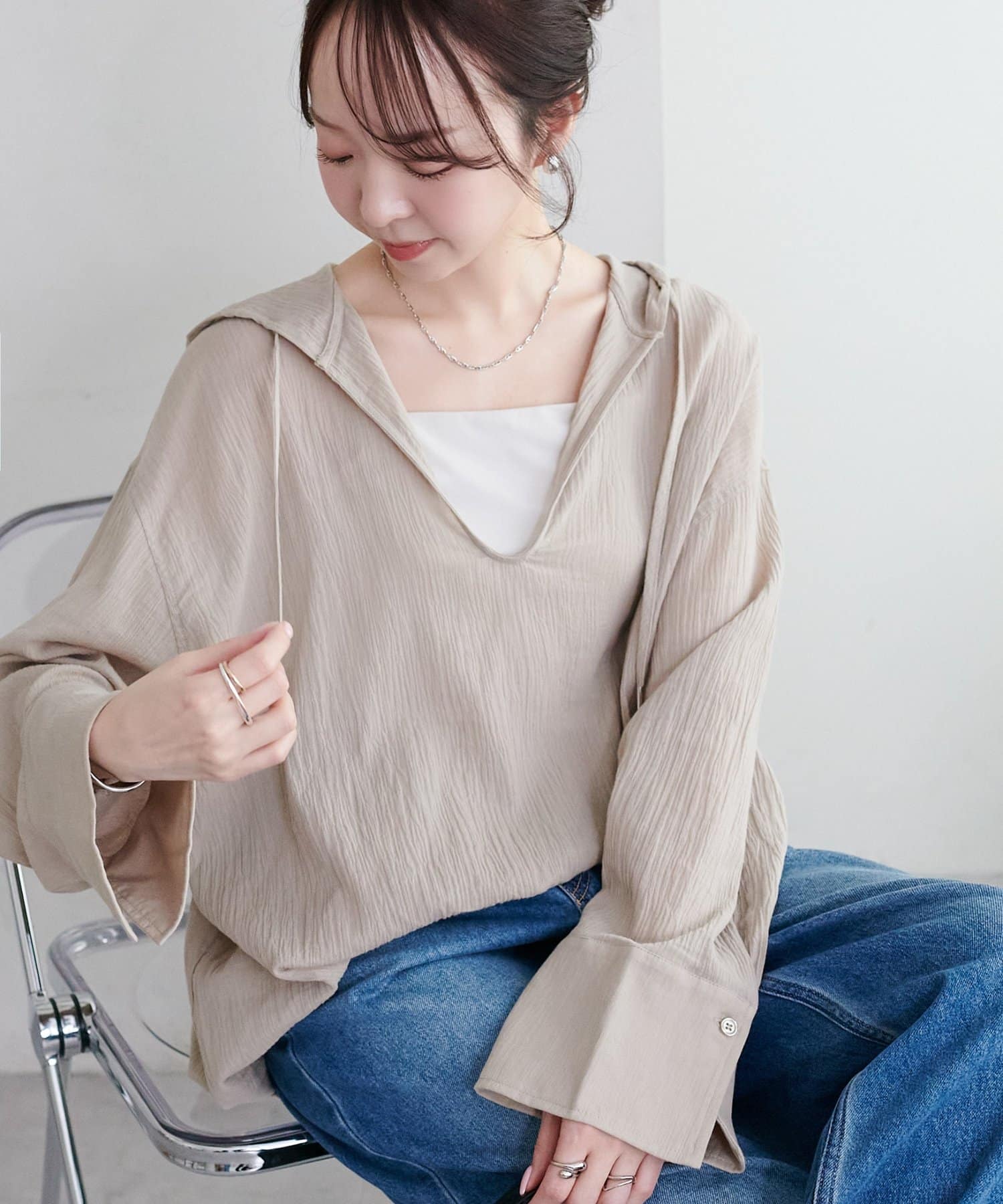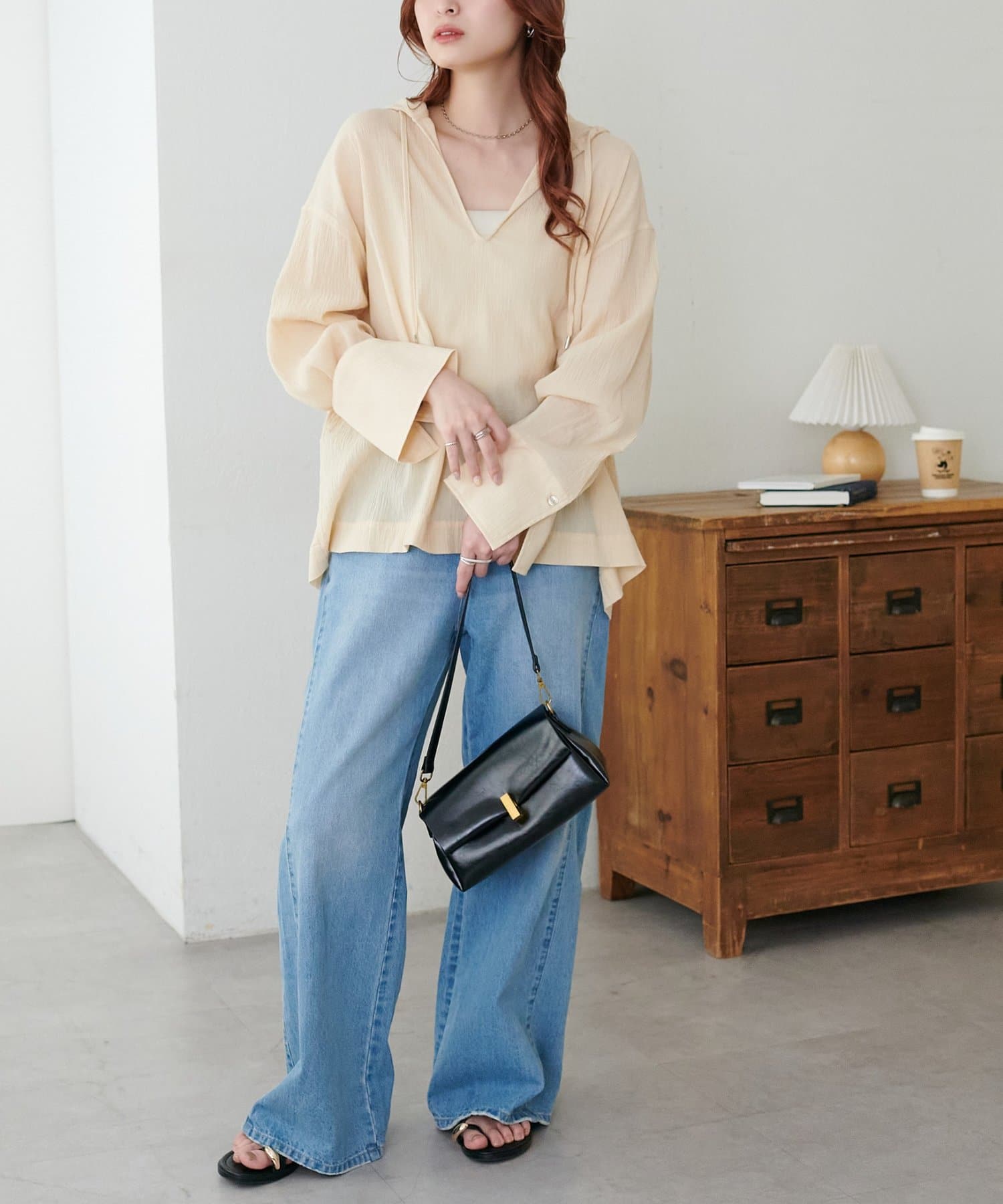 軽やかに纏う、大人のこなれ感。透け感が涼しげなシアーフーディー