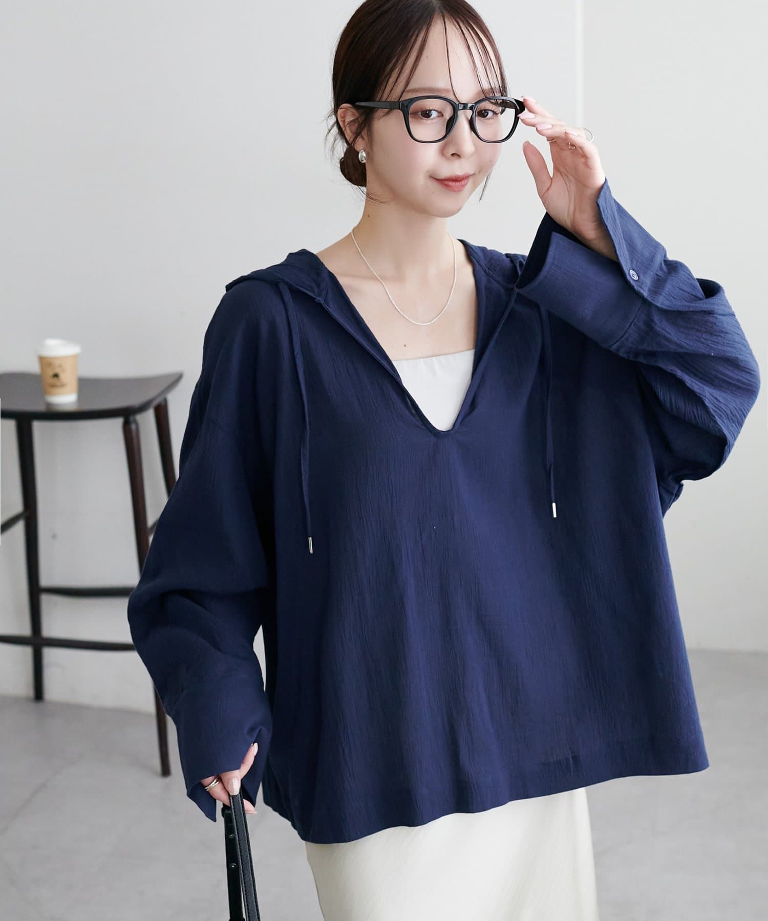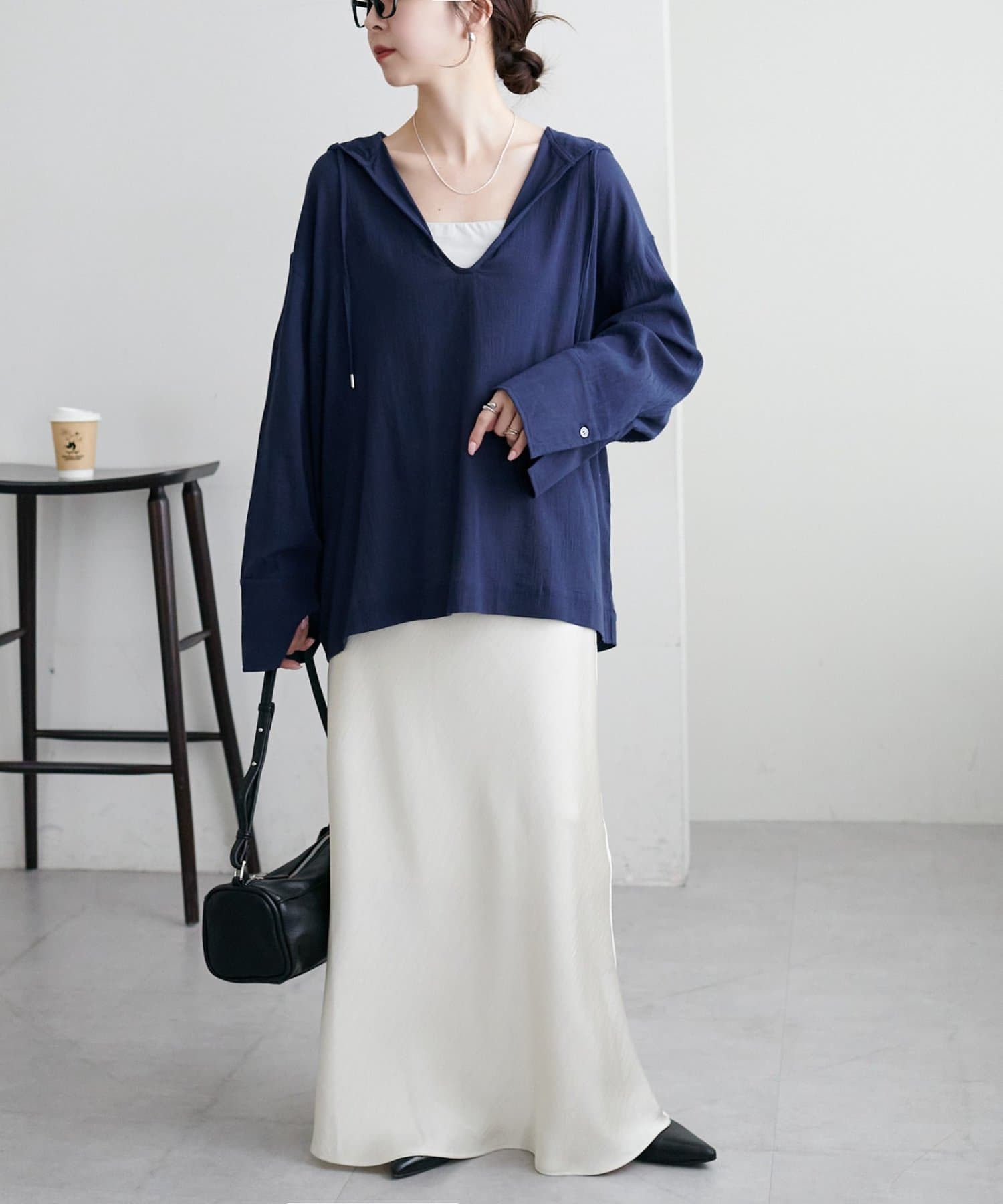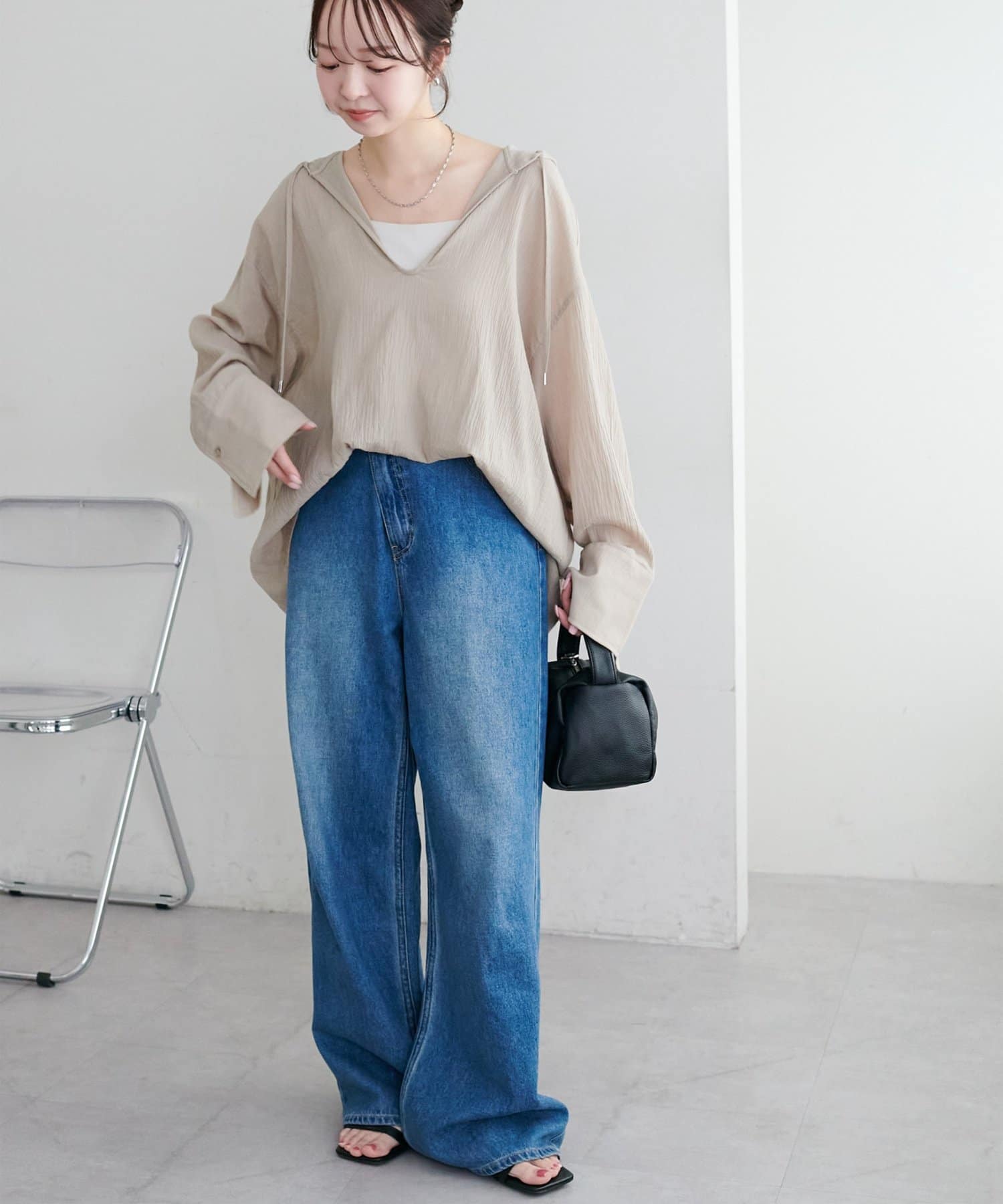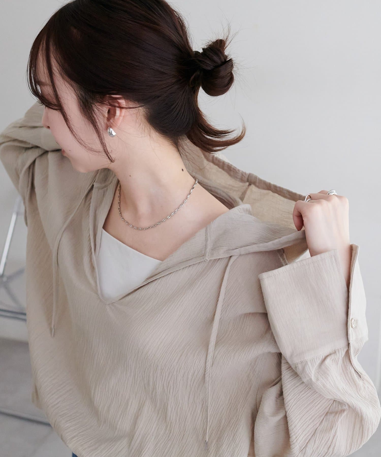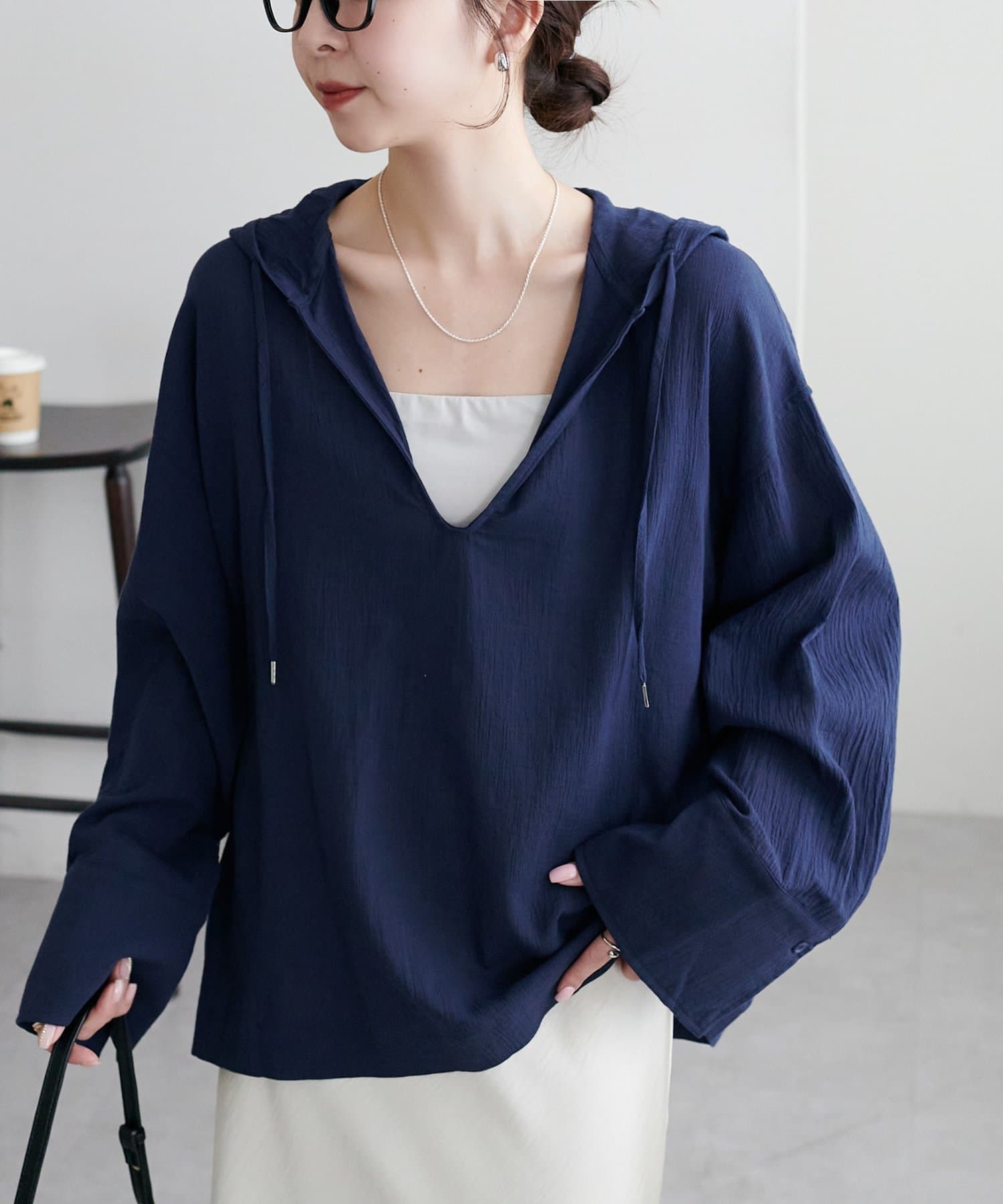 軽やかに纏う、大人のこなれ感。透け感が涼しげなシアーフーディー