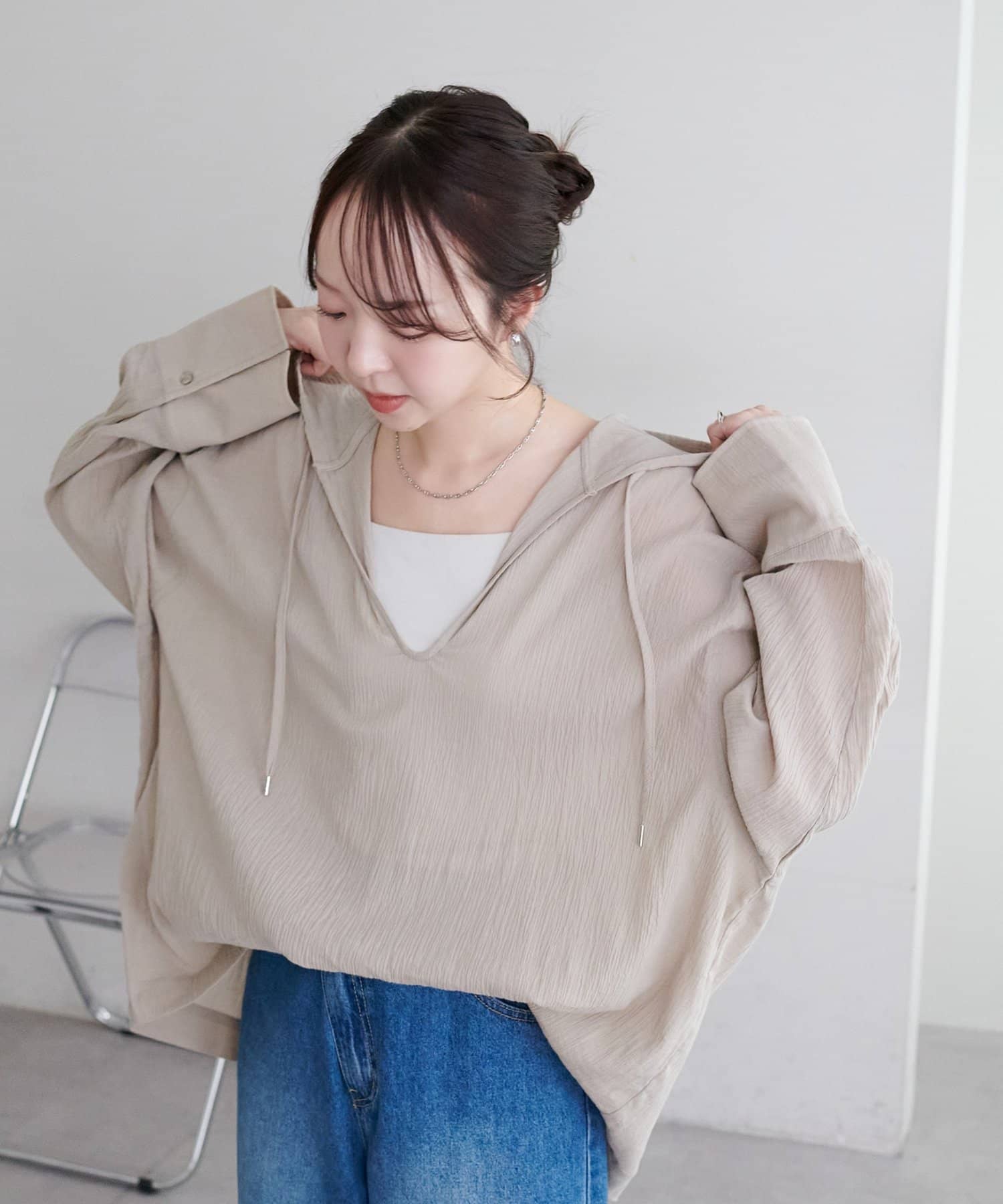 TOP > DISCOAT > レディース > トップス > シャツ/ブラウス(ボタン) > 【WEB限定】シアーコットンボイルフーディー
