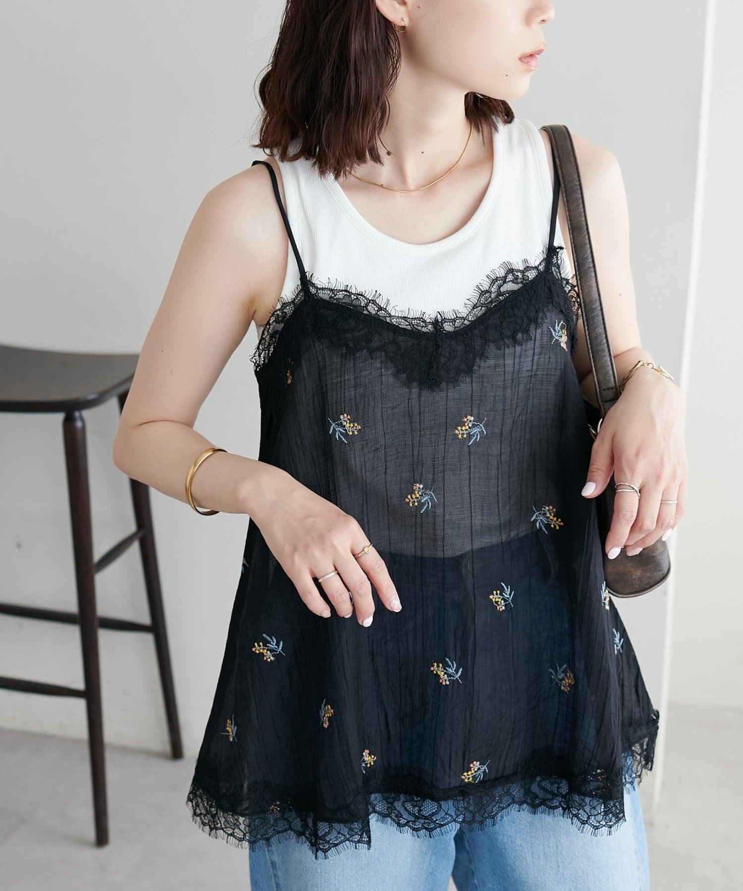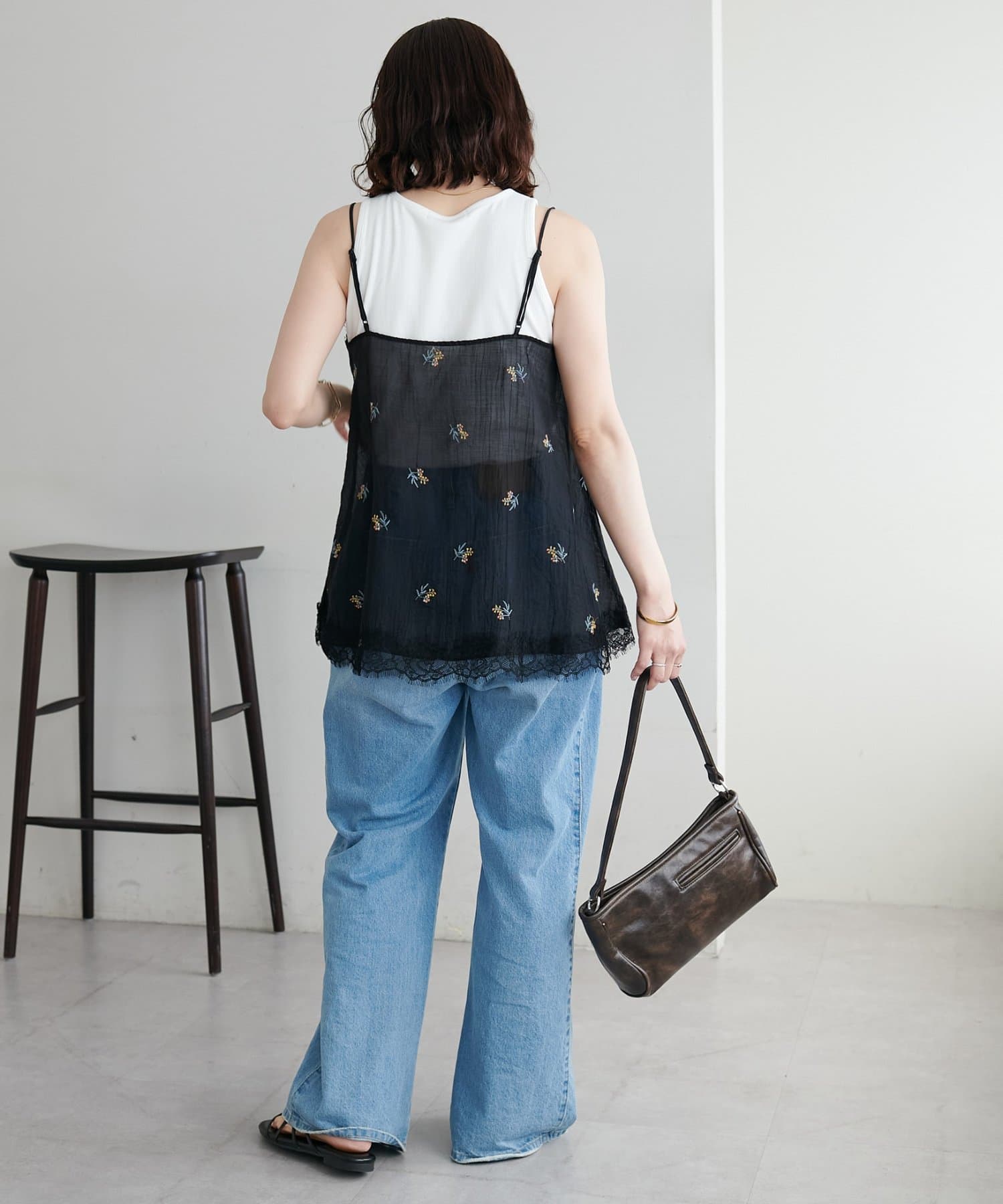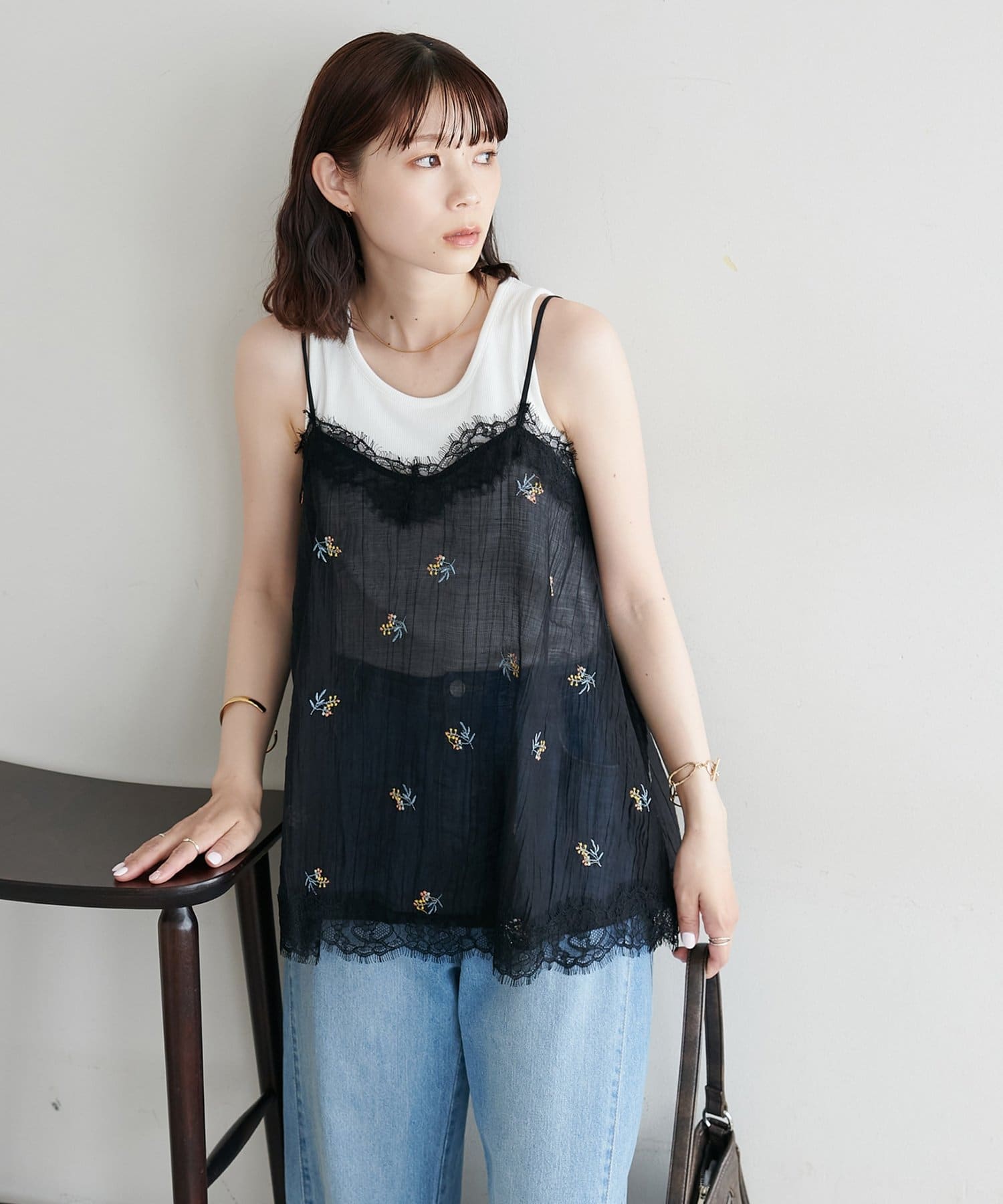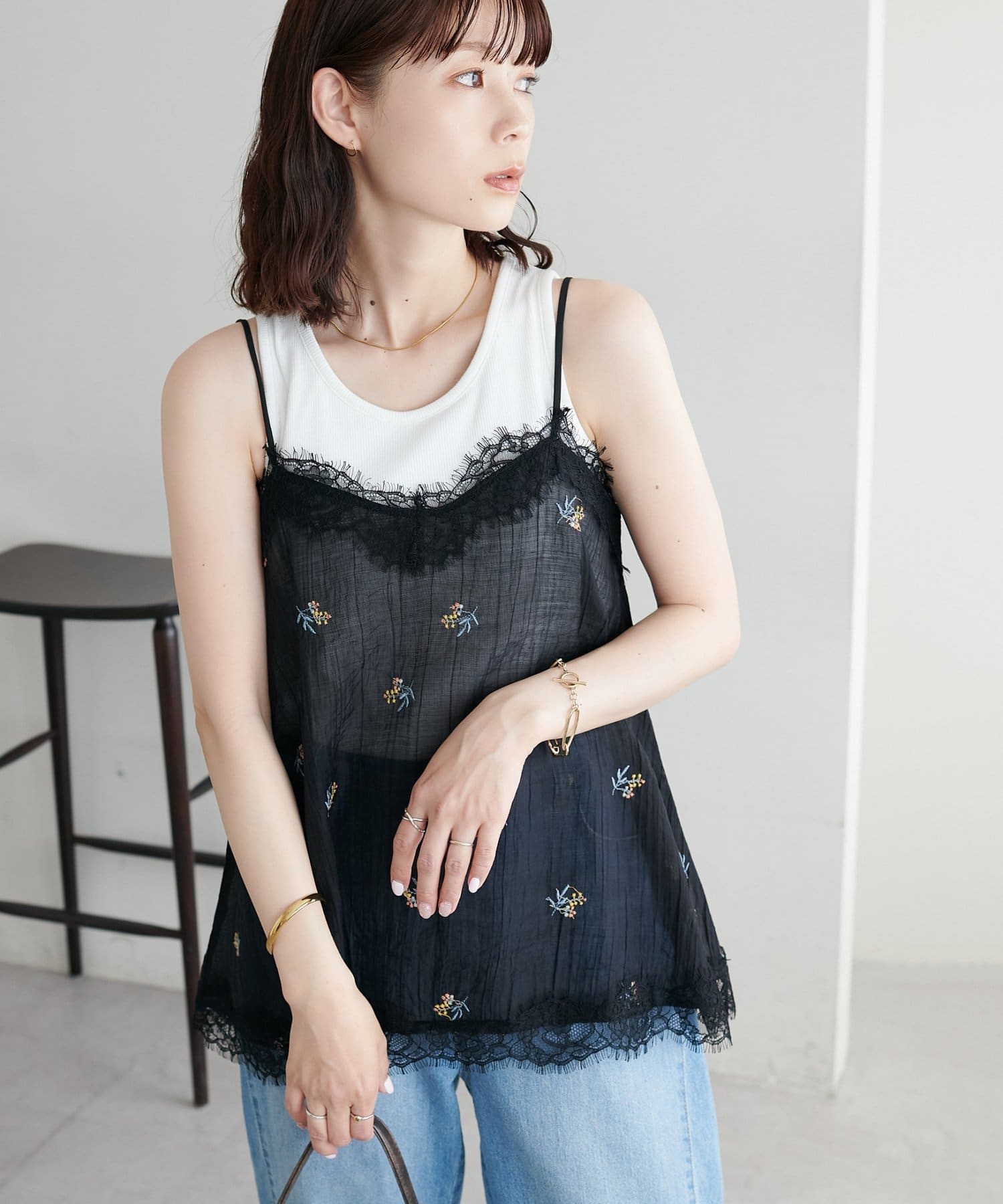 重ね着で魅せる、可憐な刺繍シアーキャミソールでいつものコーデを格上げ