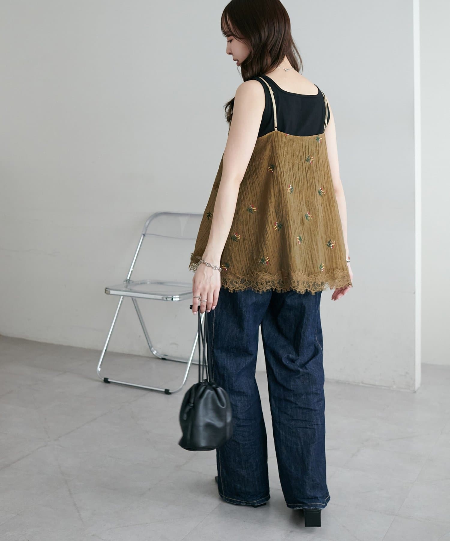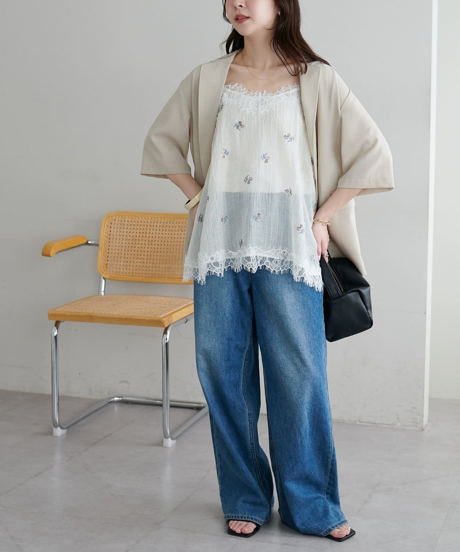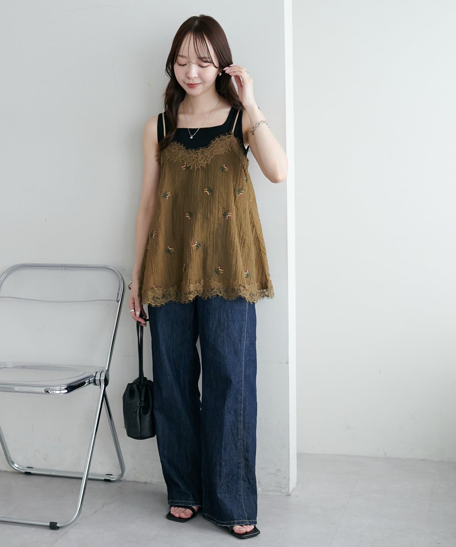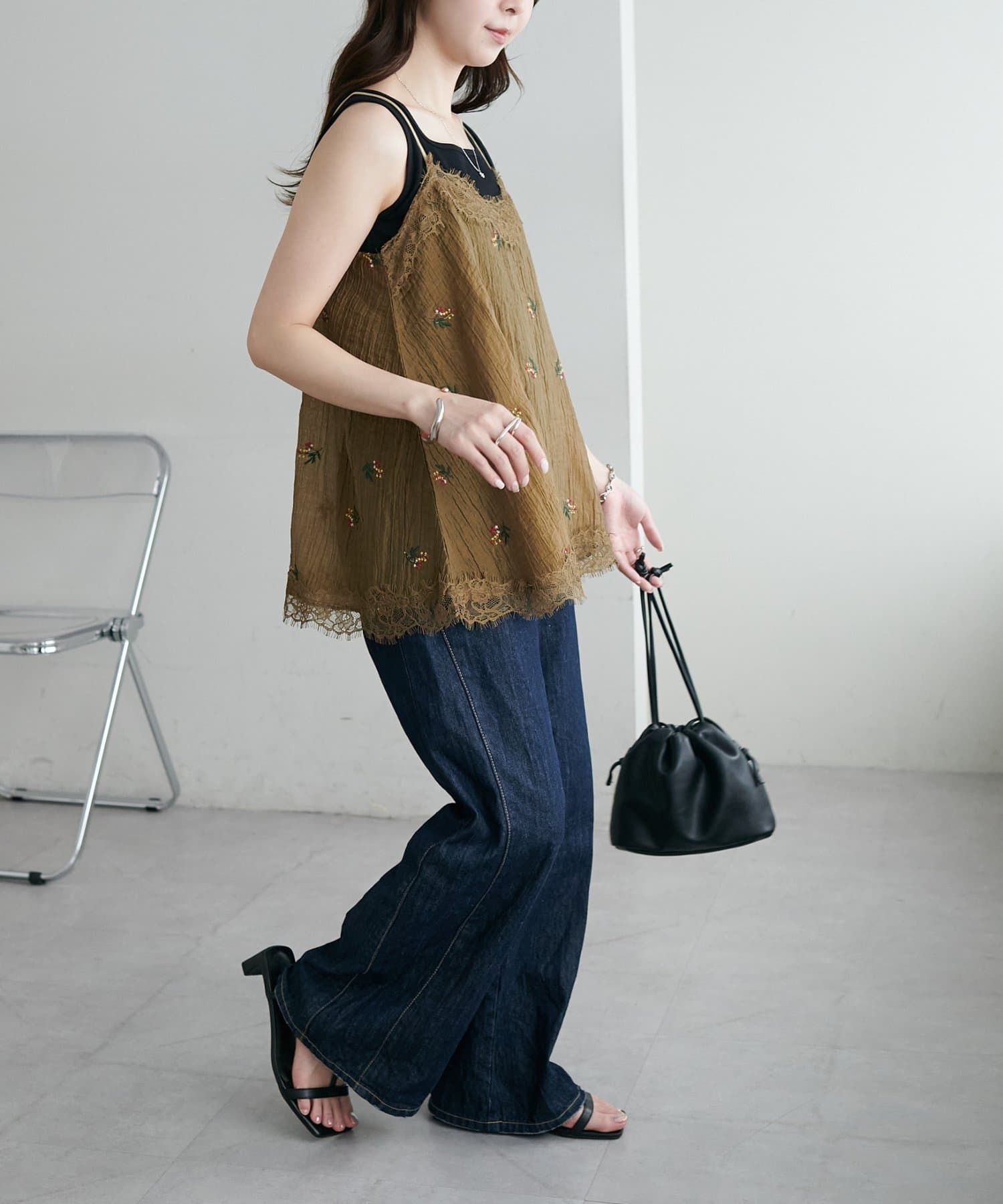 重ね着で魅せる、可憐な刺繍シアーキャミソールでいつものコーデを格上げ