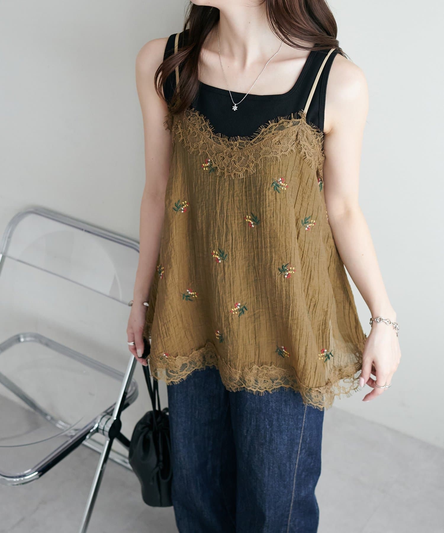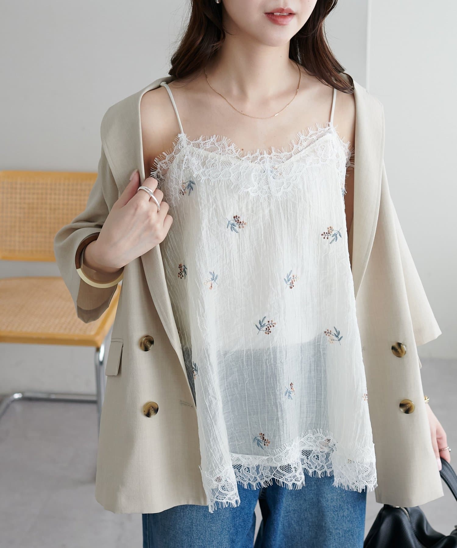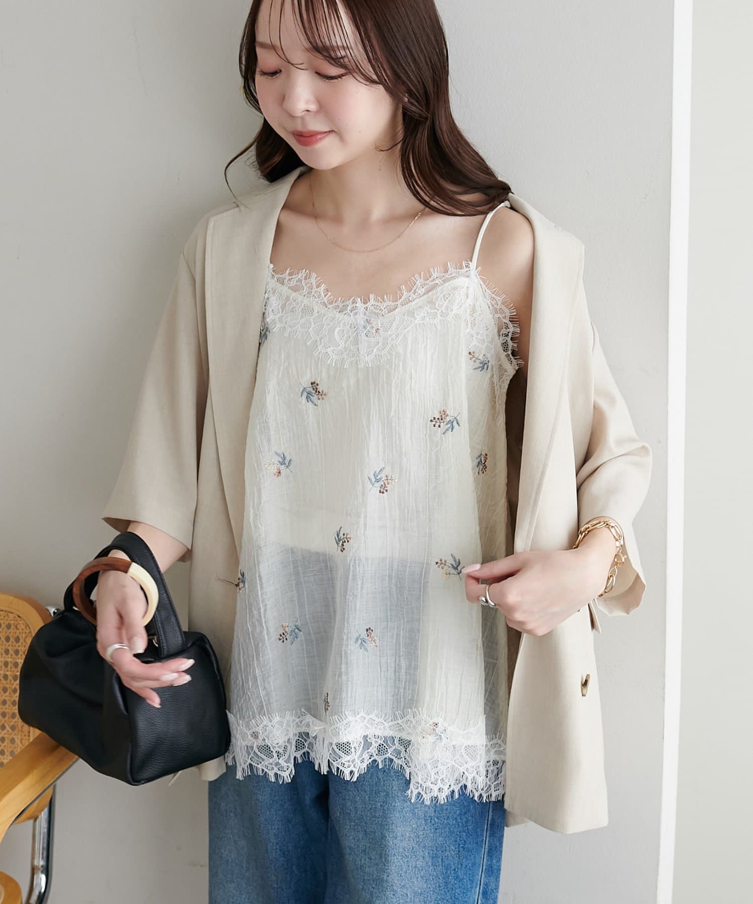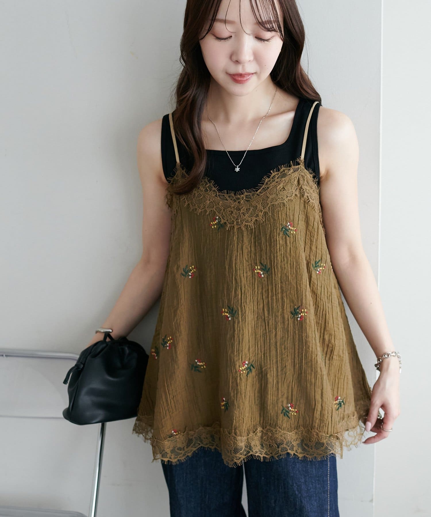 重ね着で魅せる、可憐な刺繍シアーキャミソールでいつものコーデを格上げ