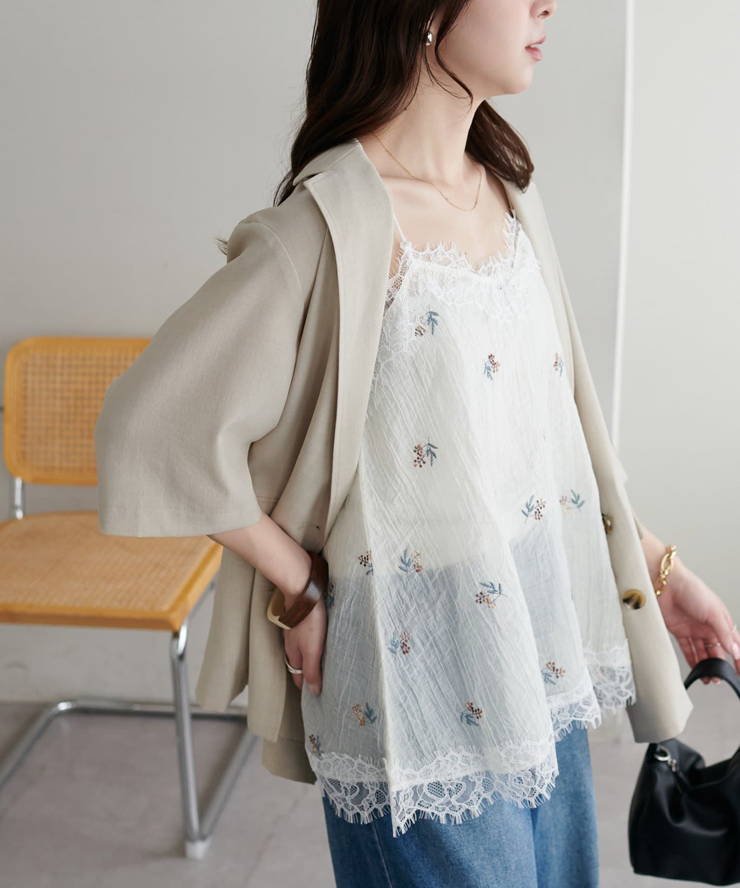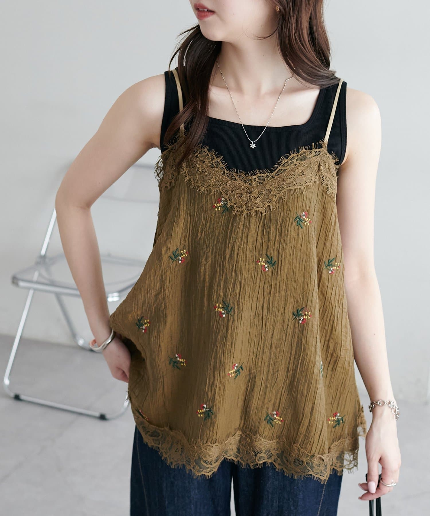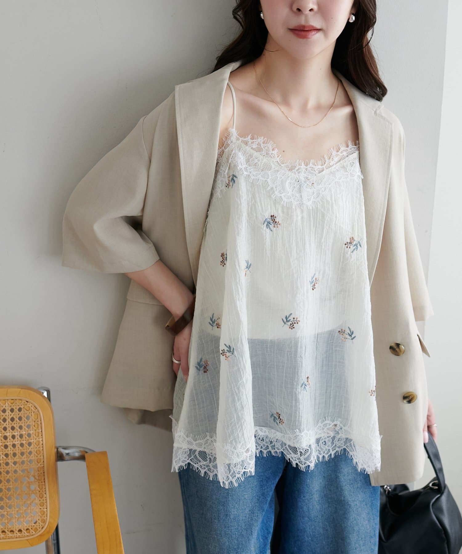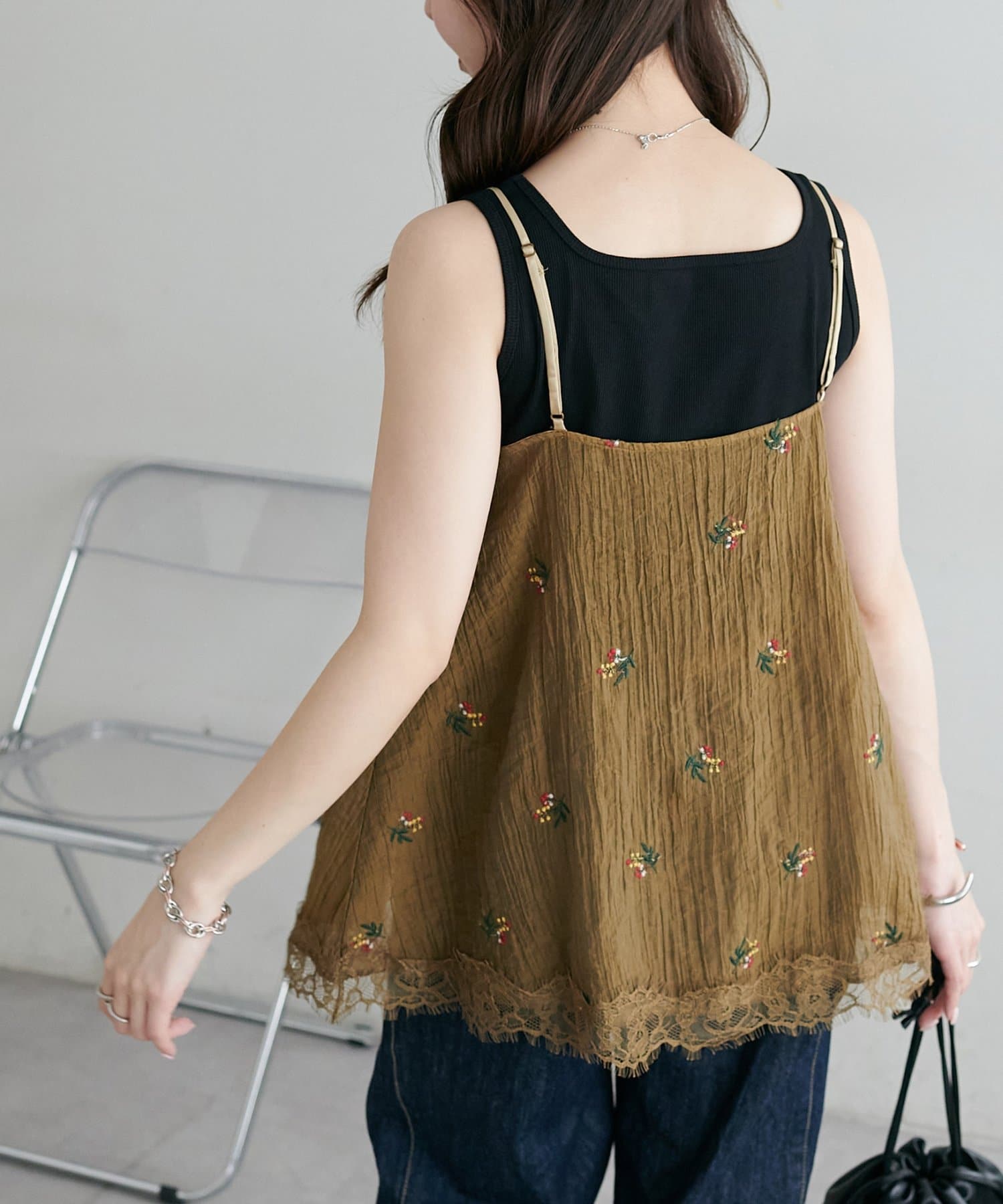 重ね着で魅せる、可憐な刺繍シアーキャミソールでいつものコーデを格上げ