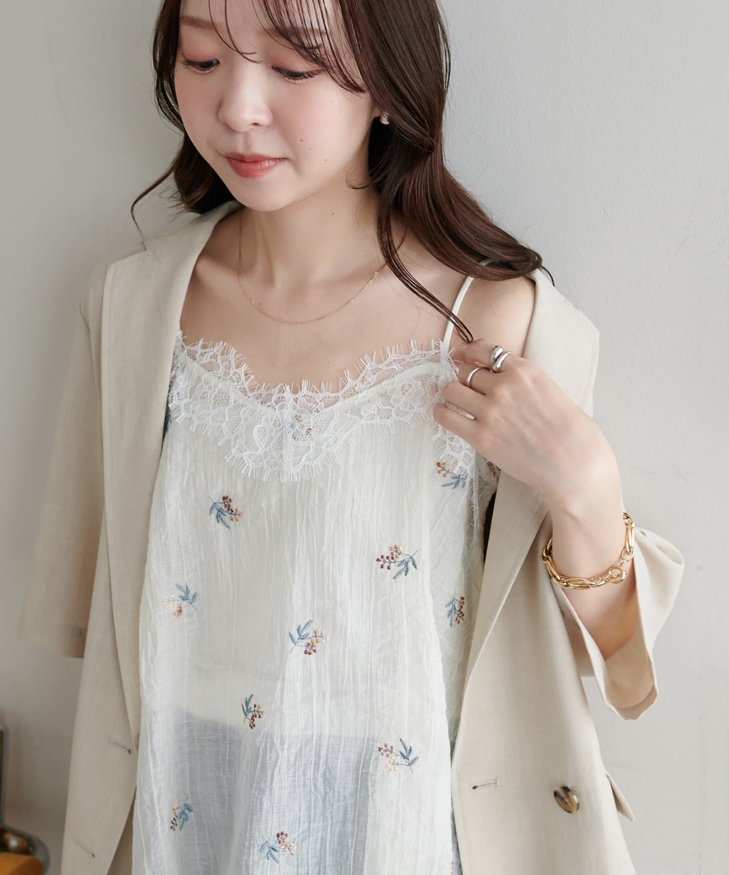 TOP > DISCOAT > レディース > トップス > シャツ/ブラウス(ボタン) > WEB限定刺繍シアーキャミソール