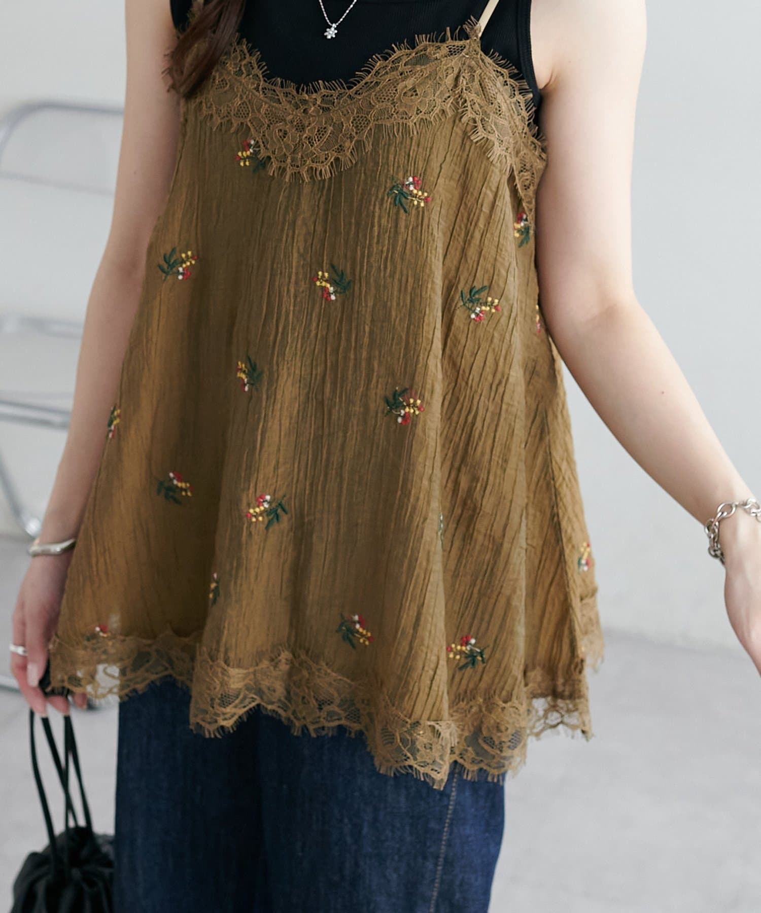 • DISCOAT(ディスコート) WEB限定刺繍シアーキャミソール