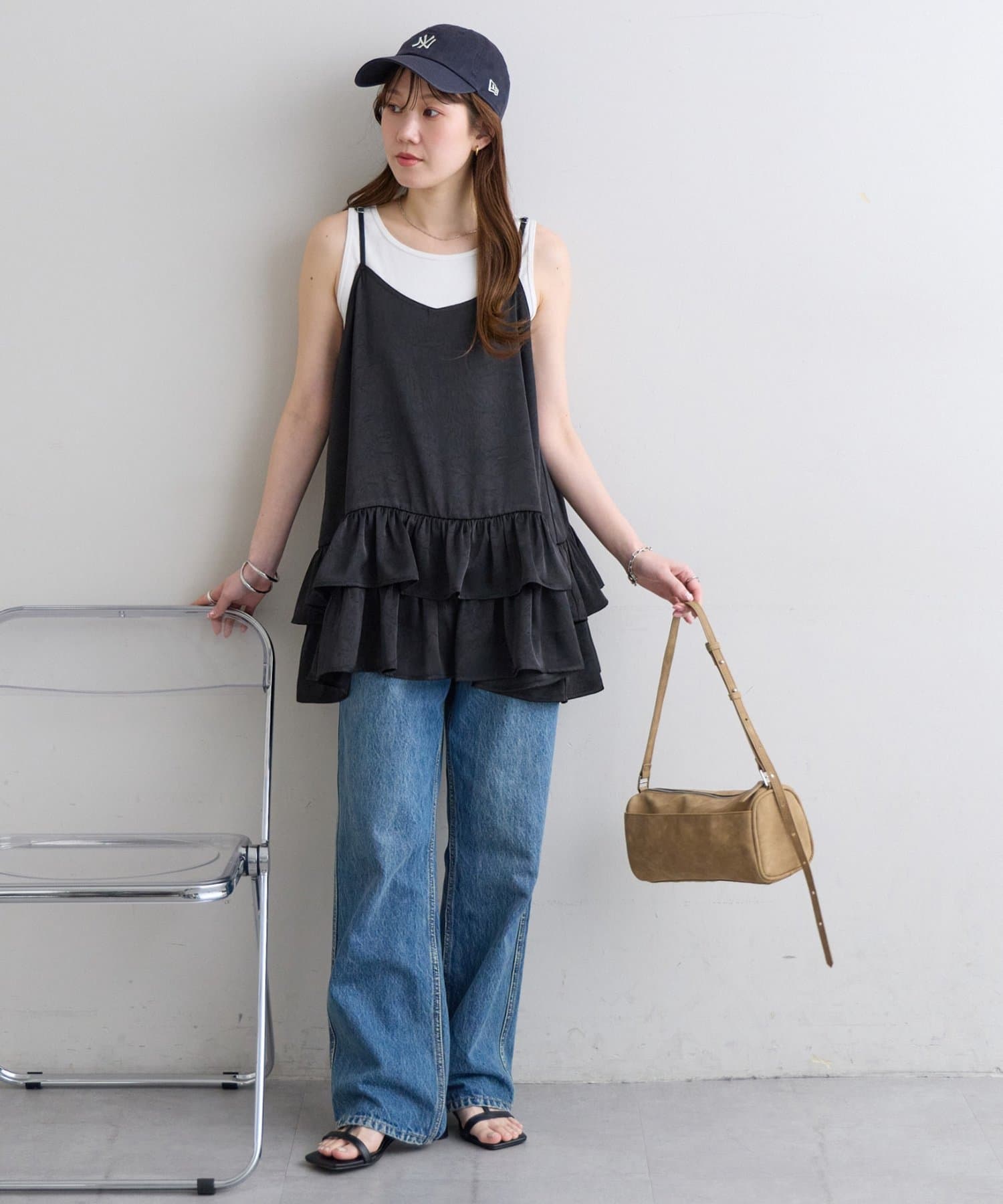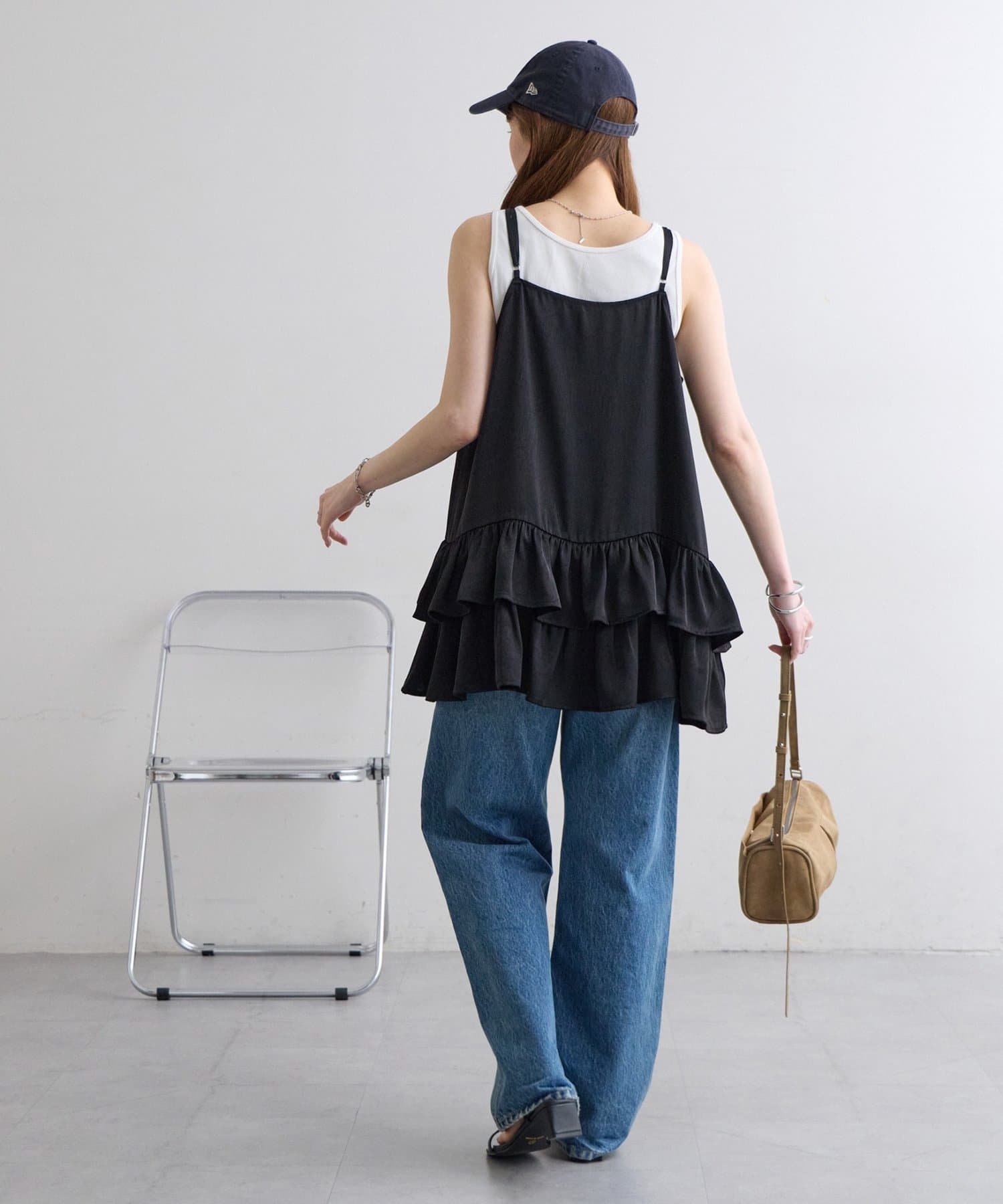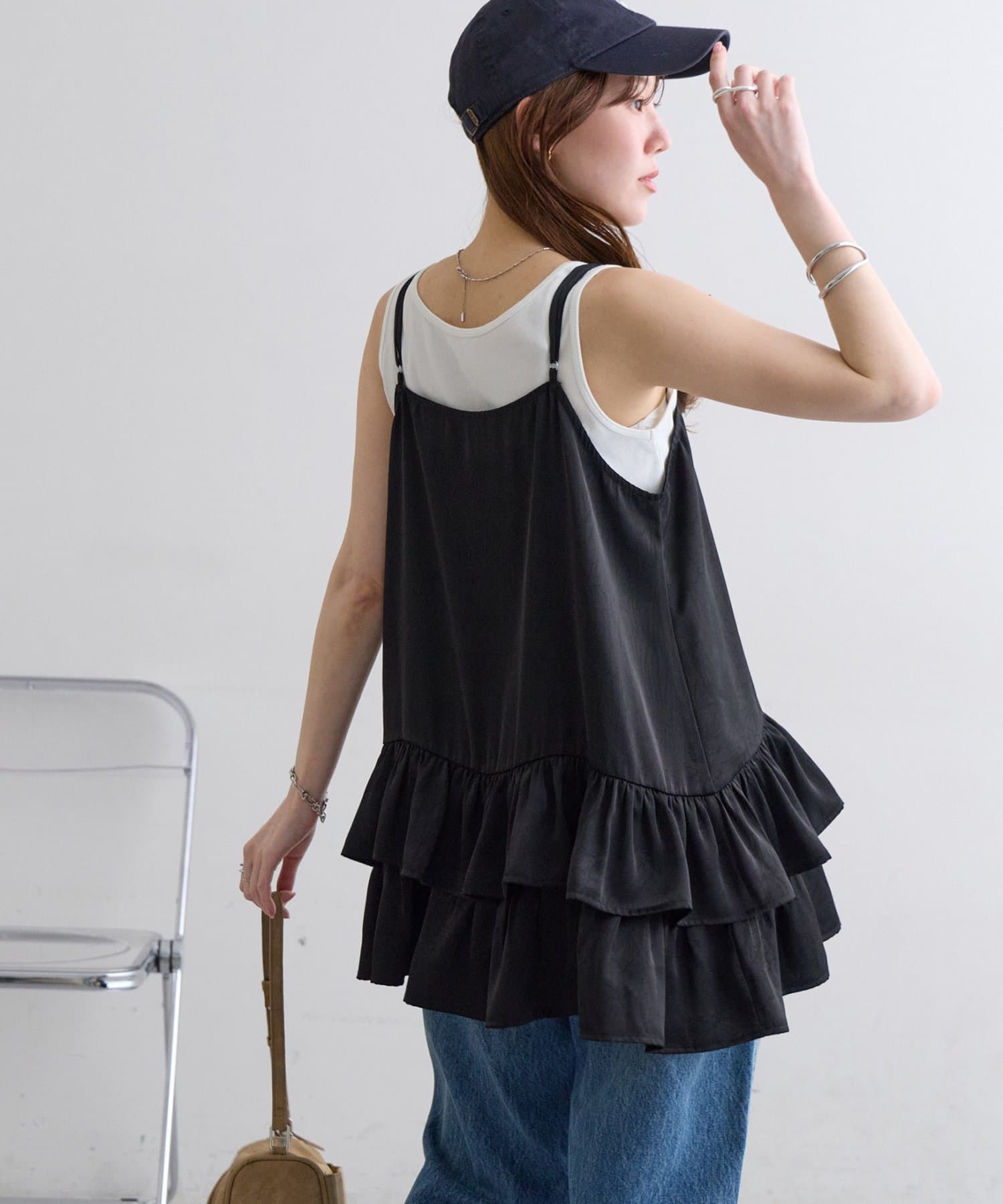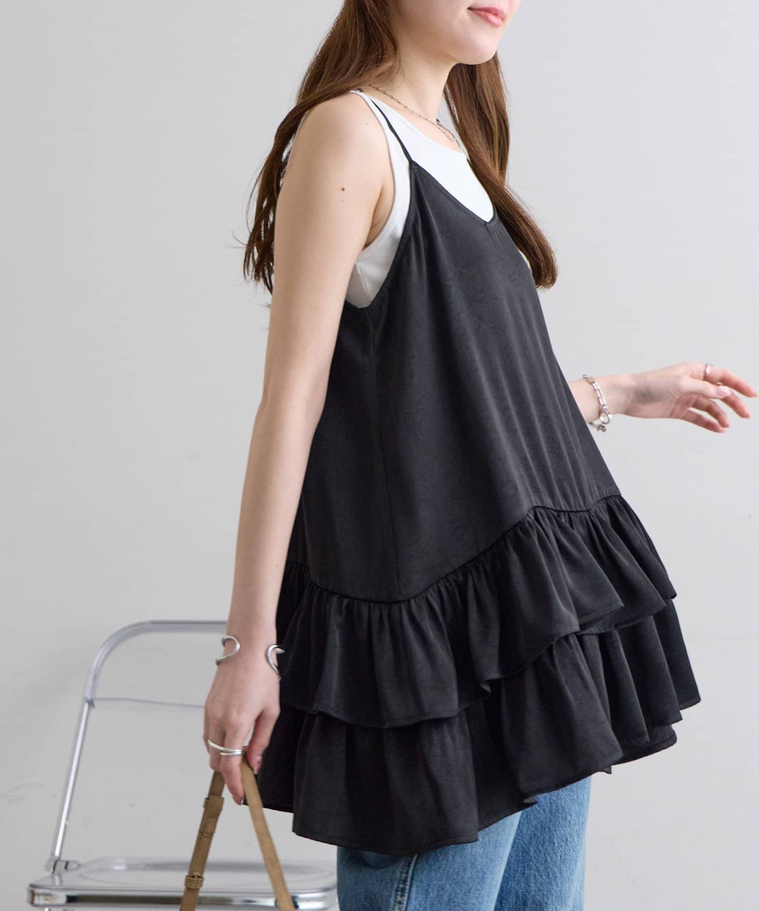 サテンティアードキャミ