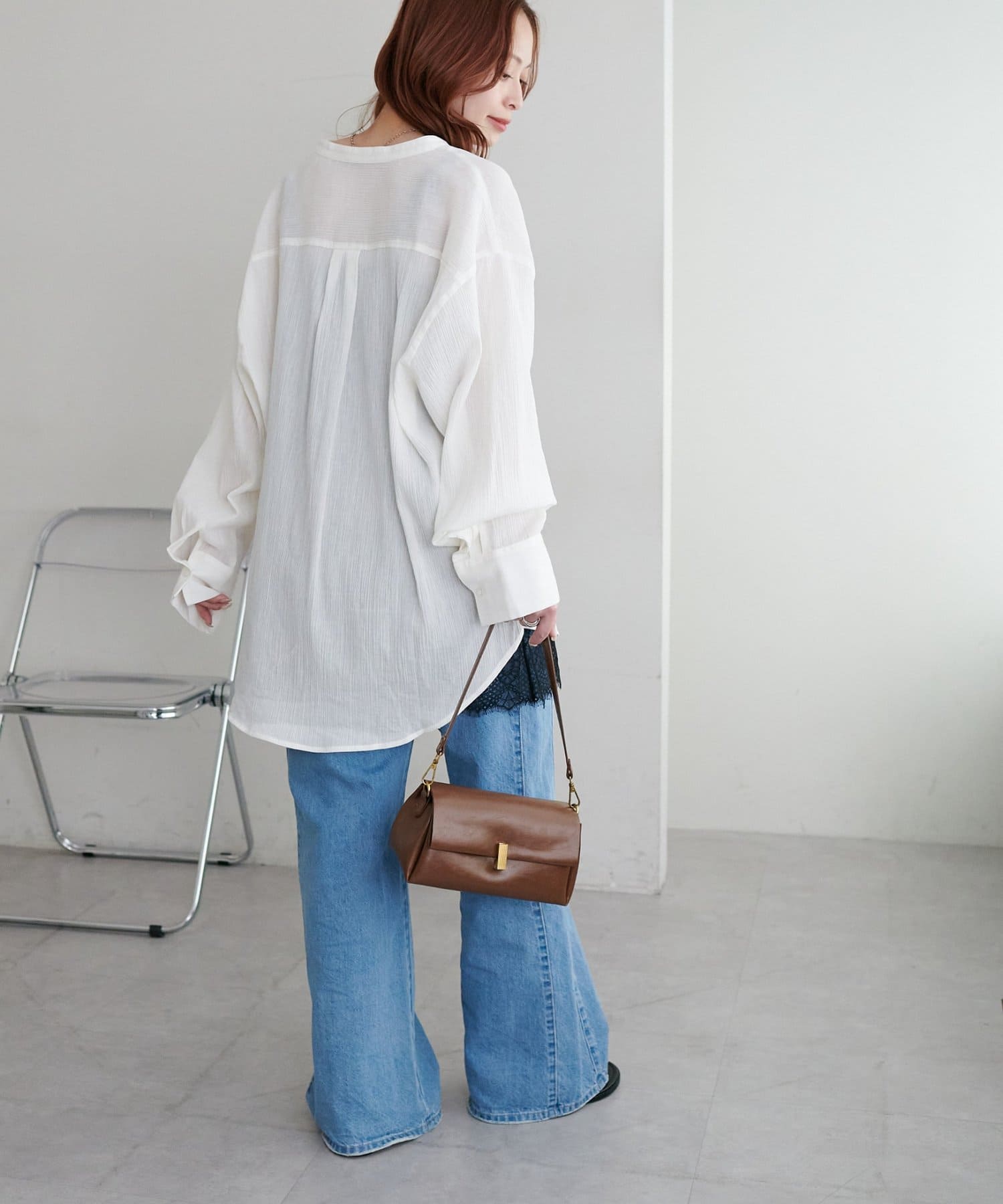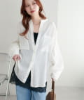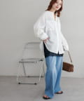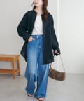 158cmスタッフ着用:適度にゆとりのある身幅ながらも落ち感のある素材感で、華奢に見せてくれるのが嬉しいポイント♪程よい透け感なので、着こなしが上品な雰囲気にまとまります。ボタンが同色なので、合わせるカラーを選びにくく、いろんなアイテムと着回しできそうです!