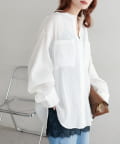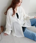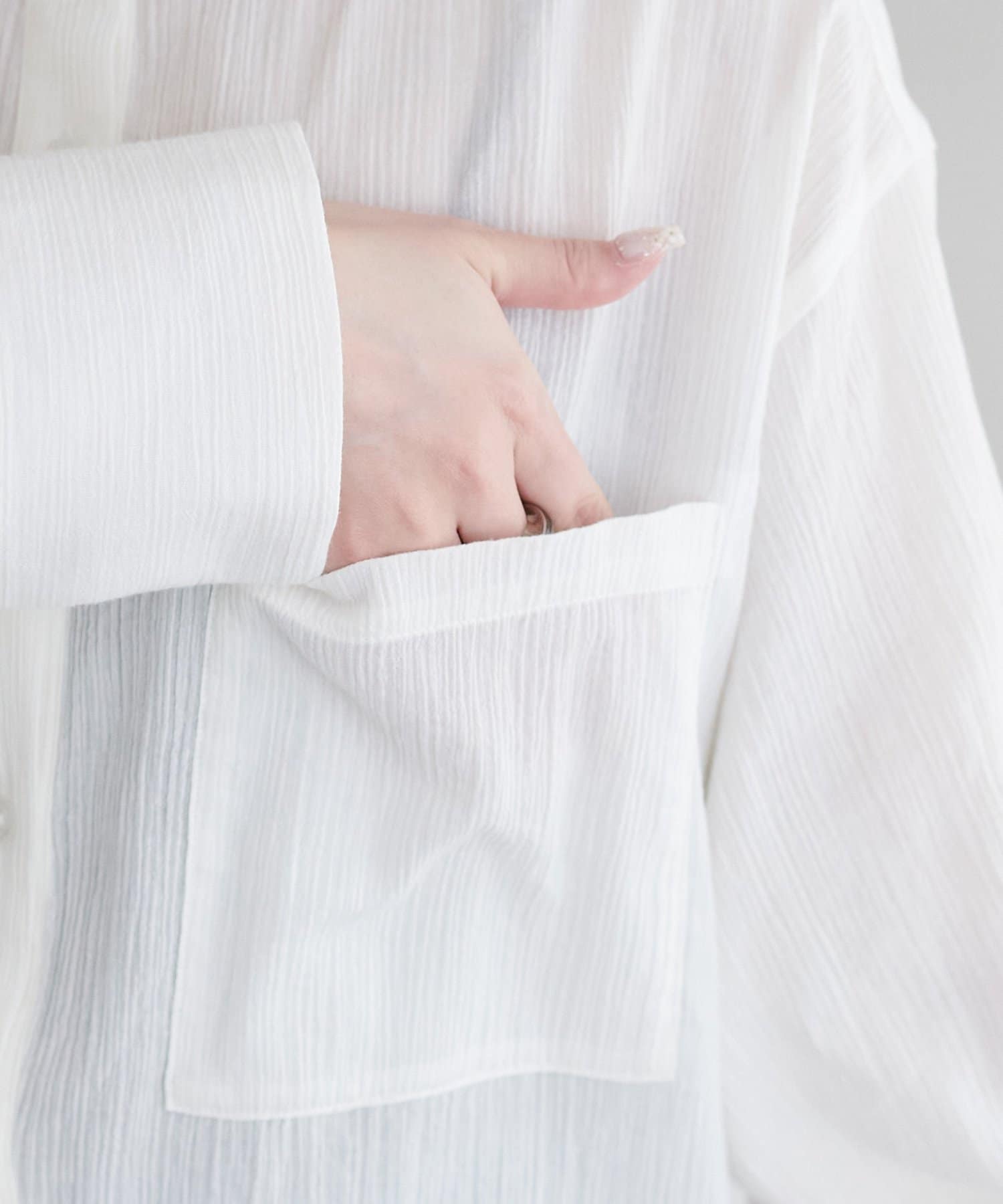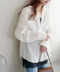 TOP > DISCOAT > レディース > トップス > シャツ/ブラウス(ボタン) > 【WEB限定】シアー楊柳ノーカラーシャツ