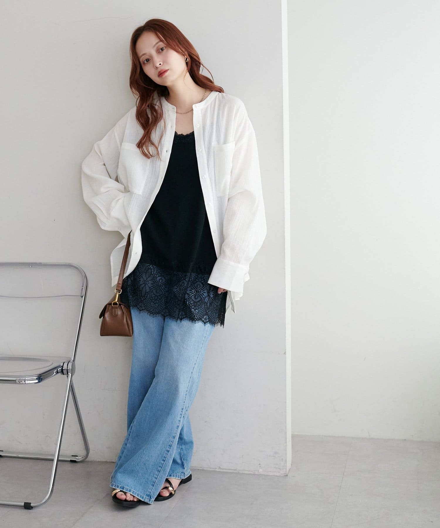 ・インナーにレースキャミを仕込んでほんのり甘さを足したコーデも♪