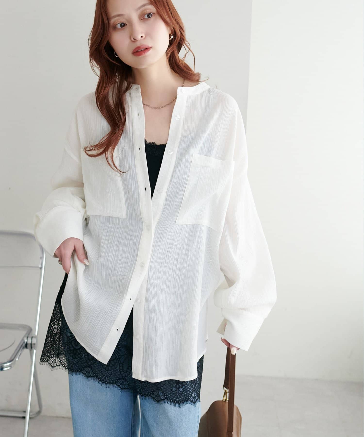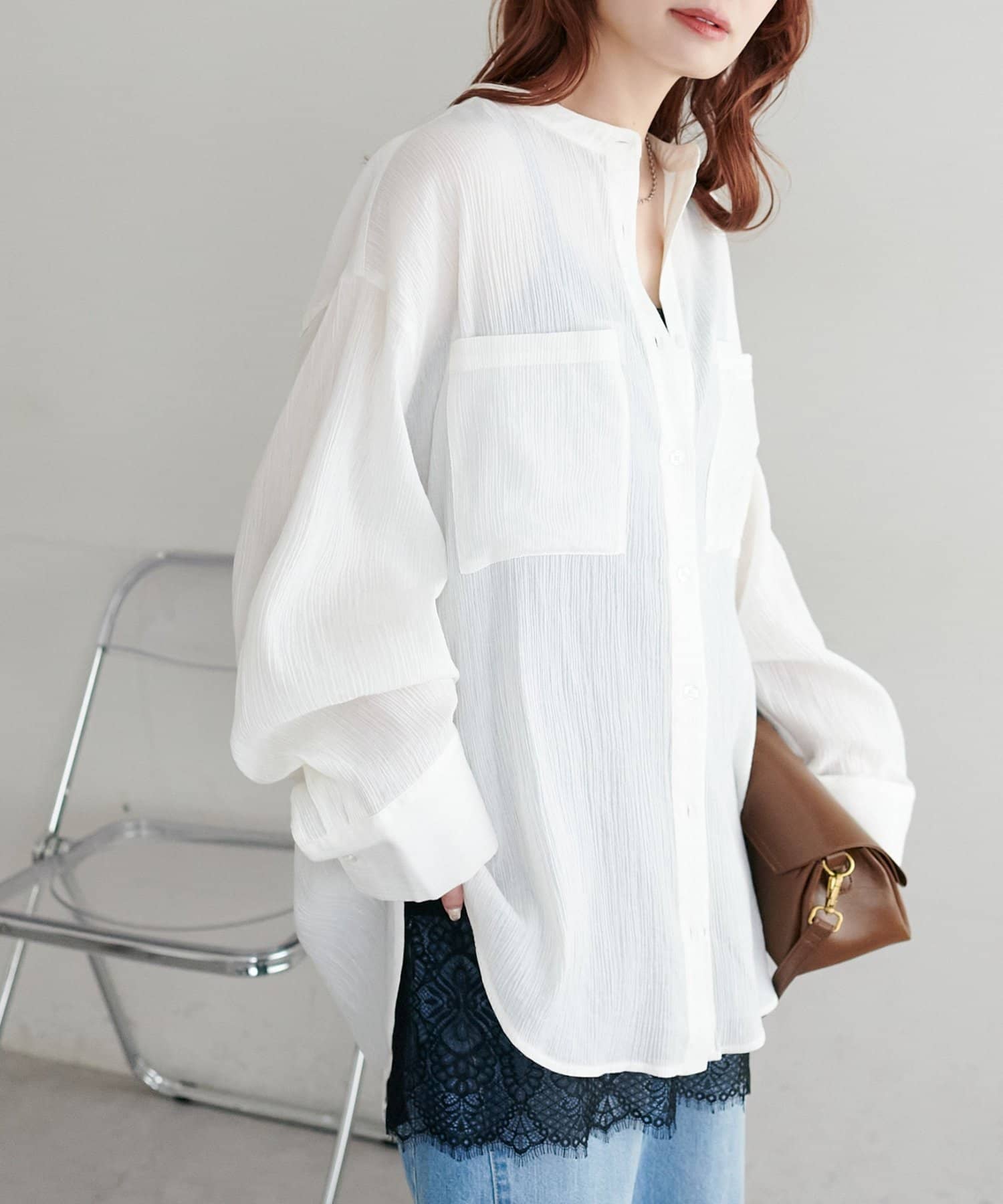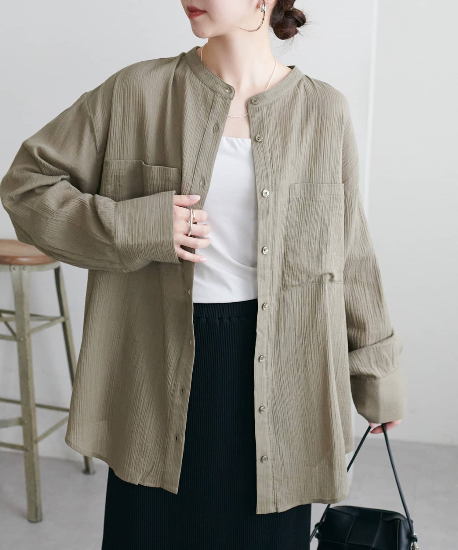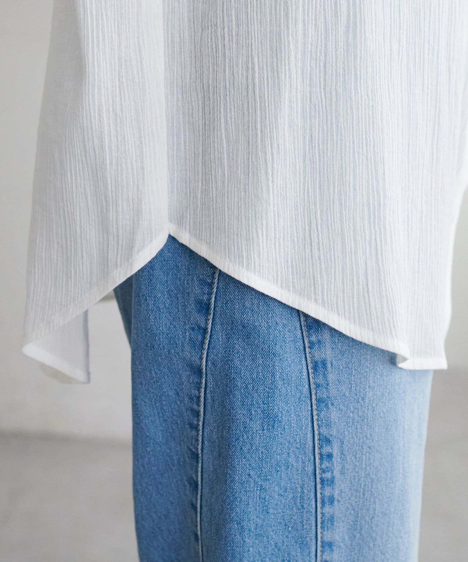 【WEB限定】シアー楊柳ノーカラーシャツ
