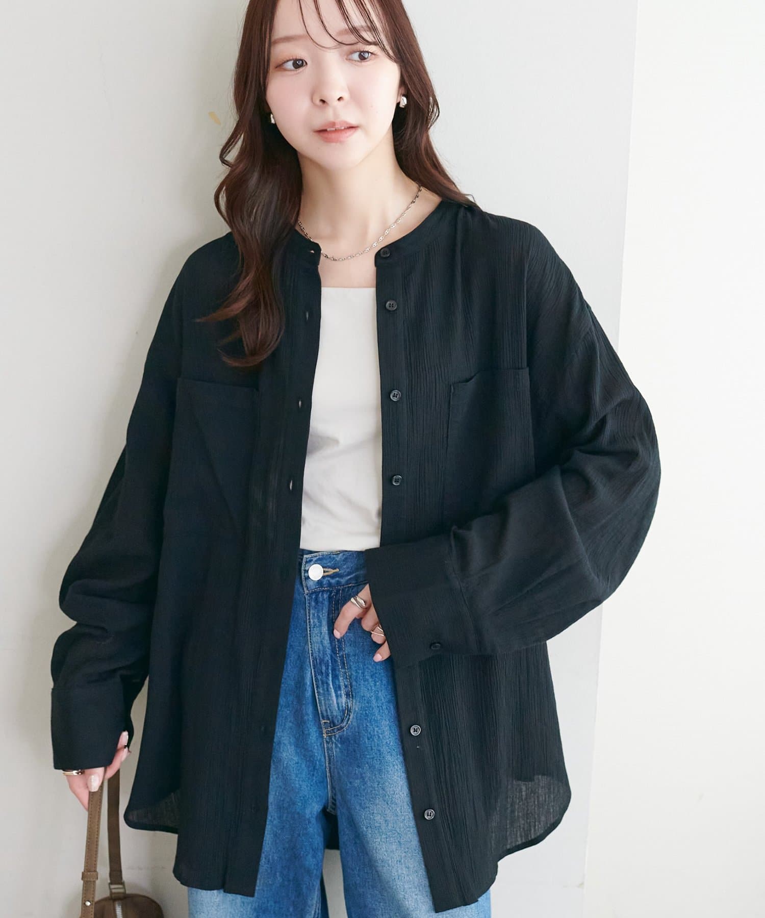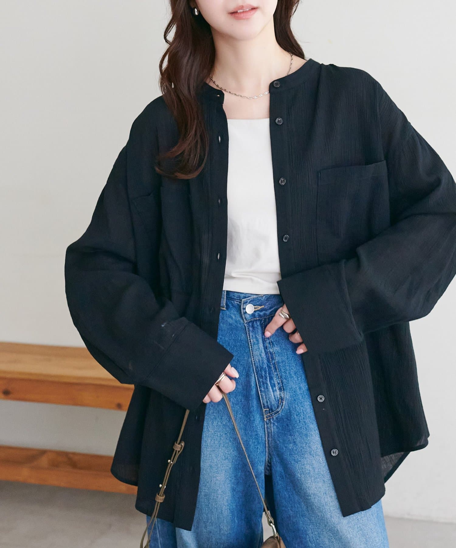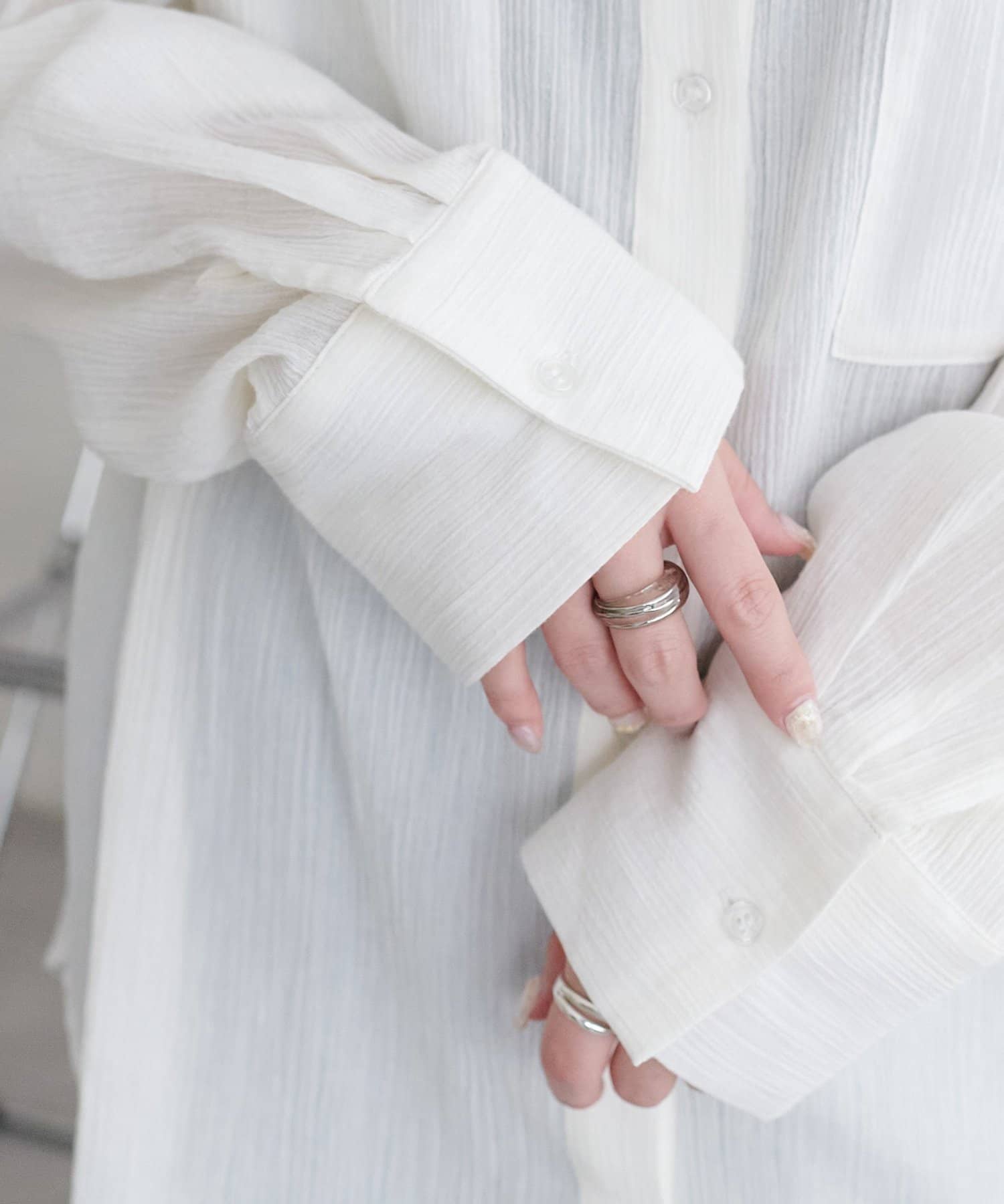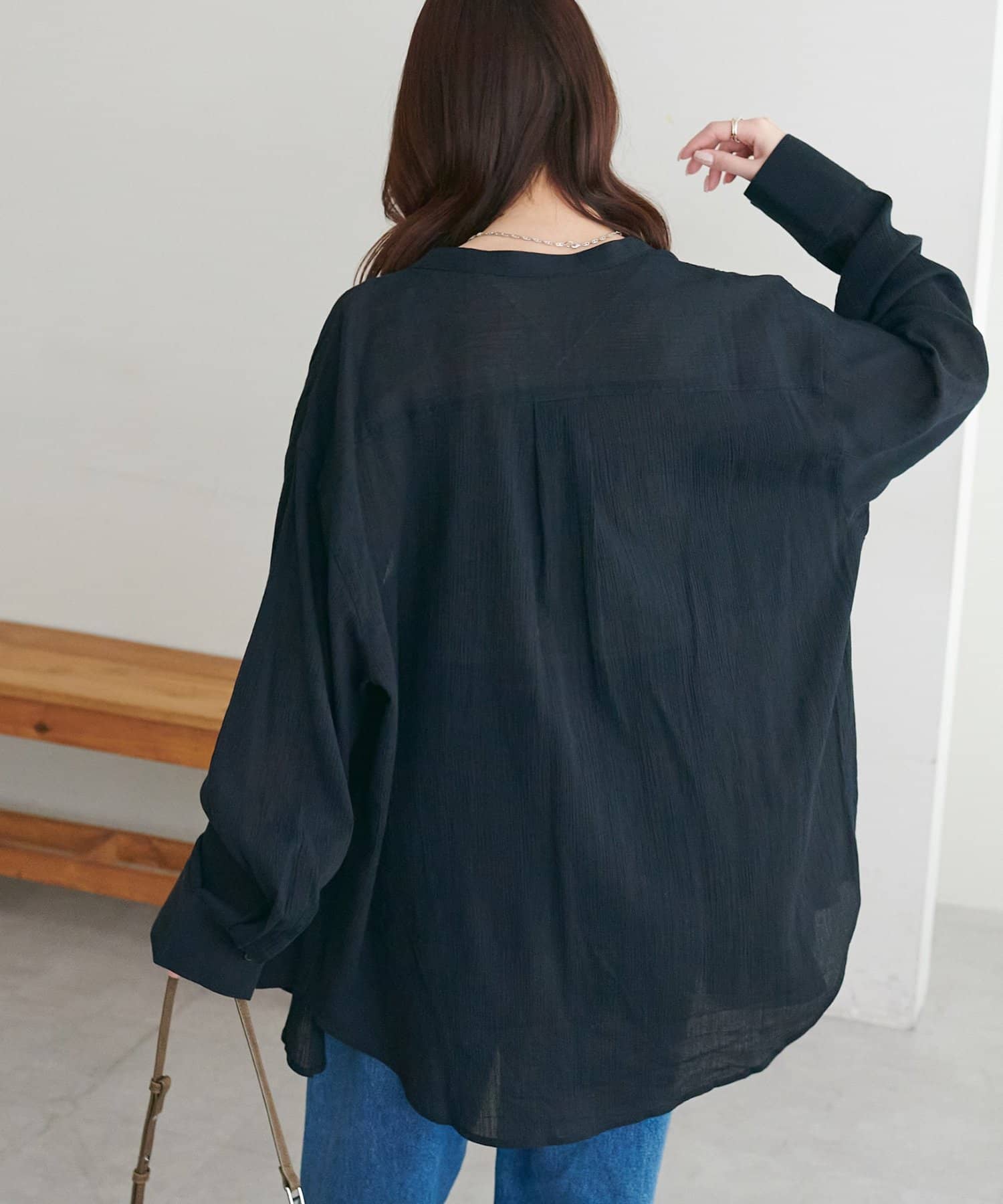 【WEB限定】シアー楊柳ノーカラーシャツ