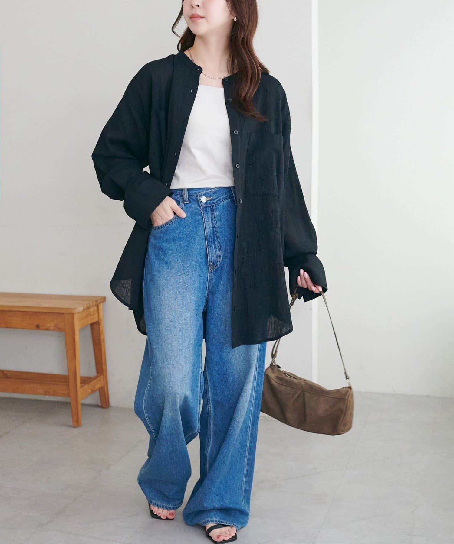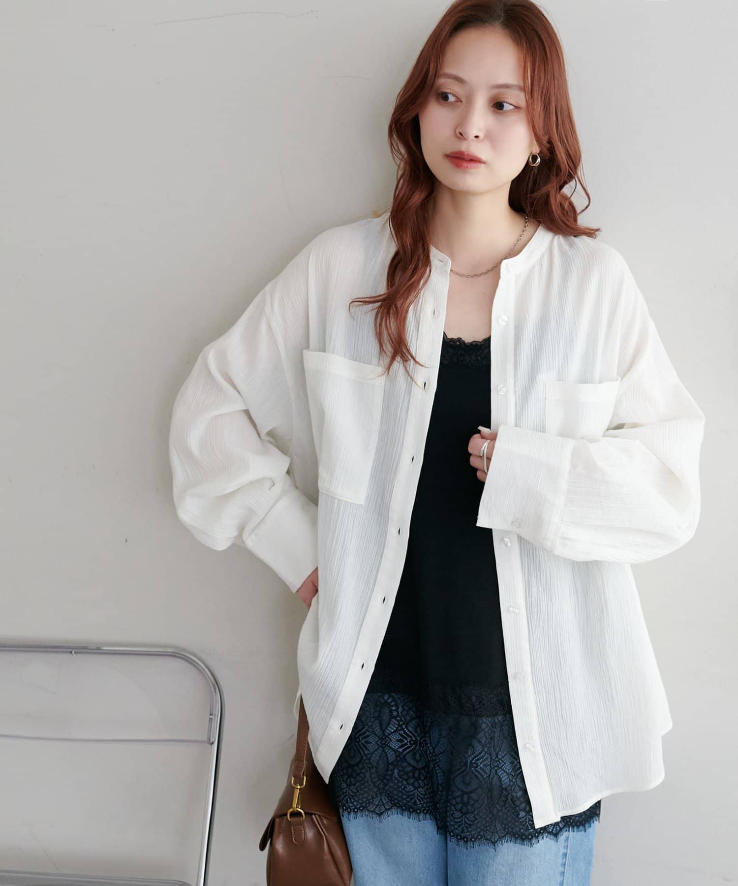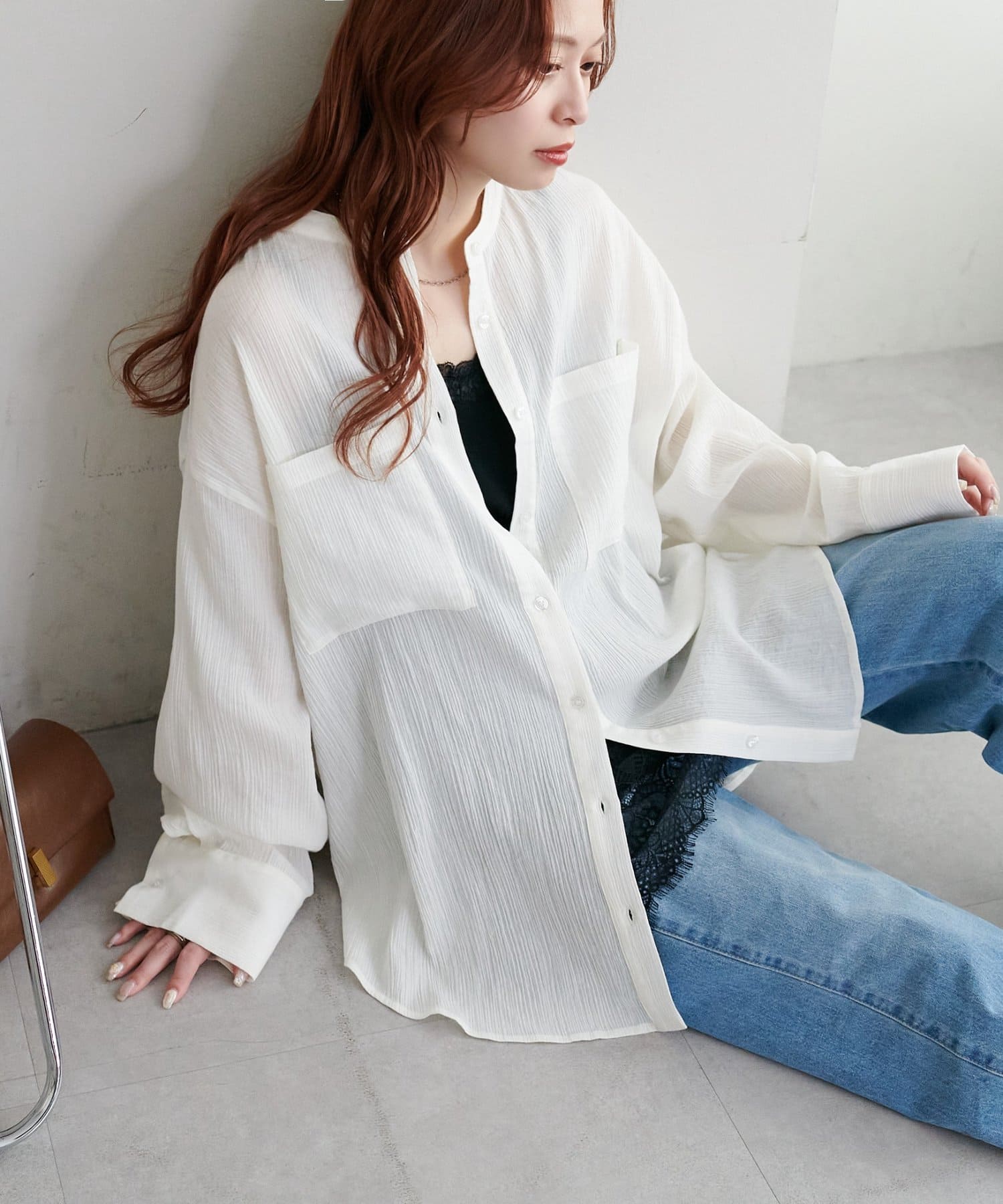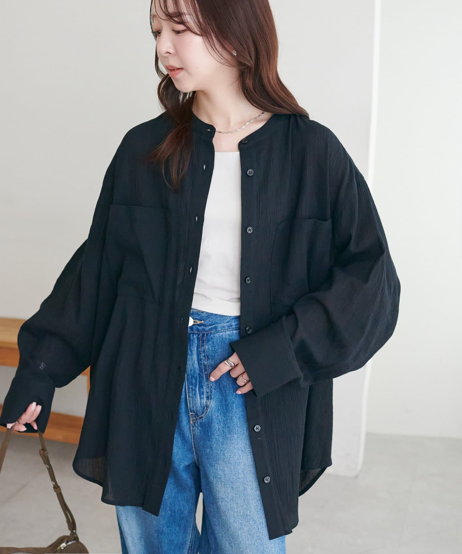 【WEB限定】シアー楊柳ノーカラーシャツ