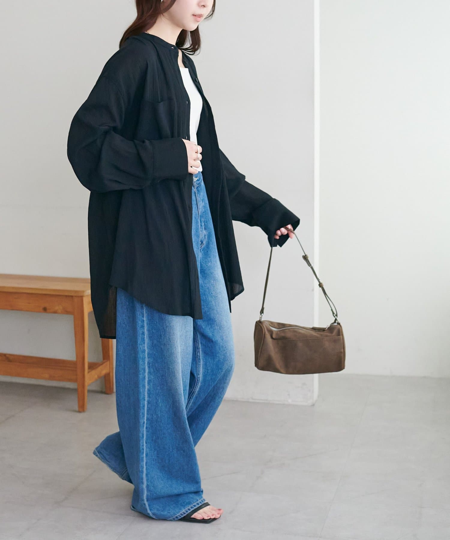 DISCOAT(ディスコート) 【WEB限定】シアー楊柳ノーカラーシャツ