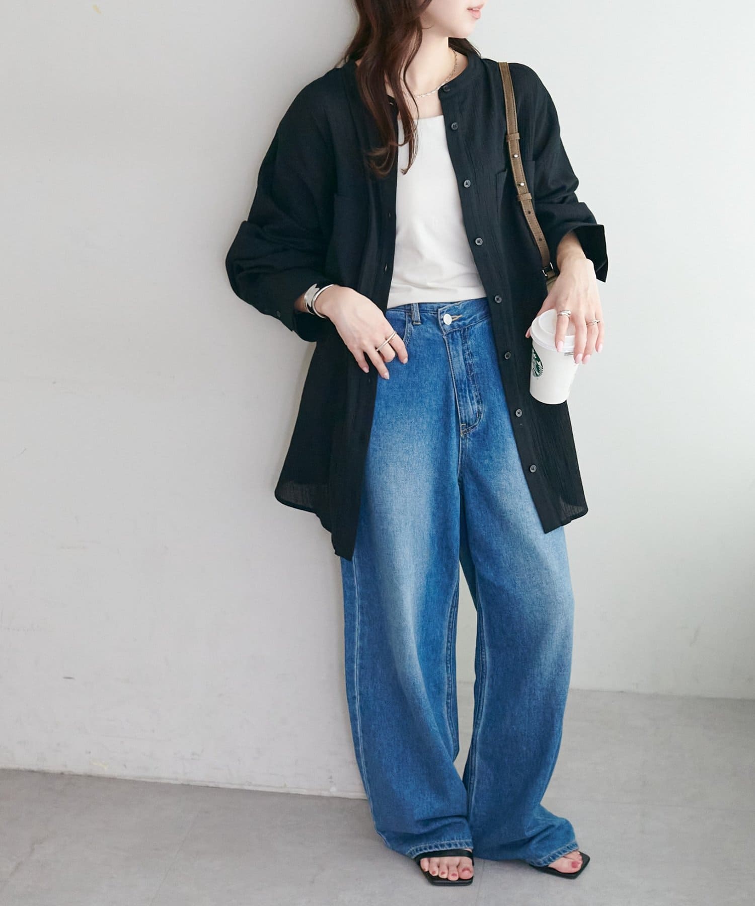 ・キャミソールにワイドデニムパンツで、夏のカジュアルスタイルの完成!