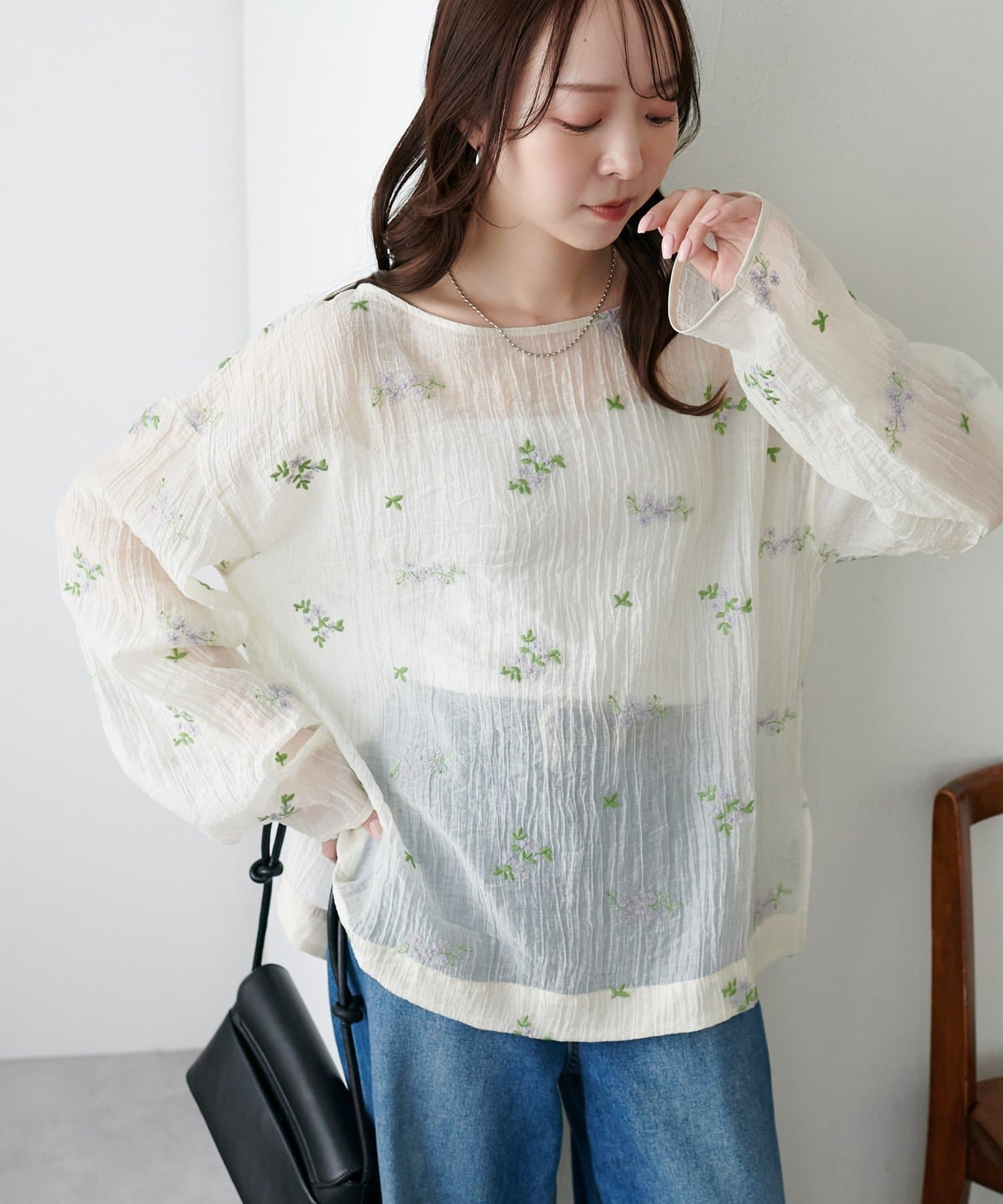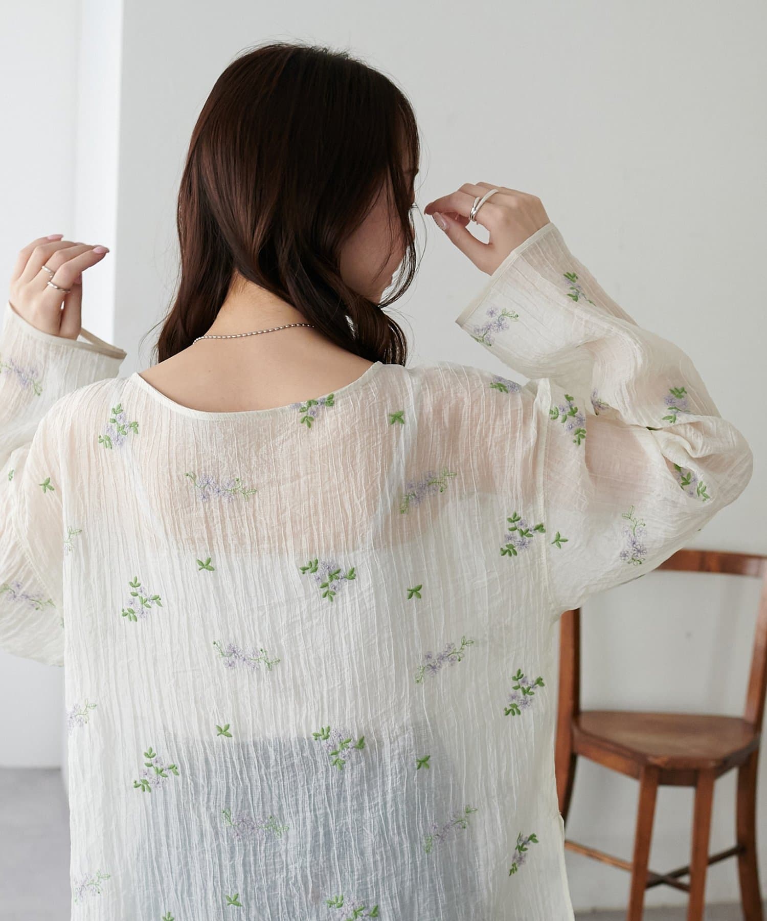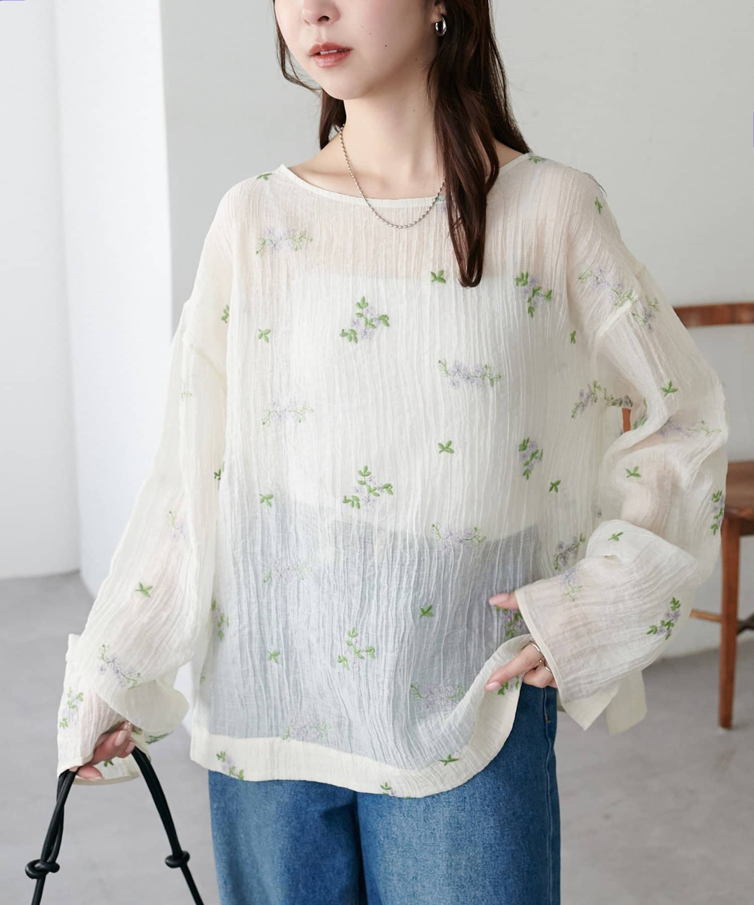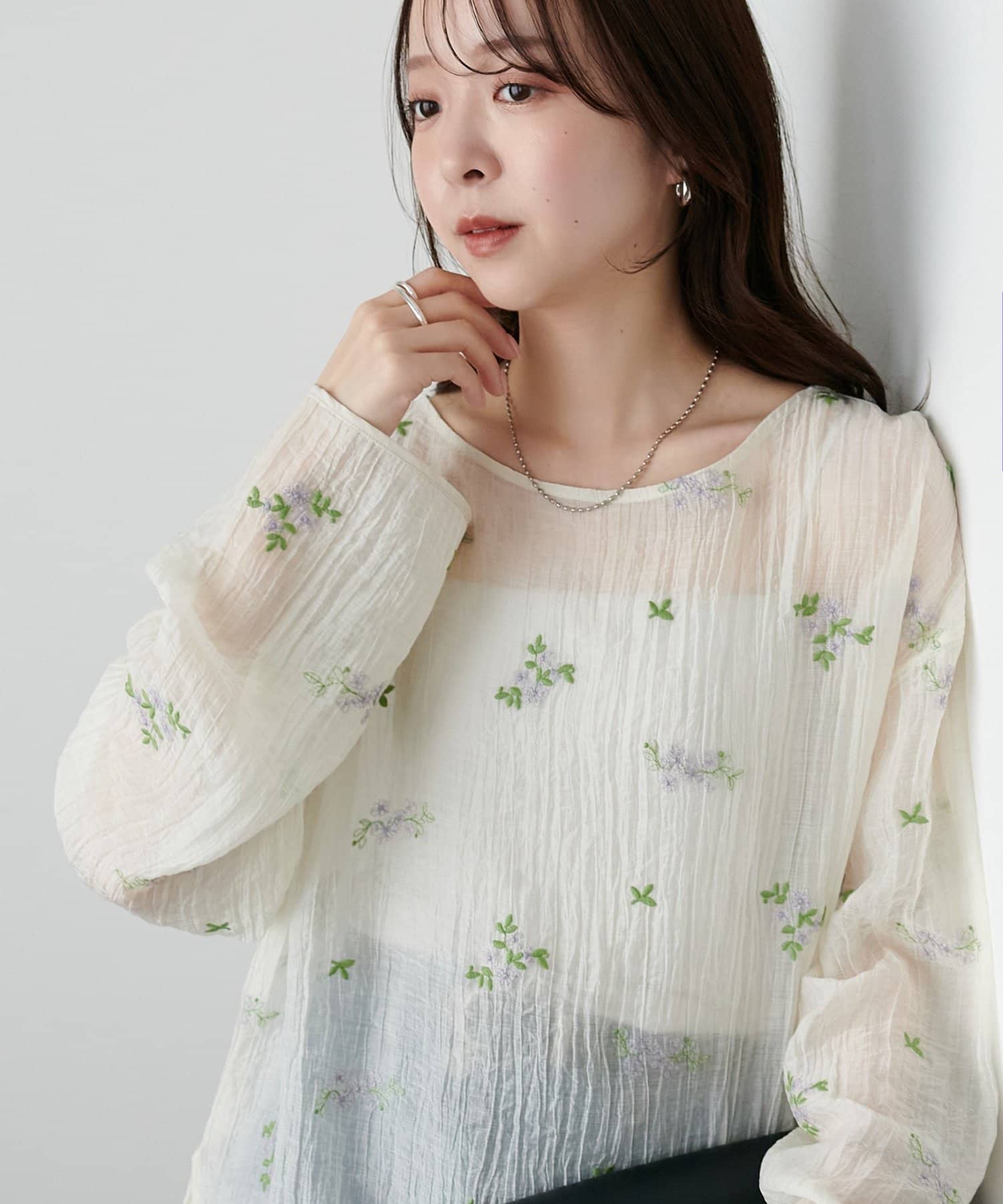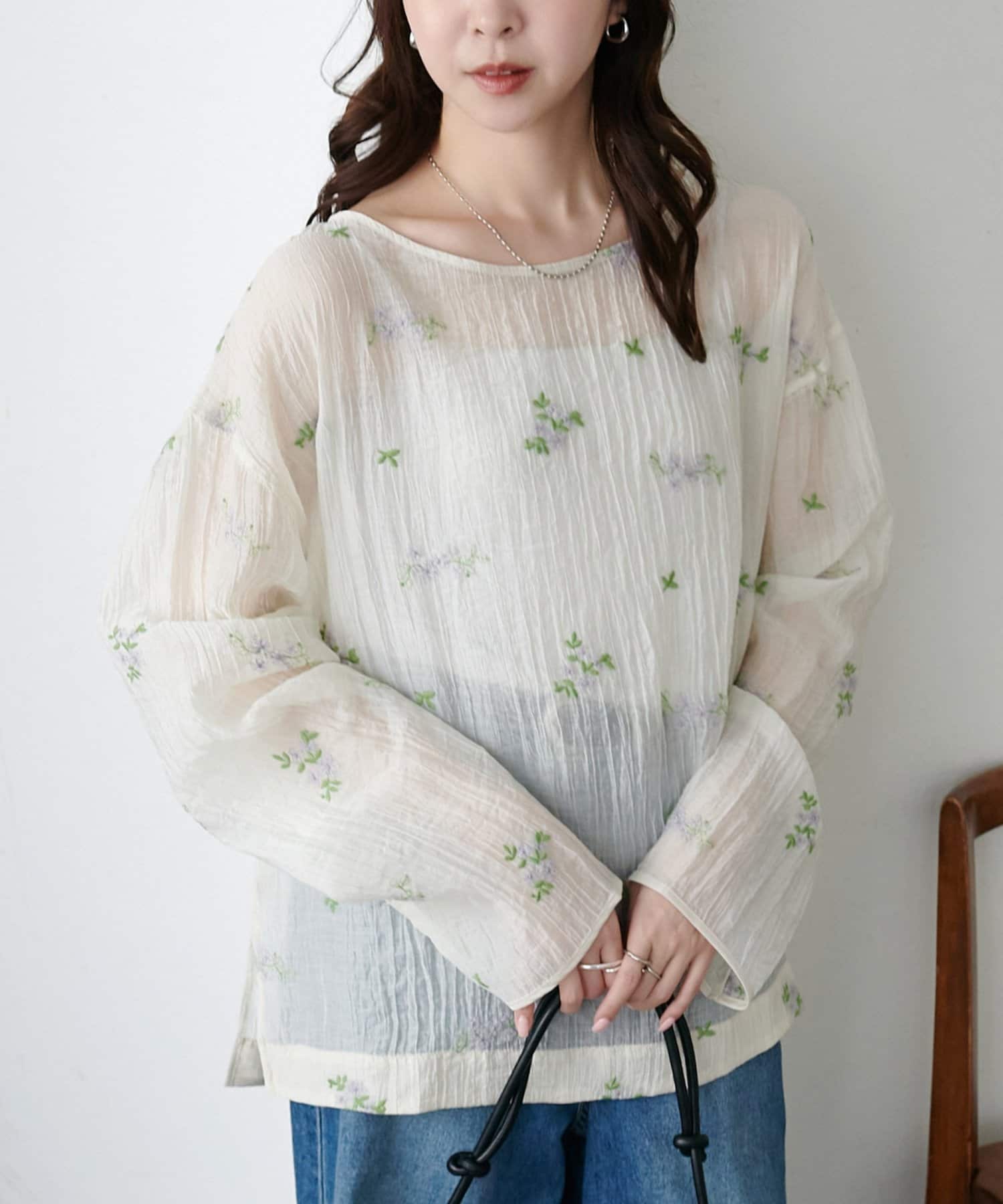 【WEB限定】花柄刺繍シアーブラウス