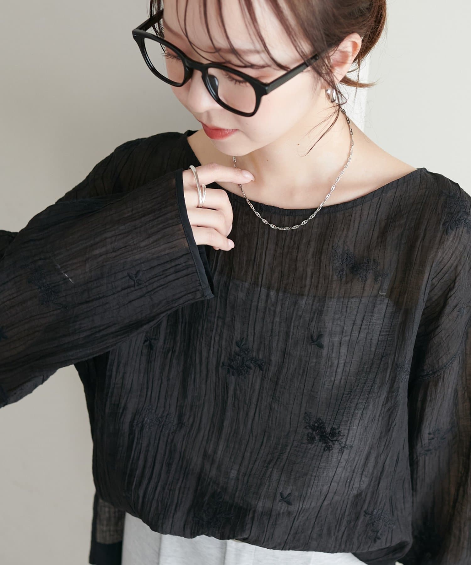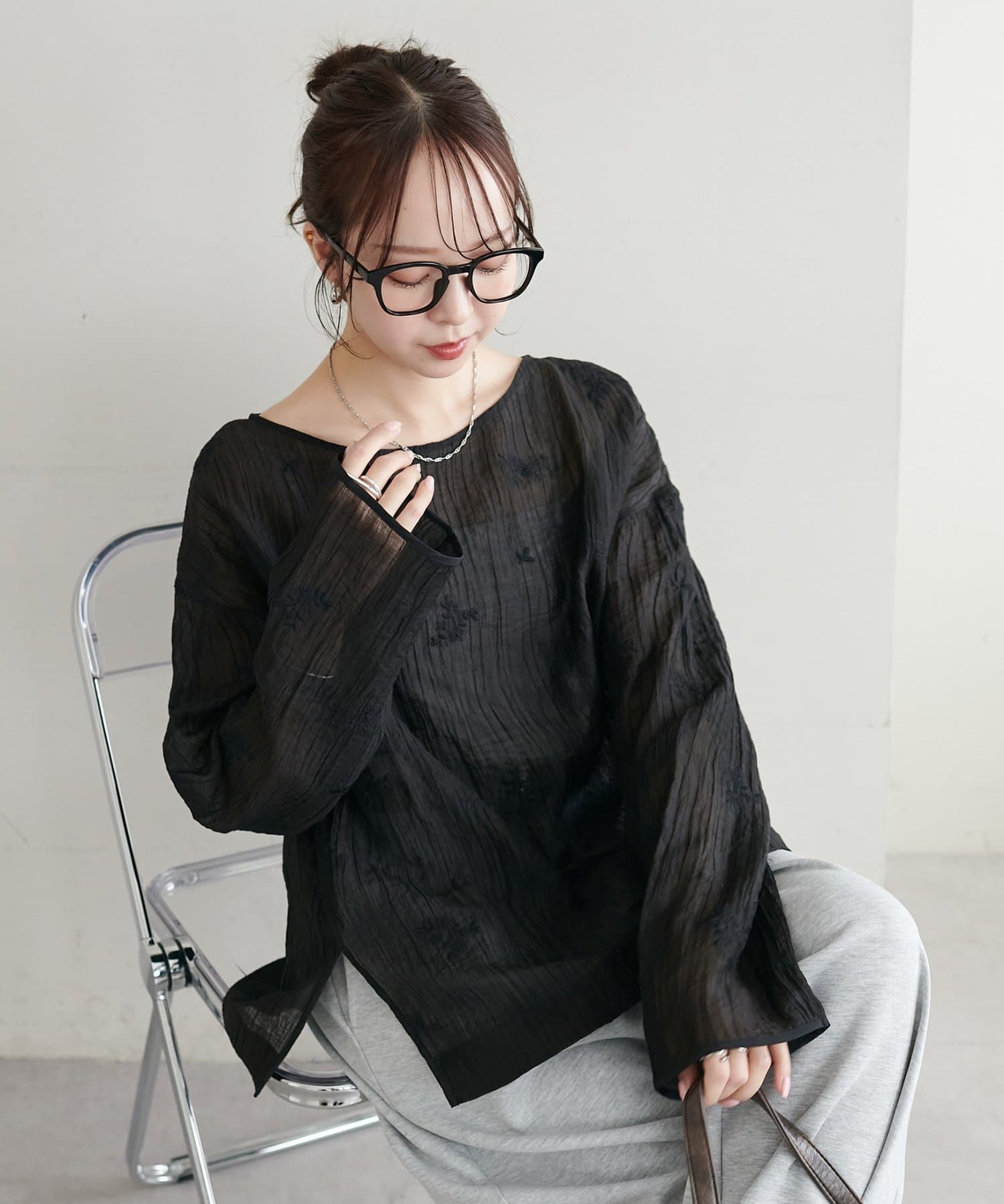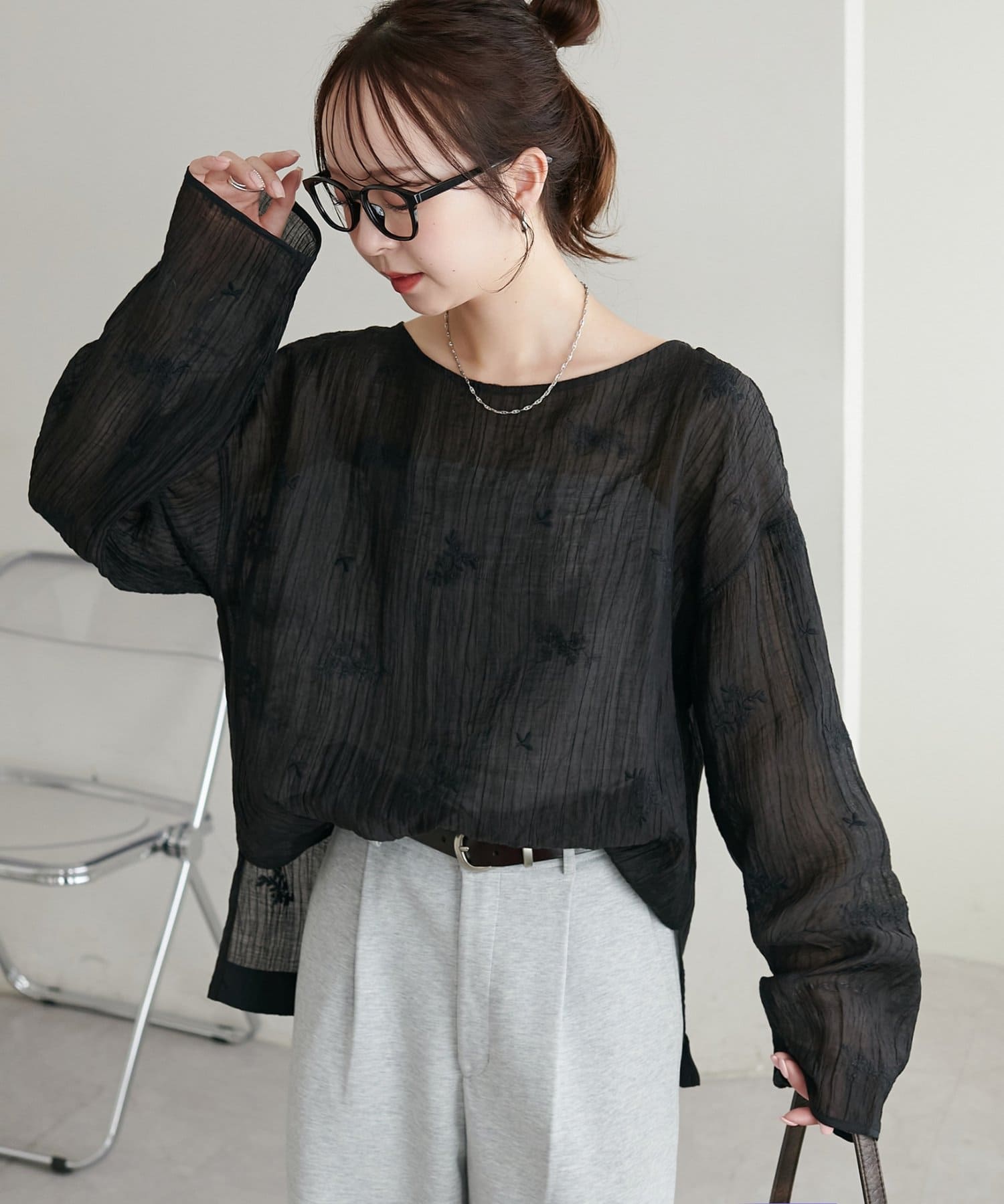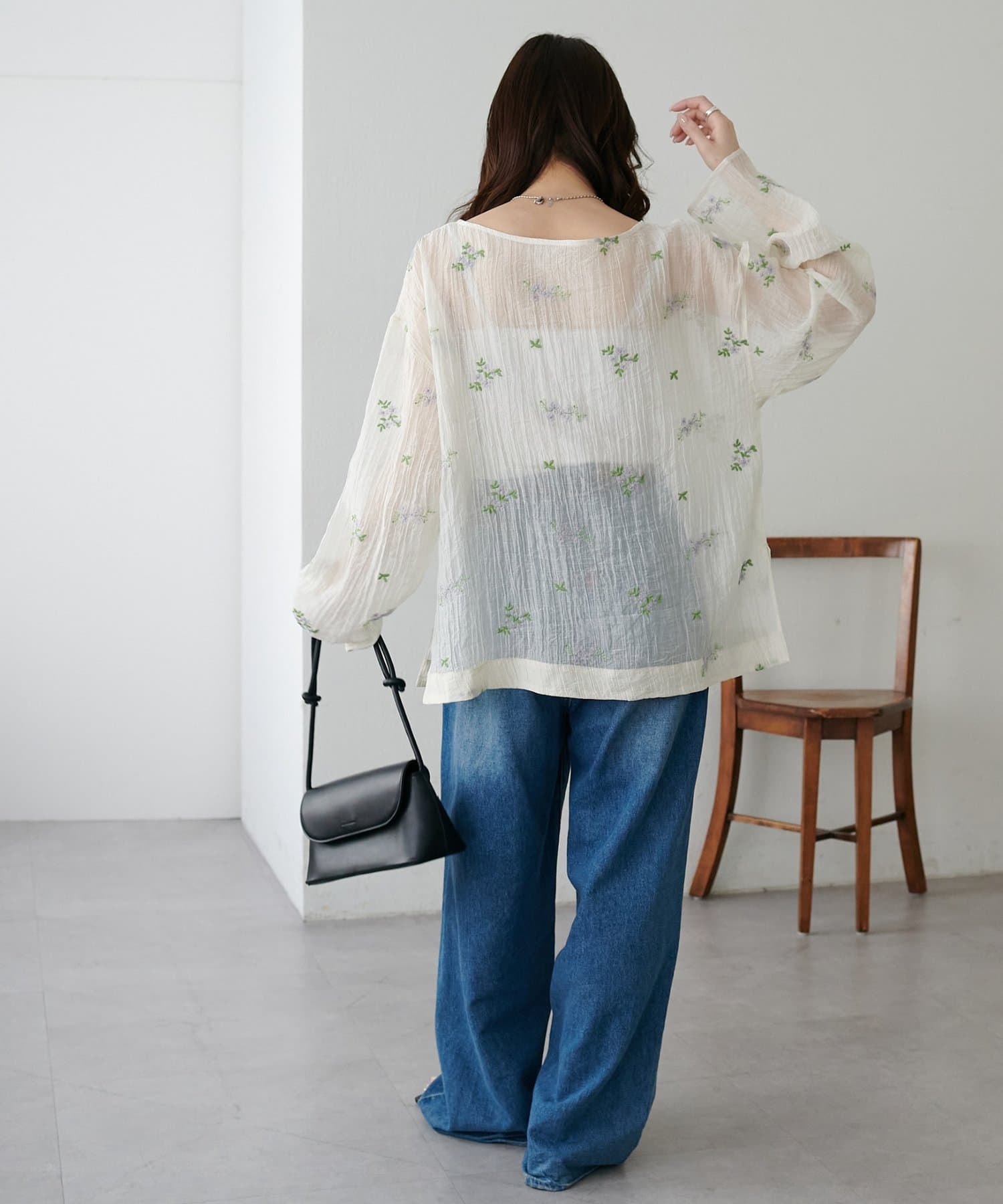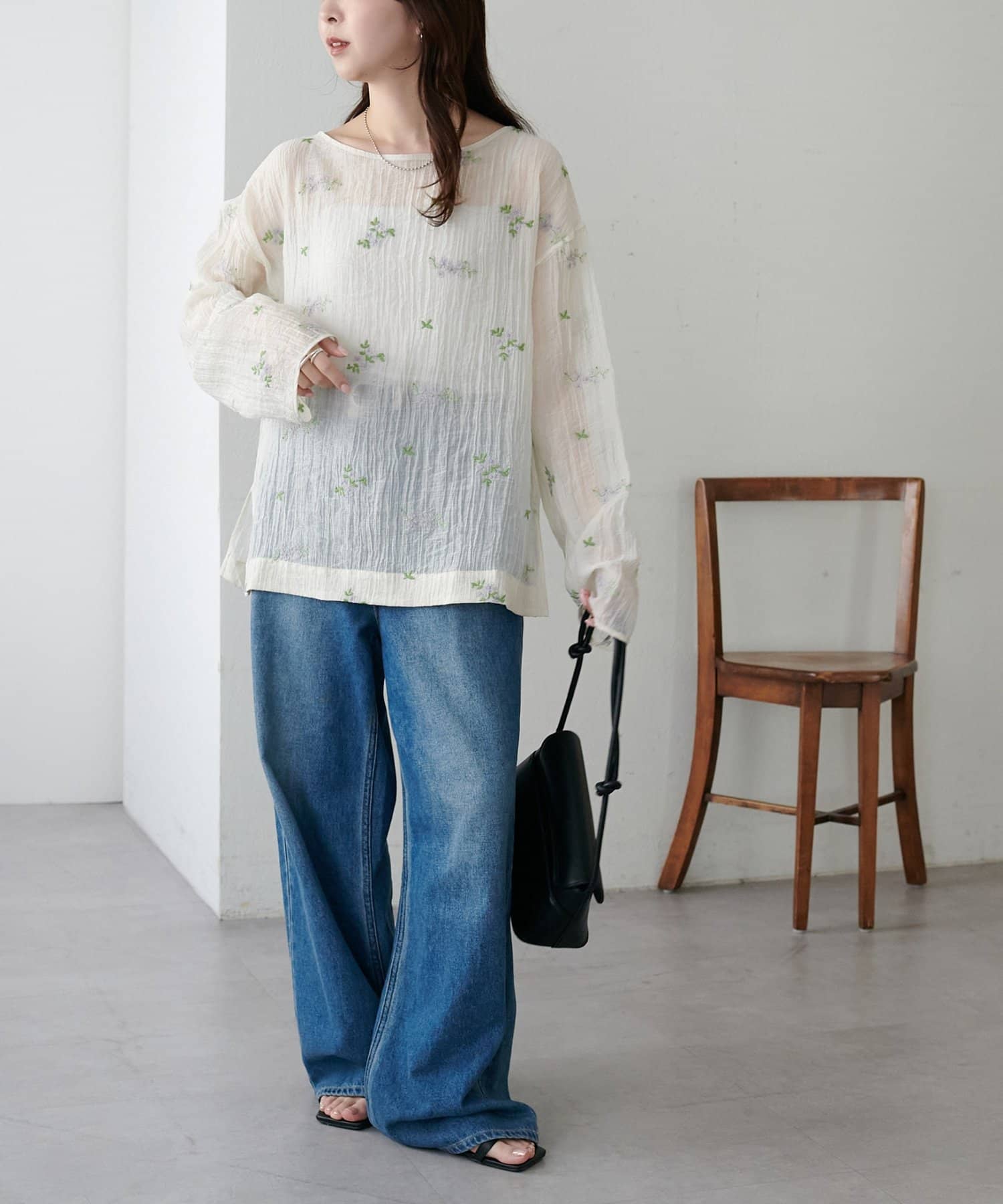 【WEB限定】花柄刺繍シアーブラウス