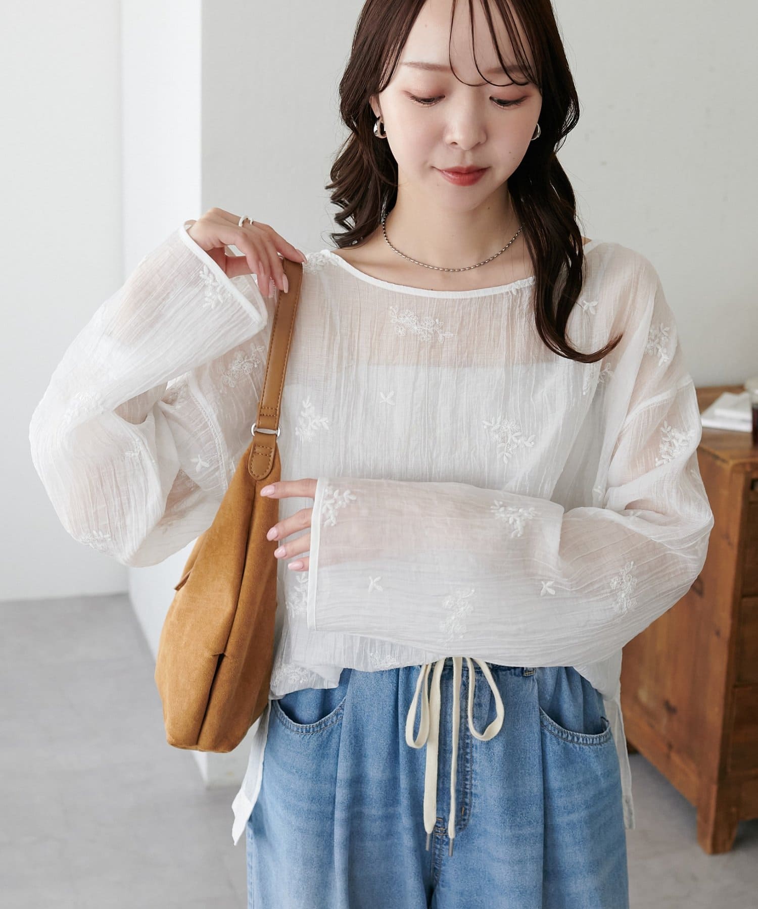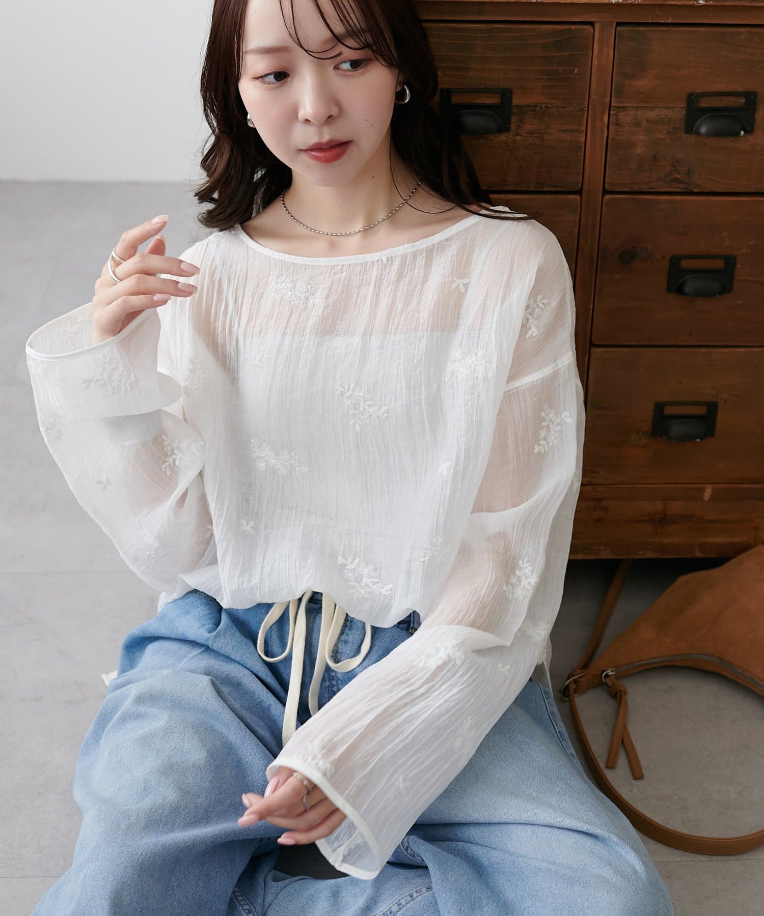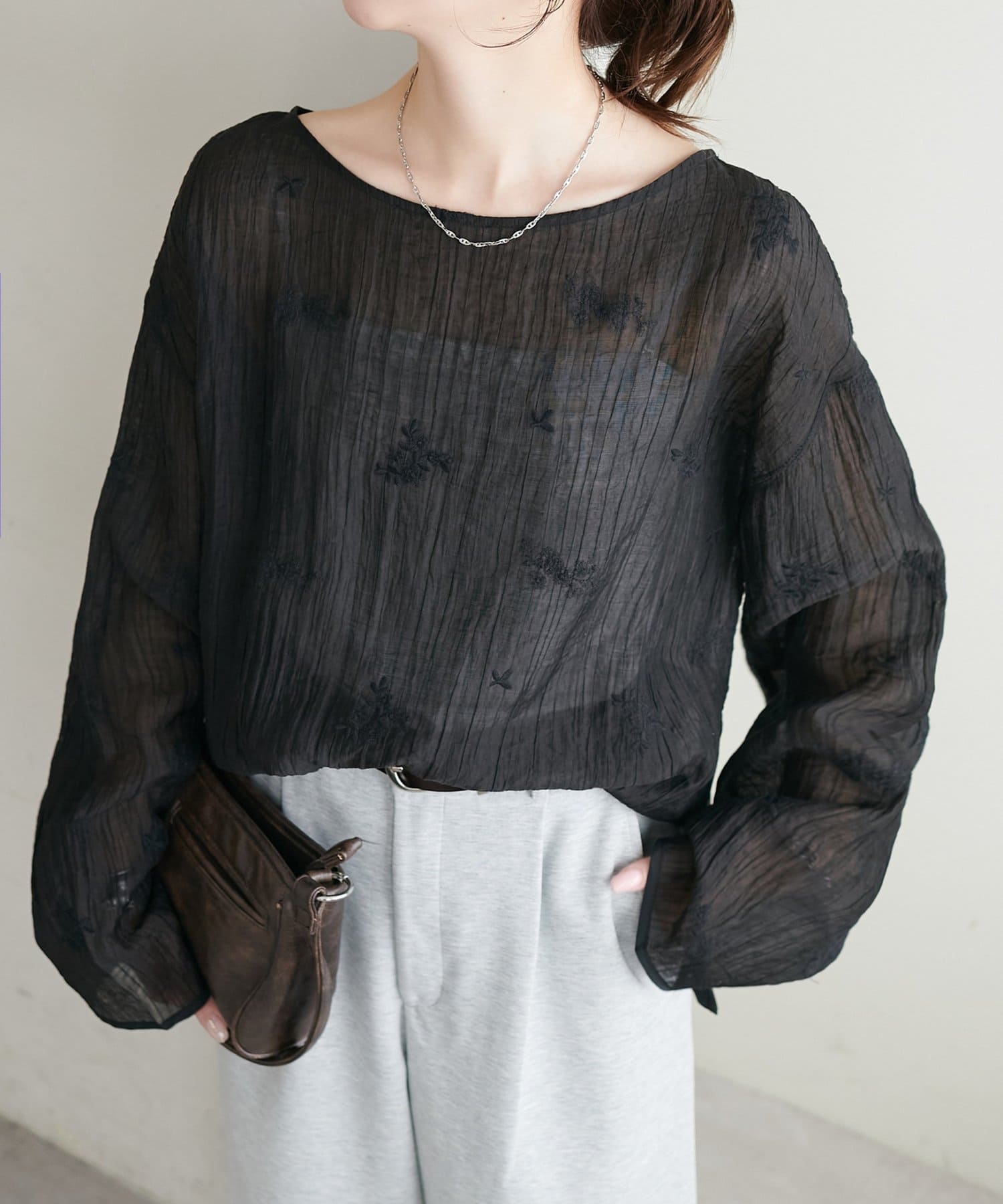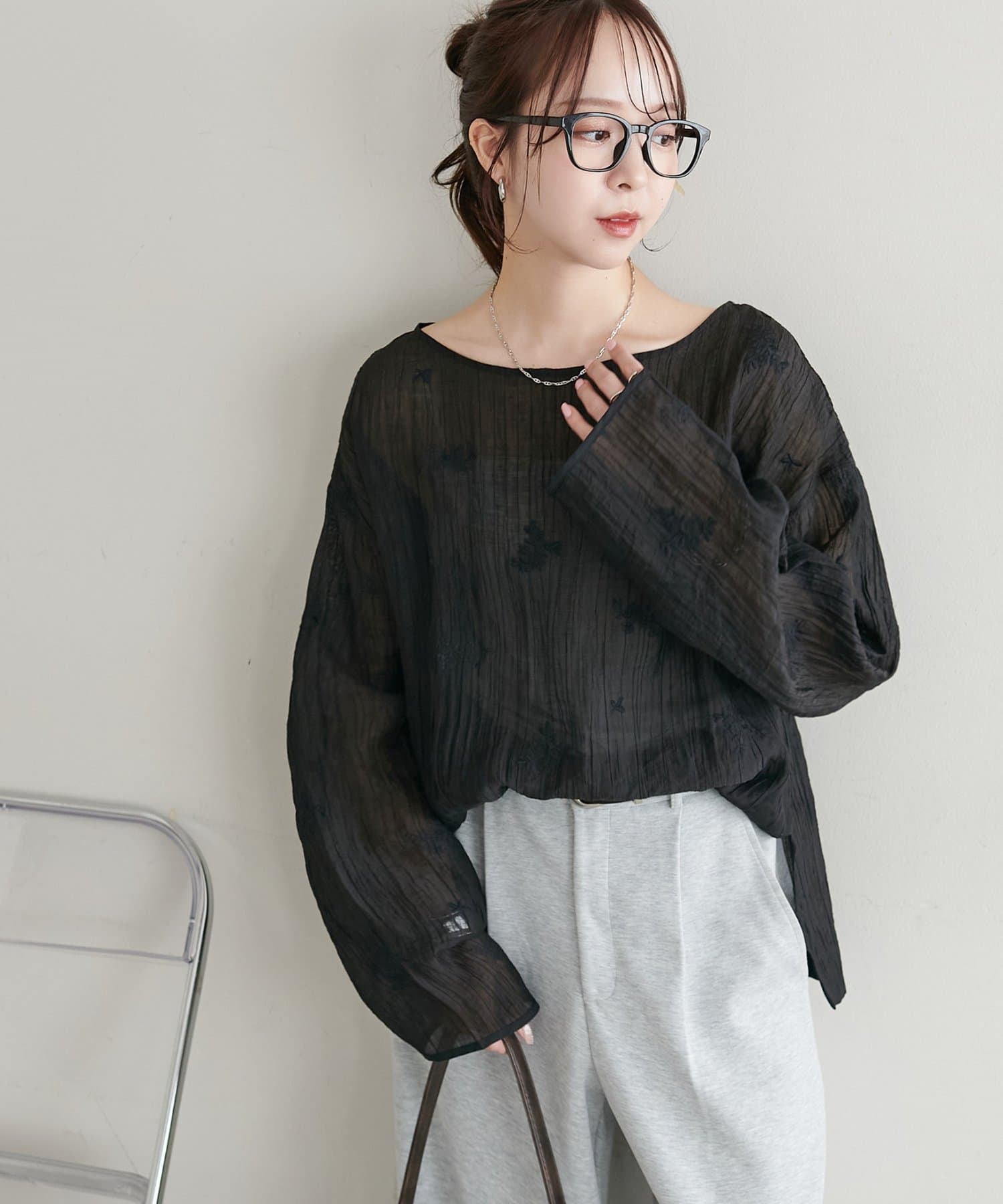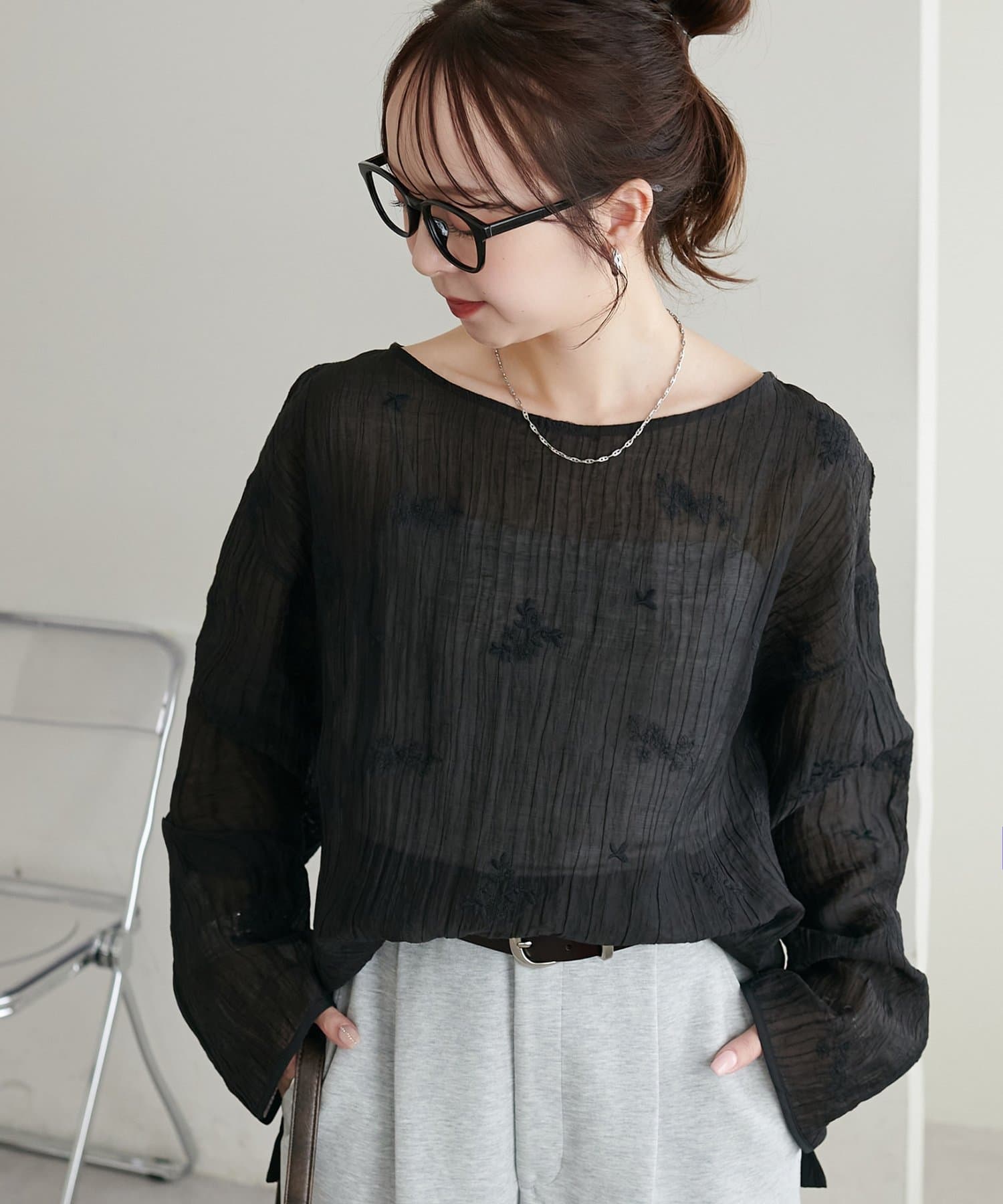 【WEB限定】花柄刺繍シアーブラウス