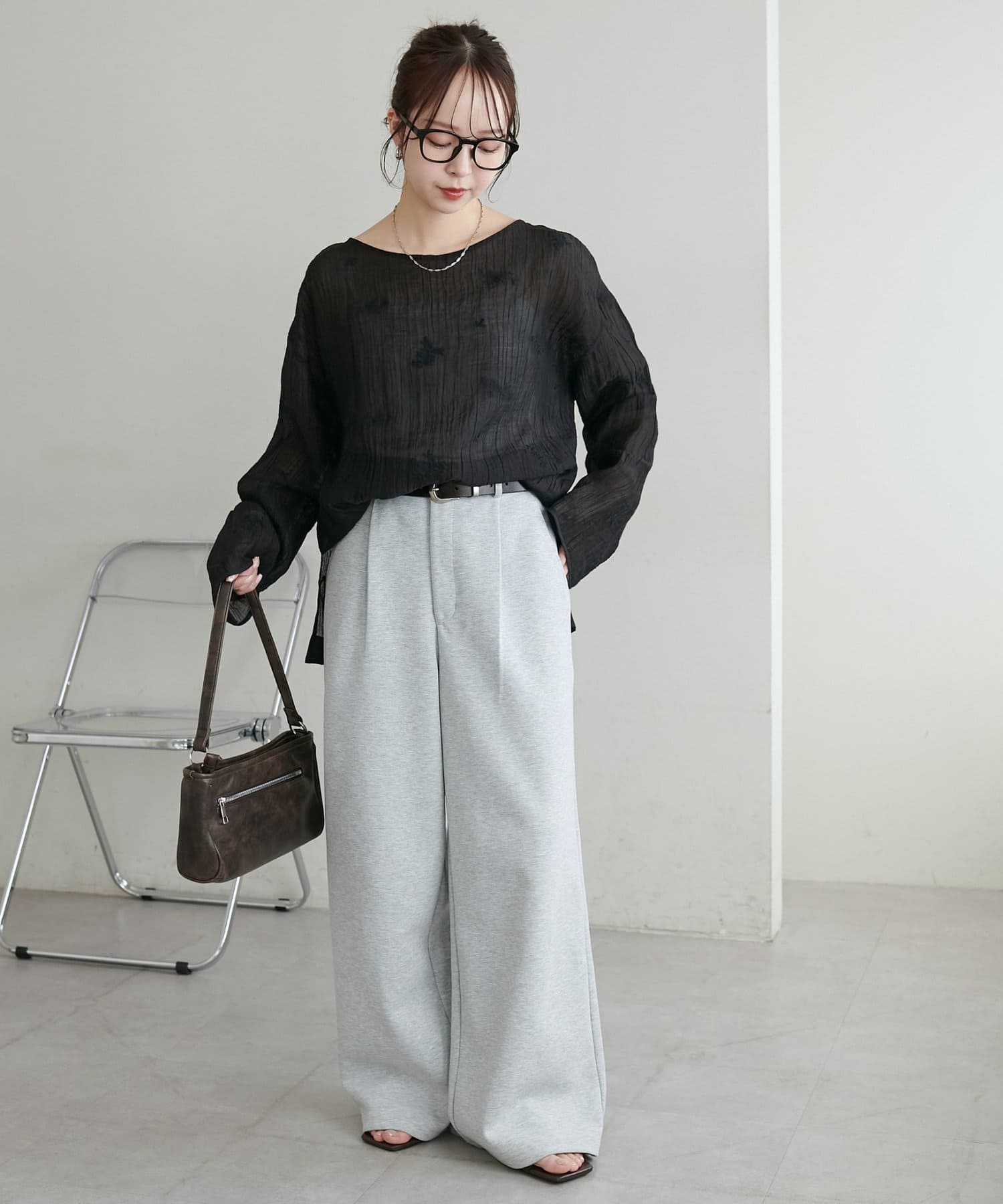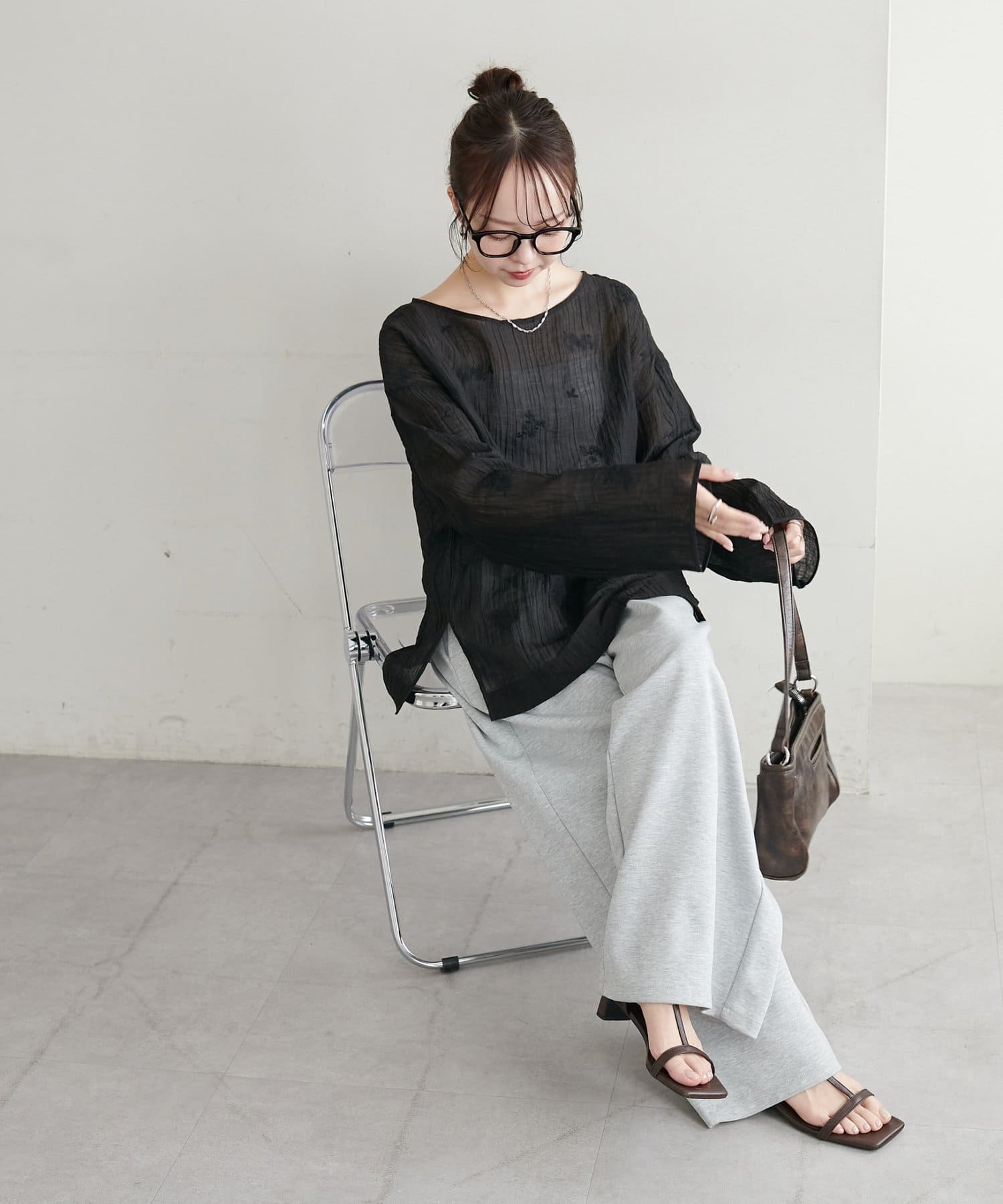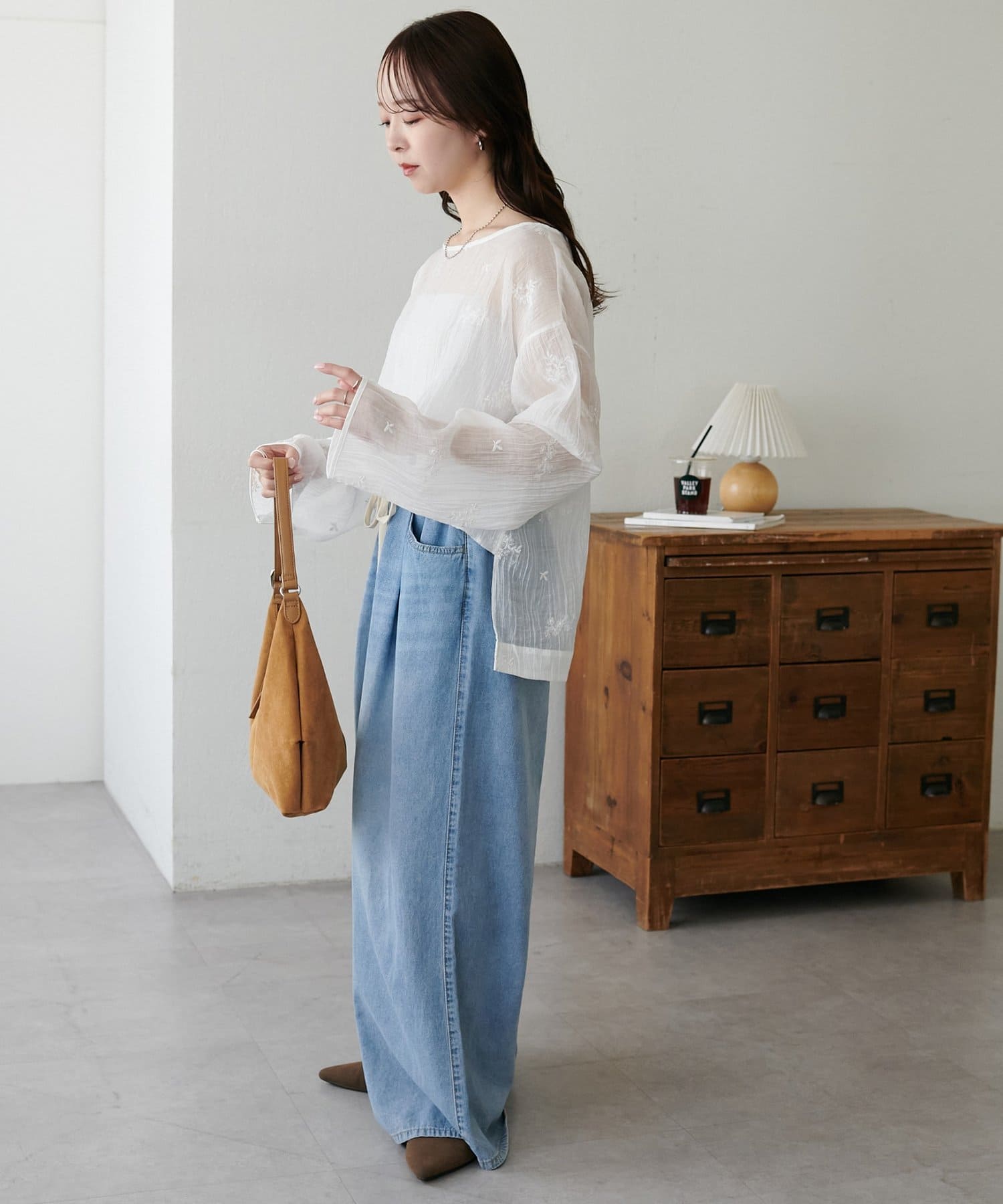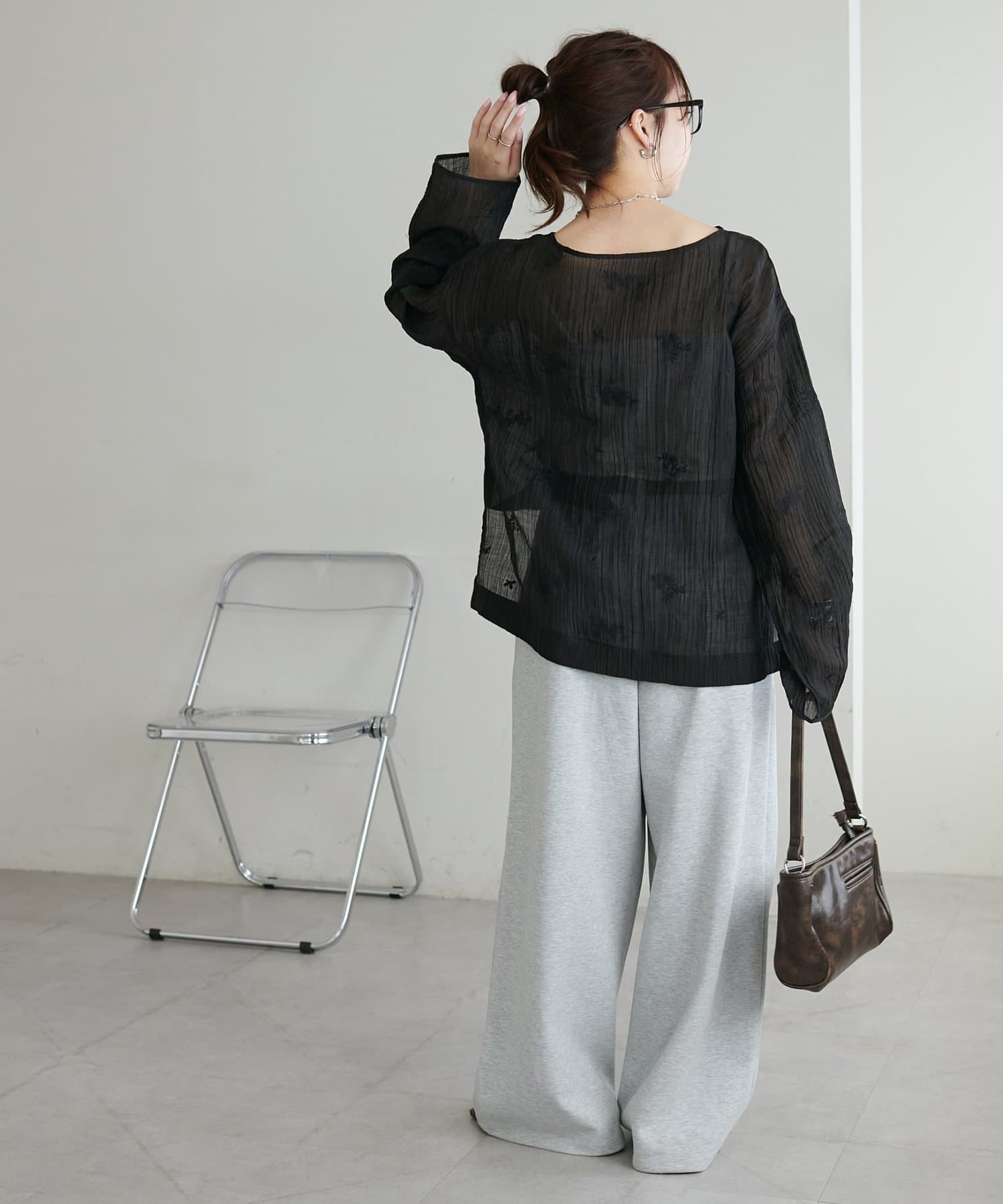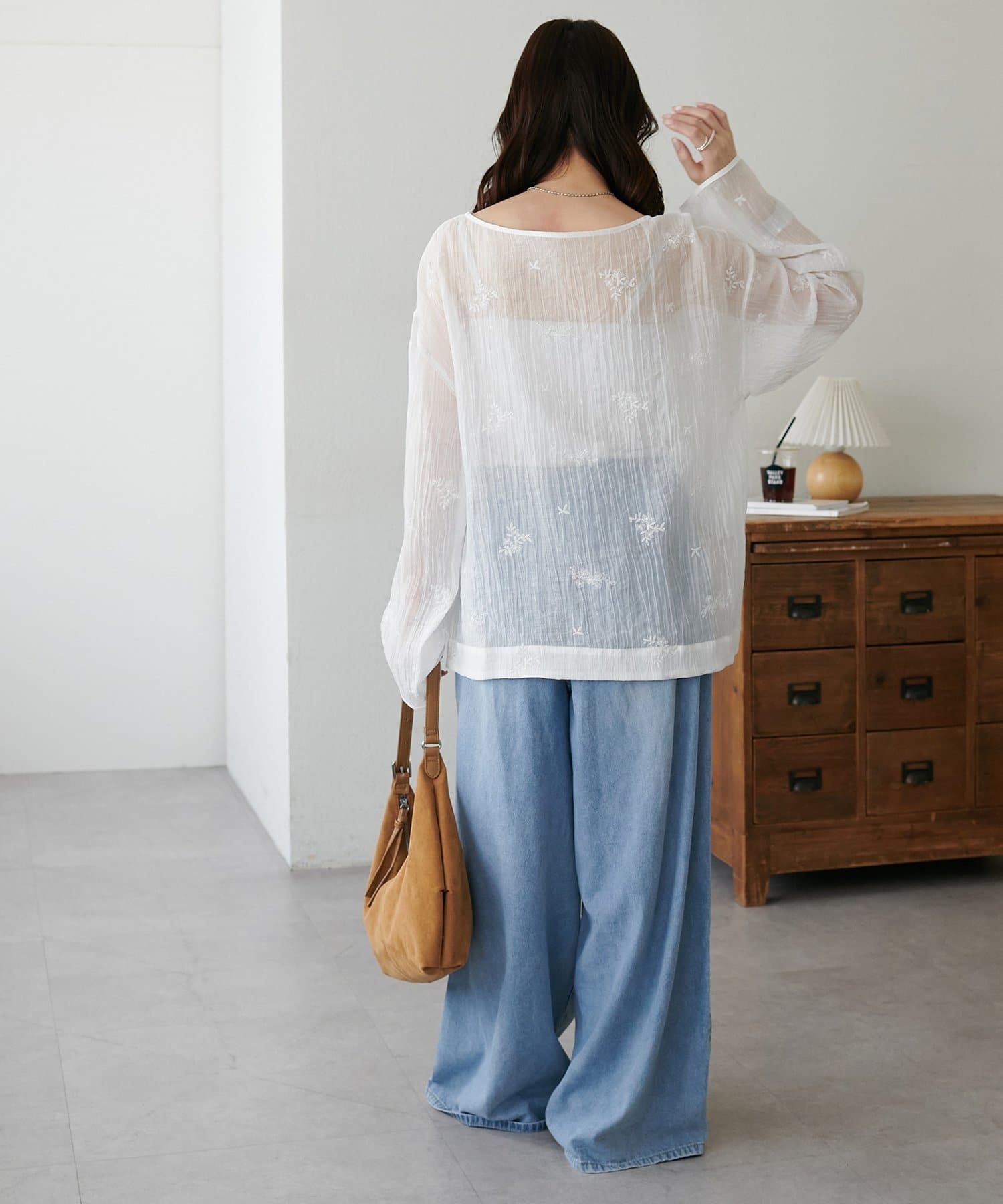 【WEB限定】花柄刺繍シアーブラウス