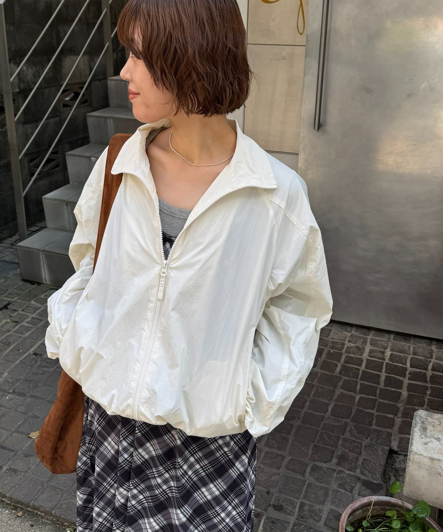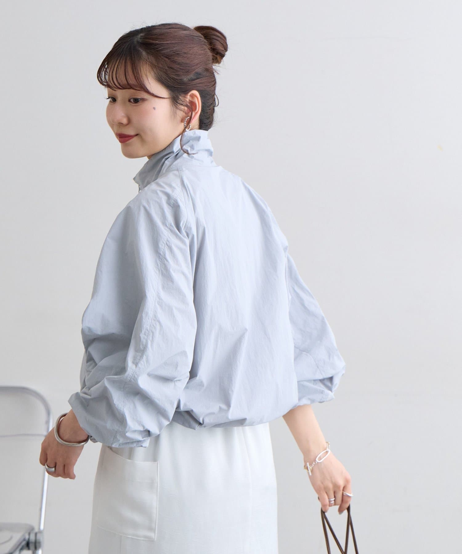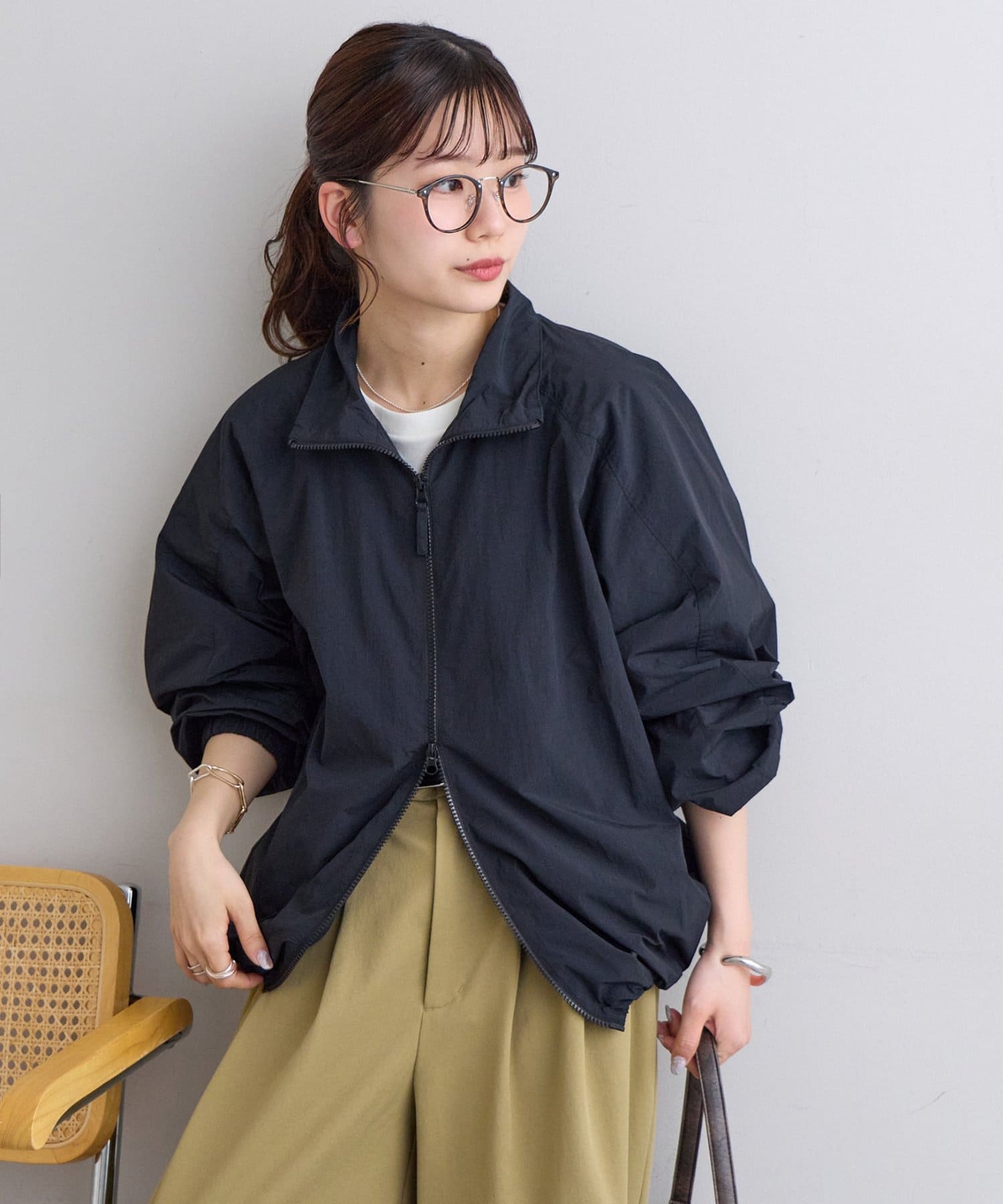 167cmスタッフ:すごく軽くてライトなアウターなので、暑い日に着てもストレスなく着こなせそうです♪スタンドネックで雰囲気を変えて着こなしを楽しめるのも嬉しいポイント。シンプルなデザインなので中に合わせるアイテムも選ばず、一着あると本当に便利です♡