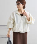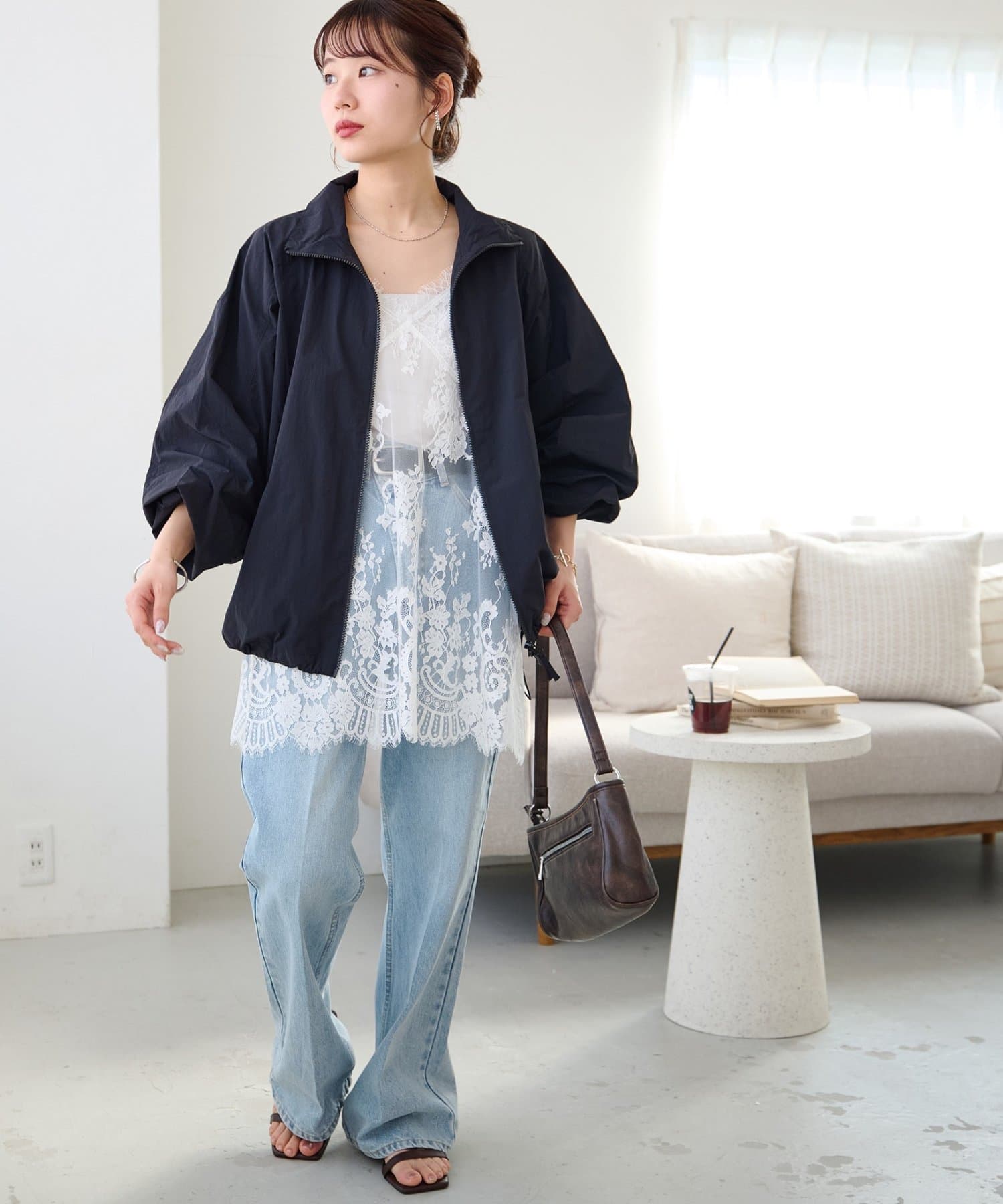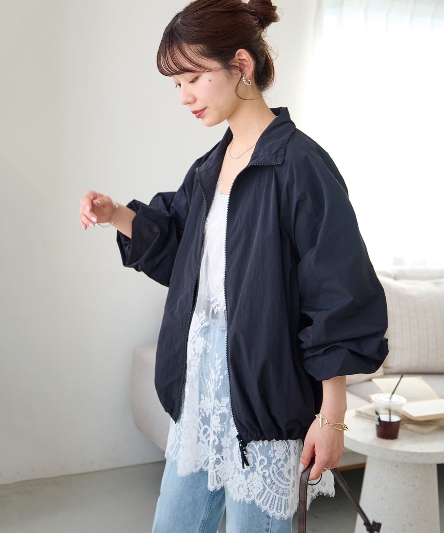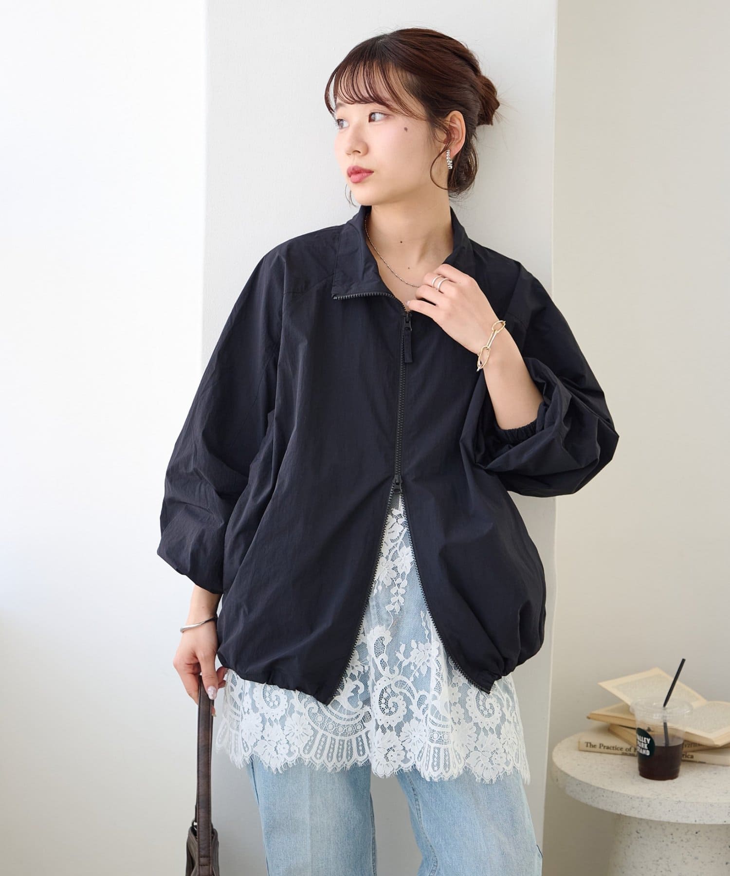 167cmスタッフ:すごく軽くてライトなアウターなので、暑い日に着てもストレスなく着こなせそうです♪スタンドネックで雰囲気を変えて着こなしを楽しめるのも嬉しいポイント。シンプルなデザインなので中に合わせるアイテムも選ばず、一着あると本当に便利です♡