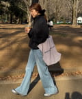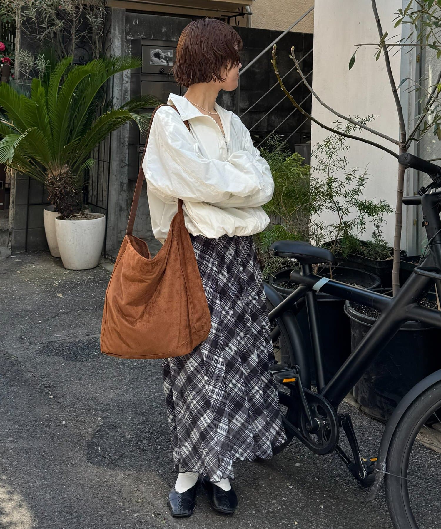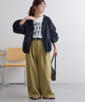 ・シンプルなので、デザイン性のあるブラウスやシャツをレイヤードした着こなしもおすすめ♪