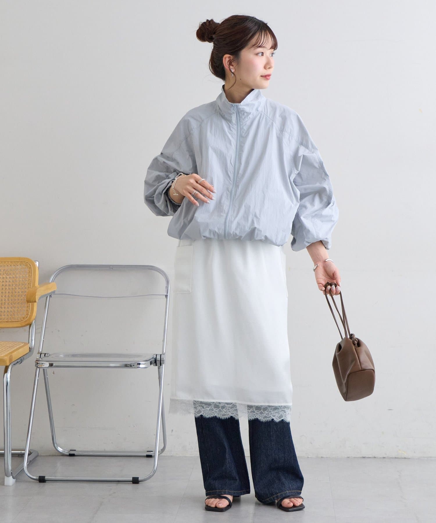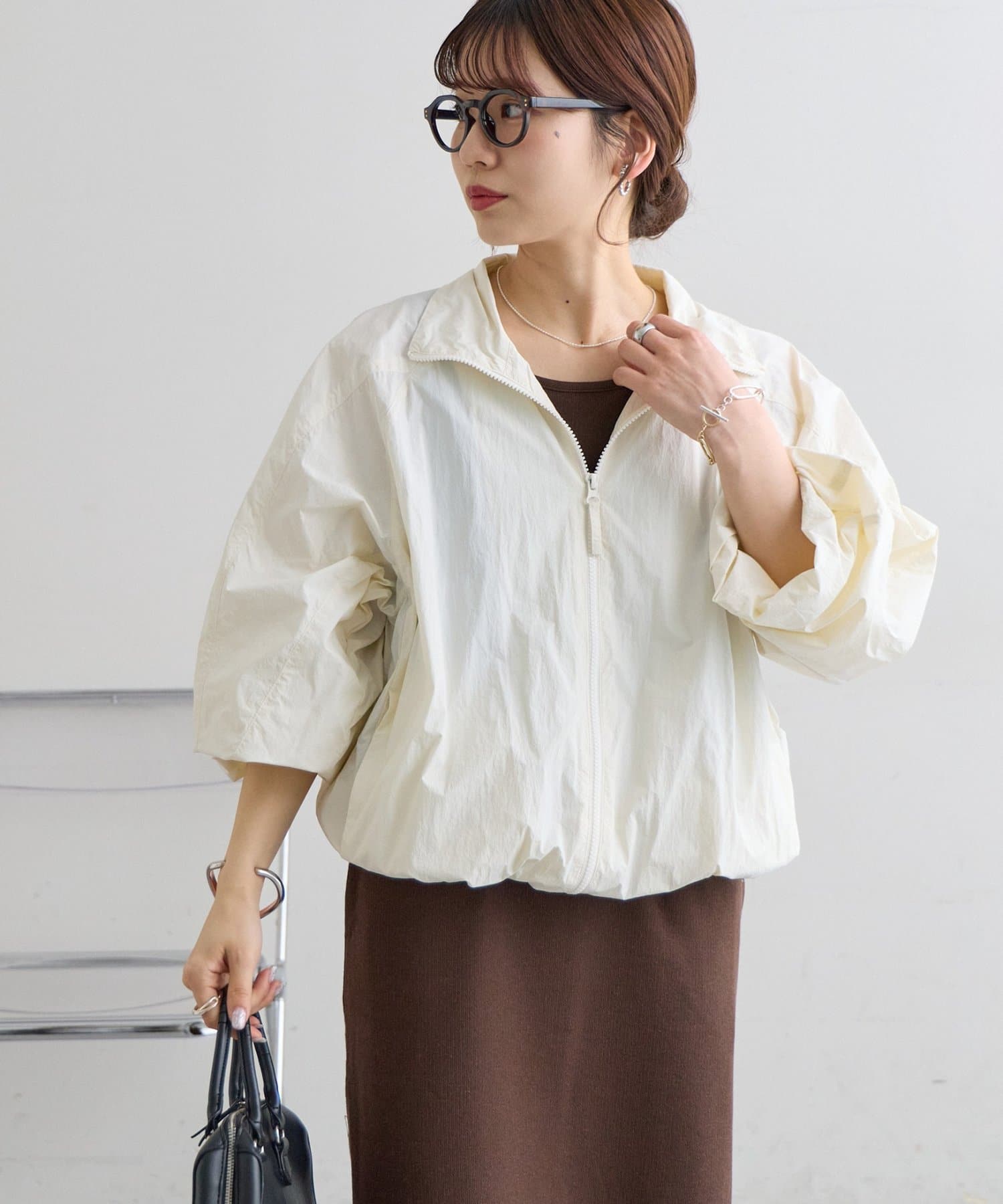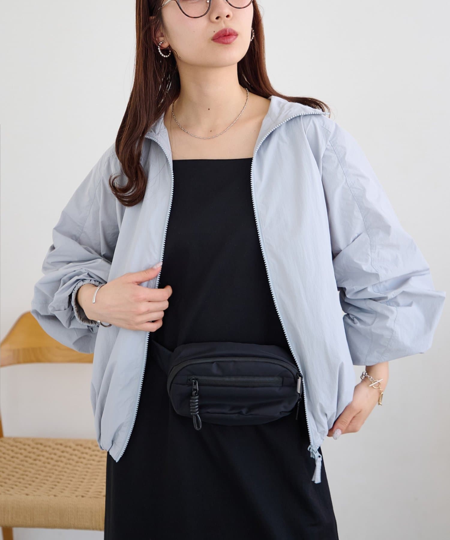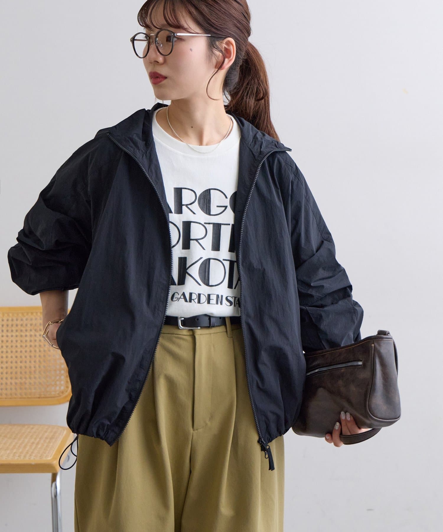 152cmスタッフ:ドローコードで裾を絞って着丈を調整できるので、小柄な私でもバランスがとりやすかったです♪シャリ感のある軽いナイロン素材で、レジャーなどのお出かけシーンにも持っていきたいです!