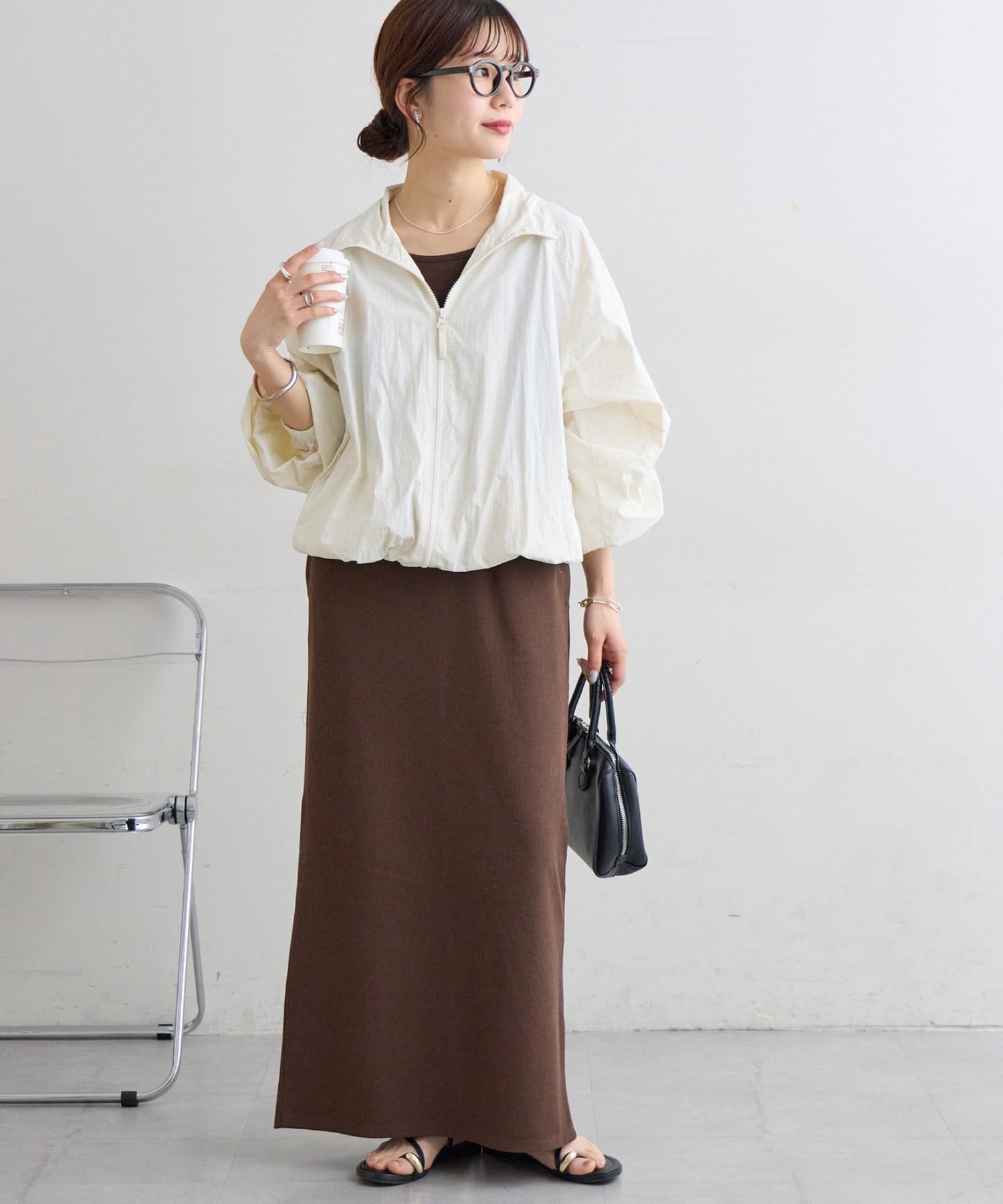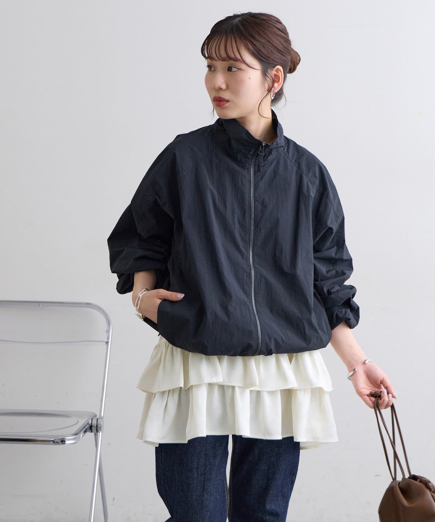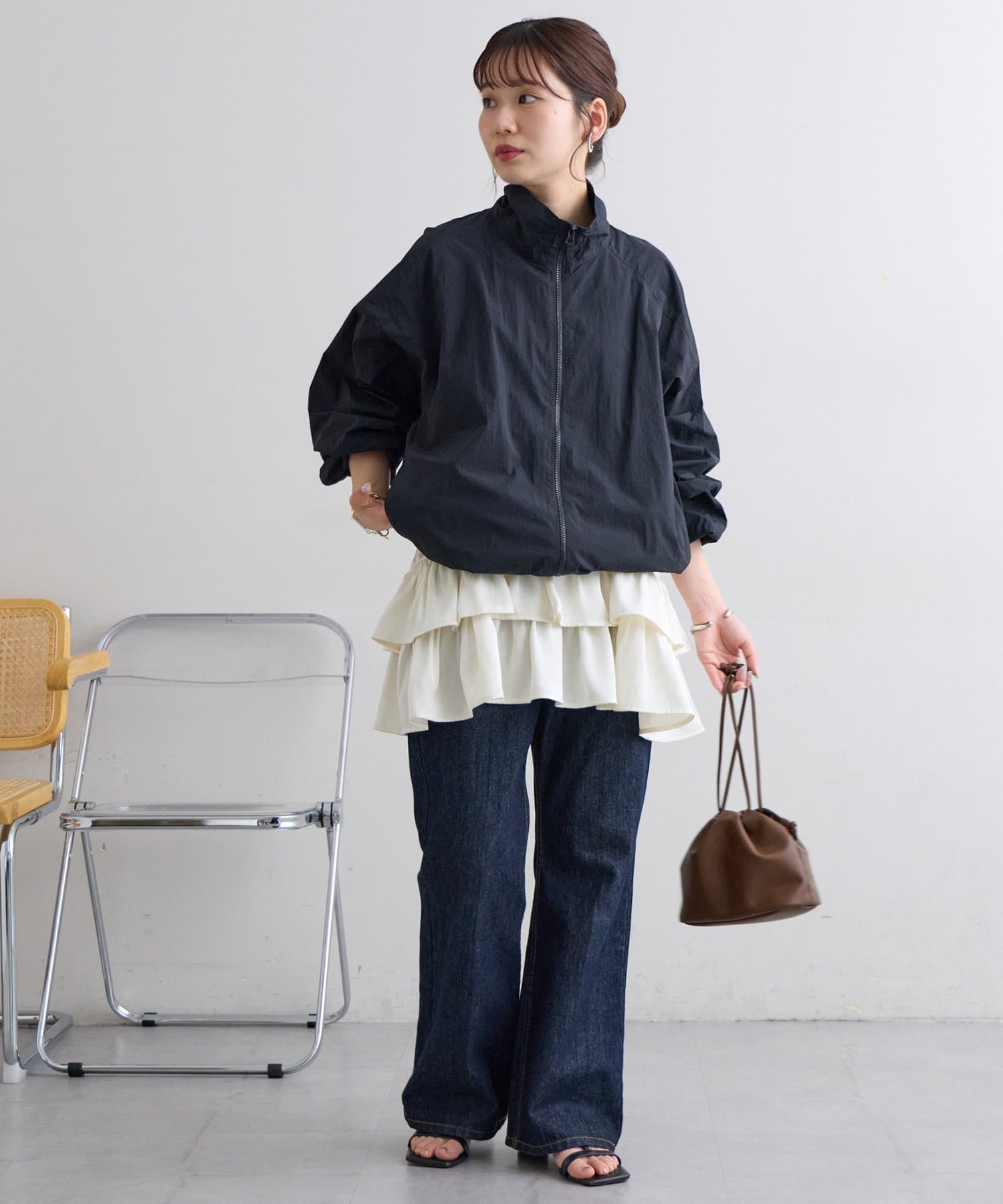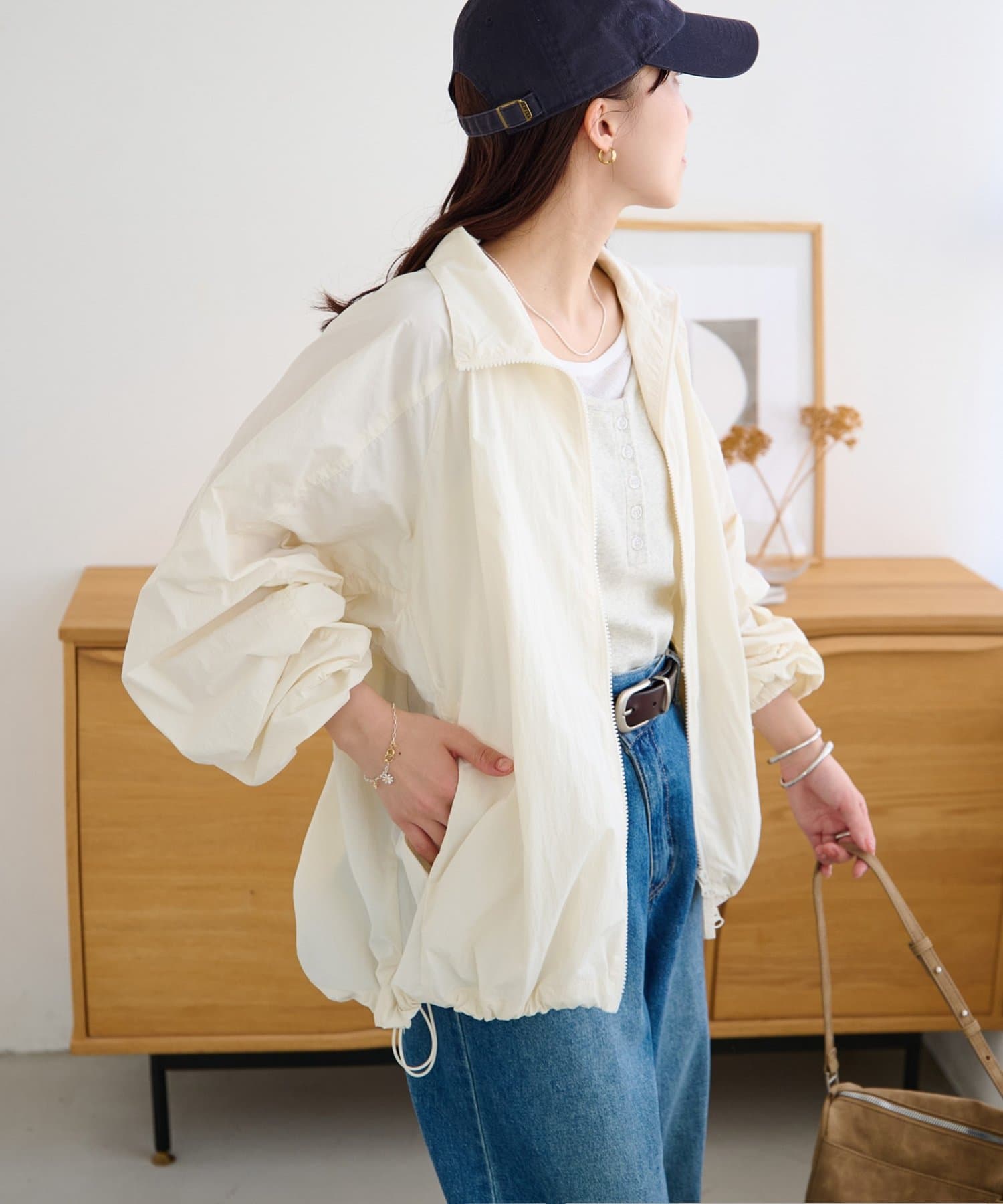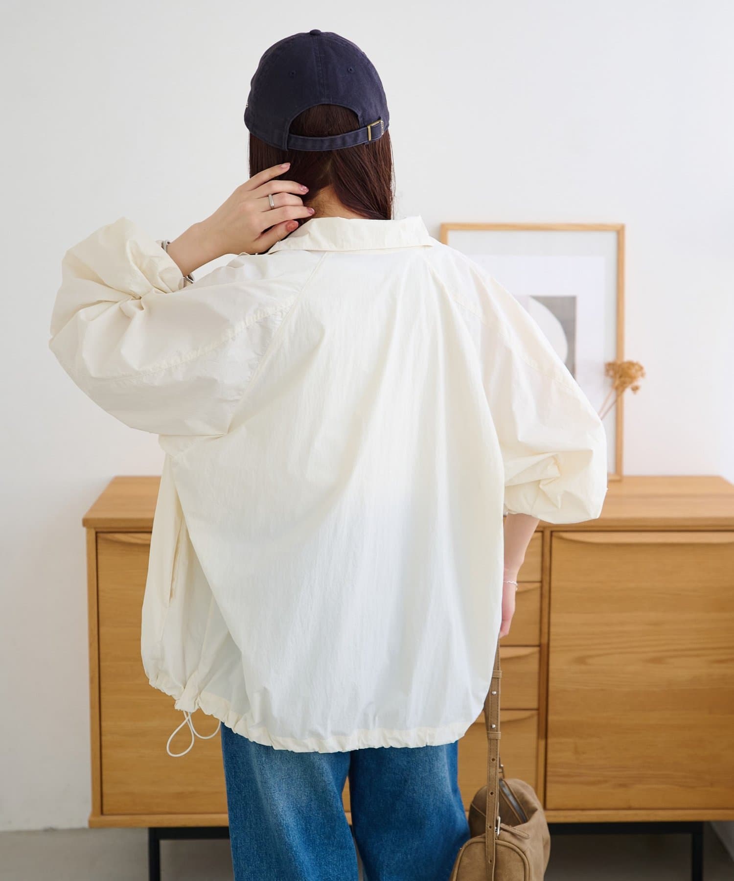 152cmスタッフ:ドローコードで裾を絞って着丈を調整できるので、小柄な私でもバランスがとりやすかったです♪シャリ感のある軽いナイロン素材で、レジャーなどのお出かけシーンにも持っていきたいです!