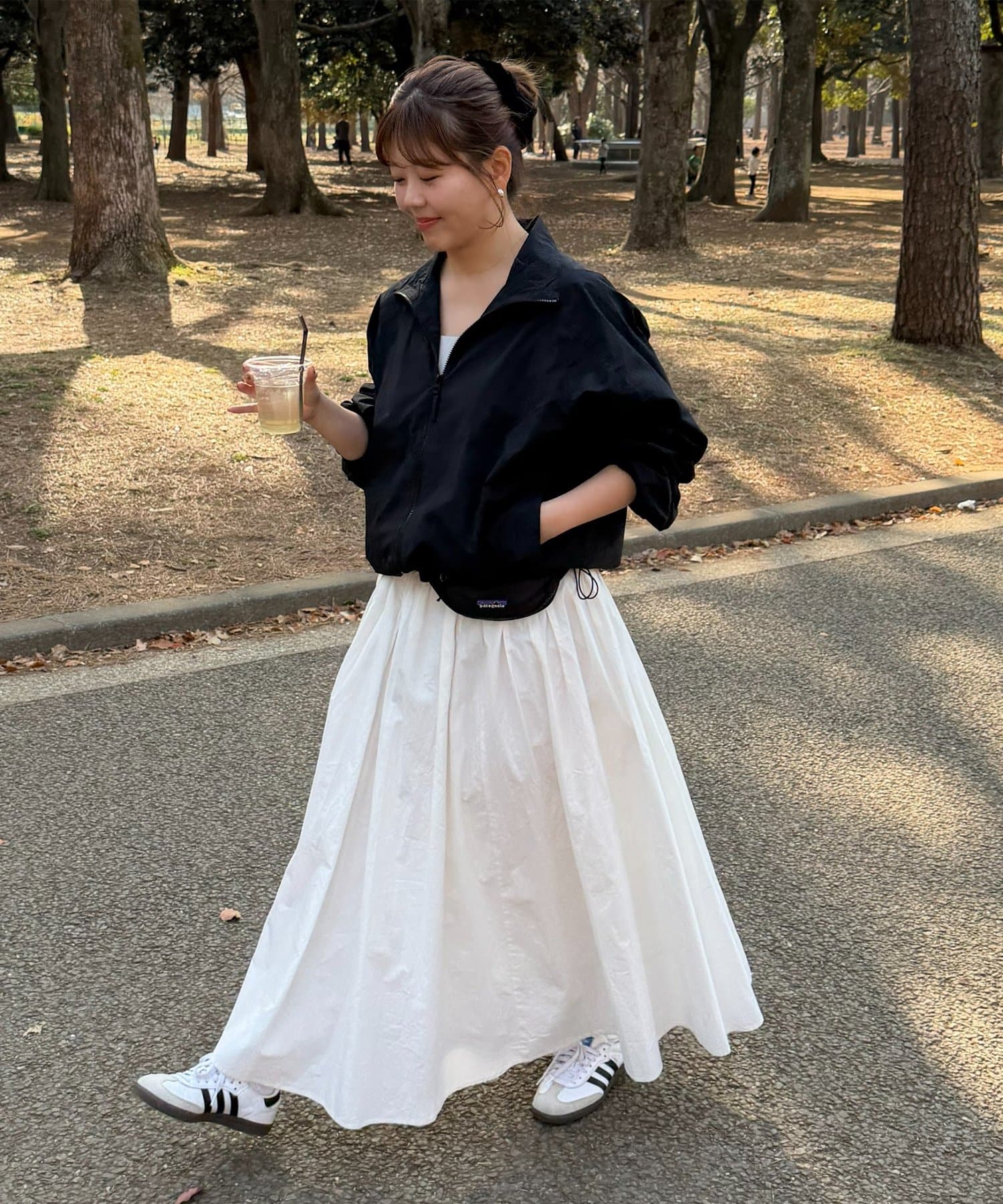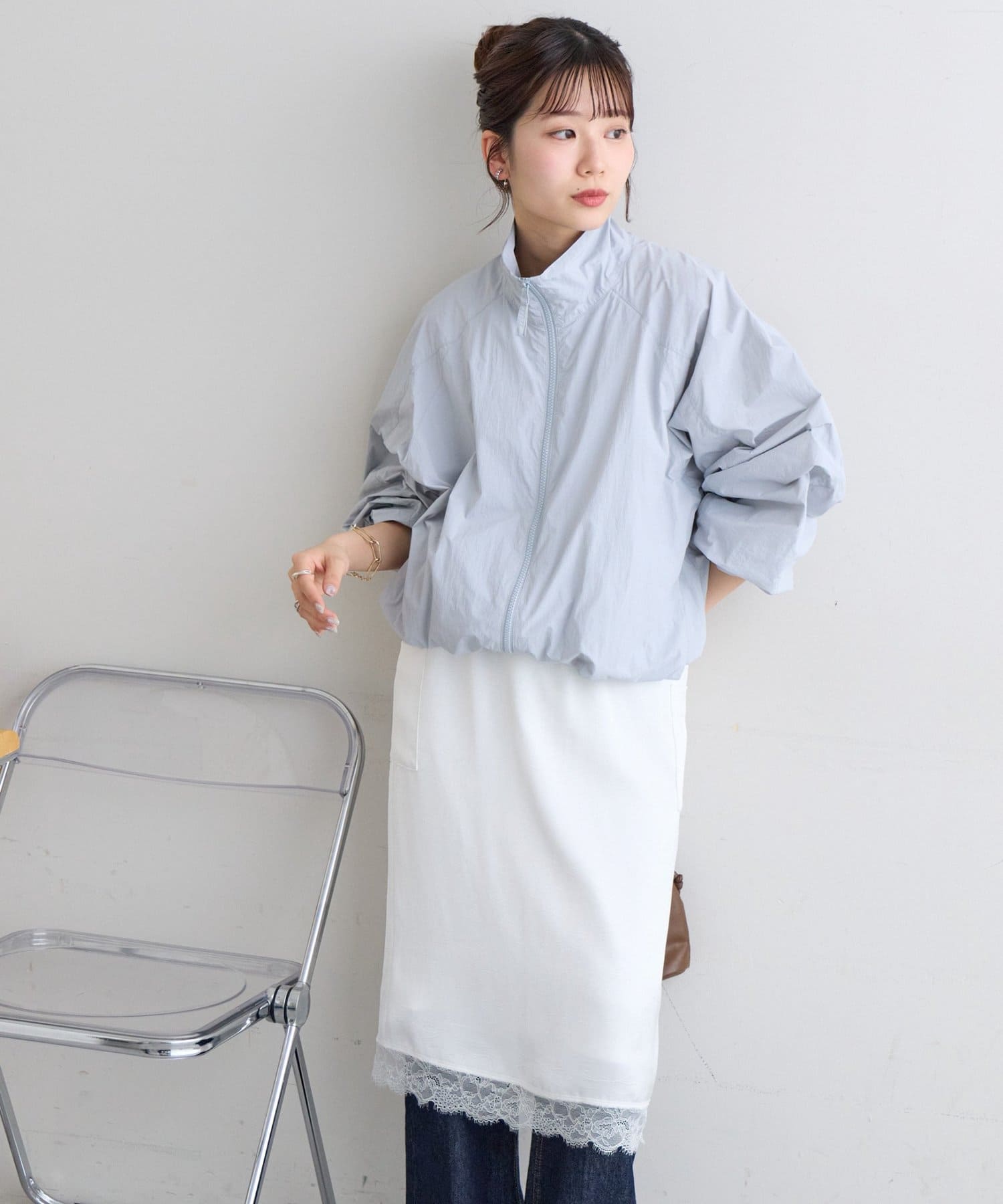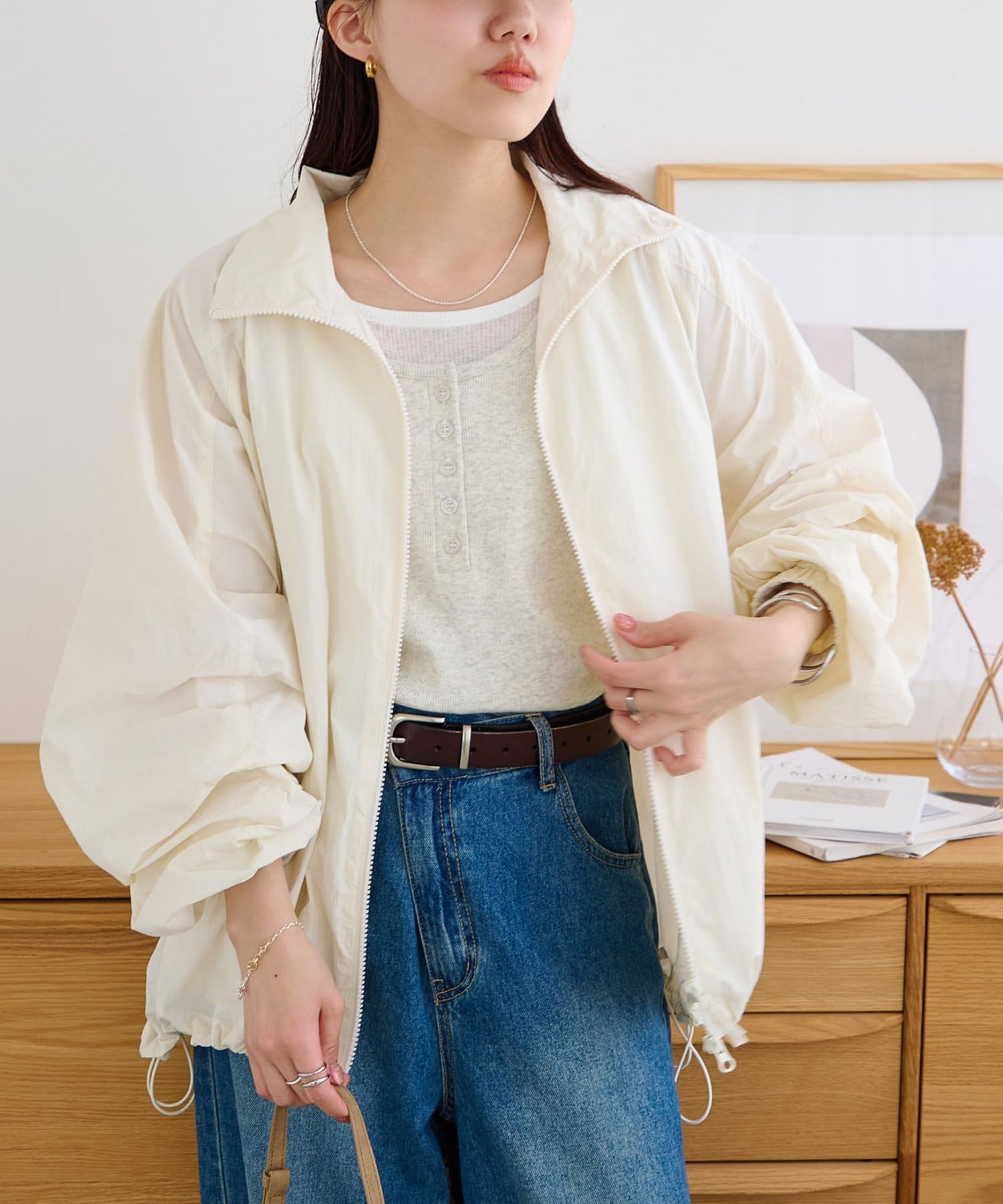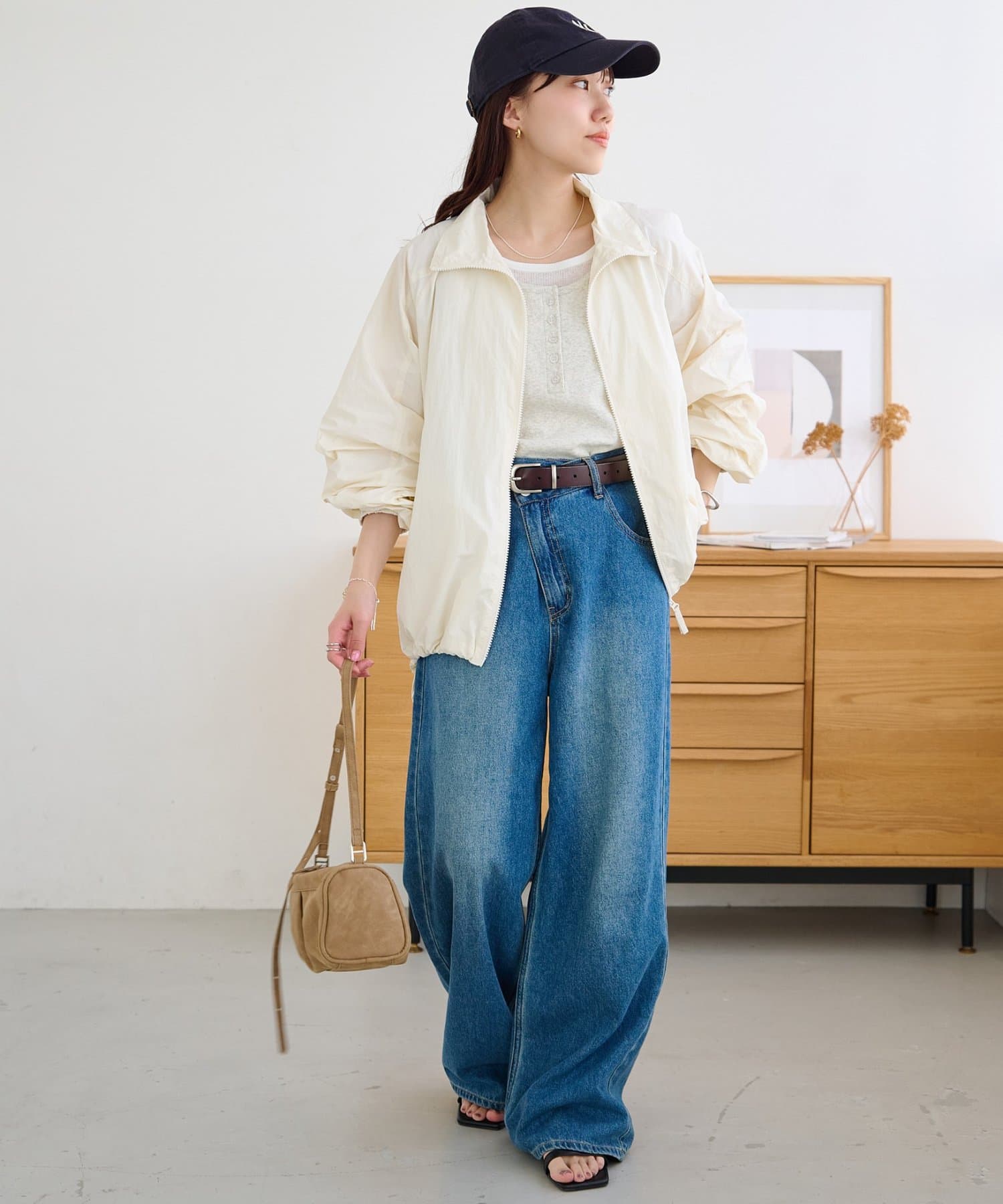 152cmスタッフ:ドローコードで裾を絞って着丈を調整できるので、小柄な私でもバランスがとりやすかったです♪シャリ感のある軽いナイロン素材で、レジャーなどのお出かけシーンにも持っていきたいです!