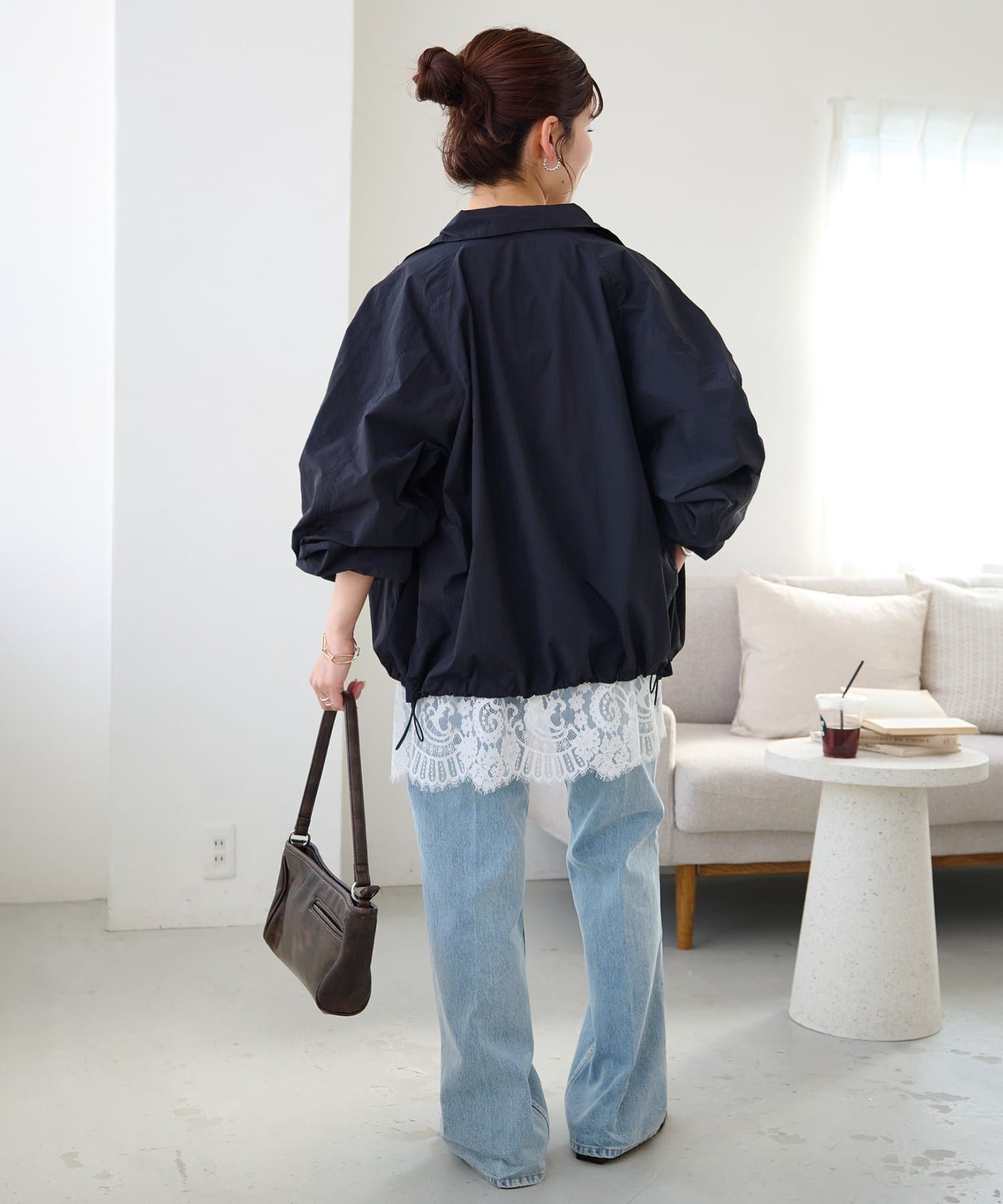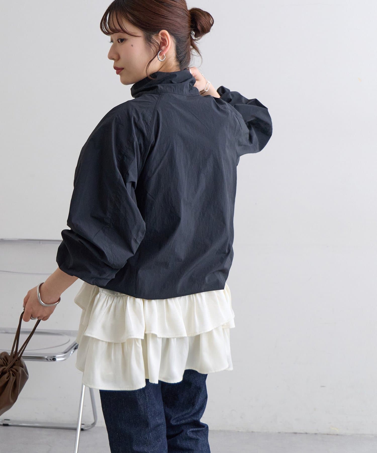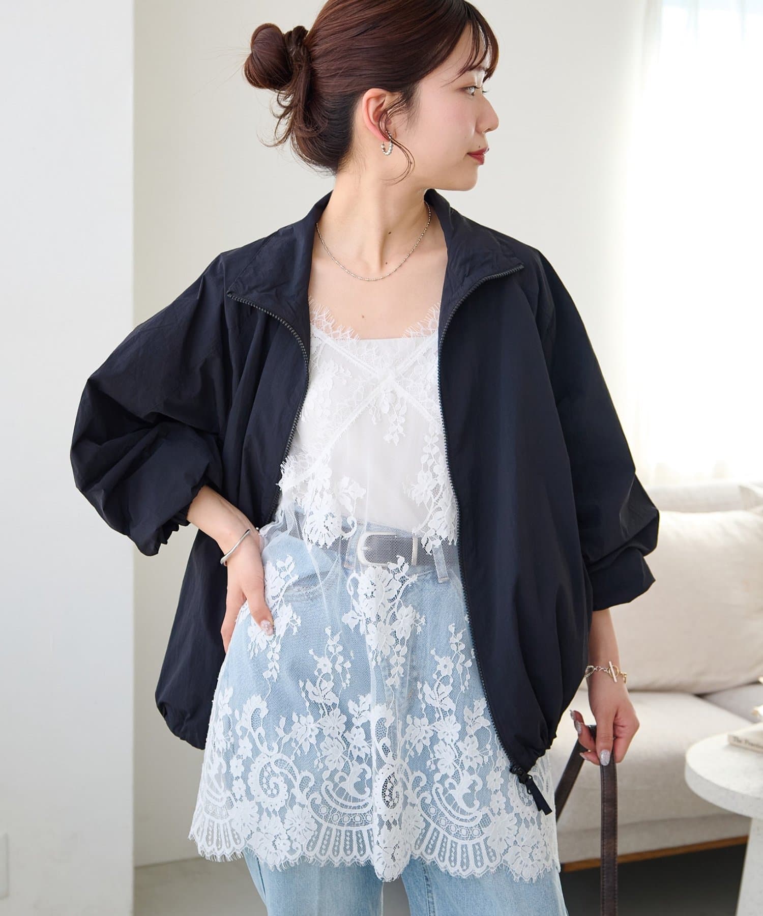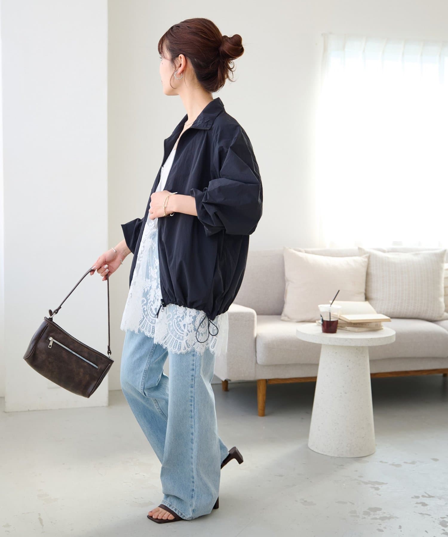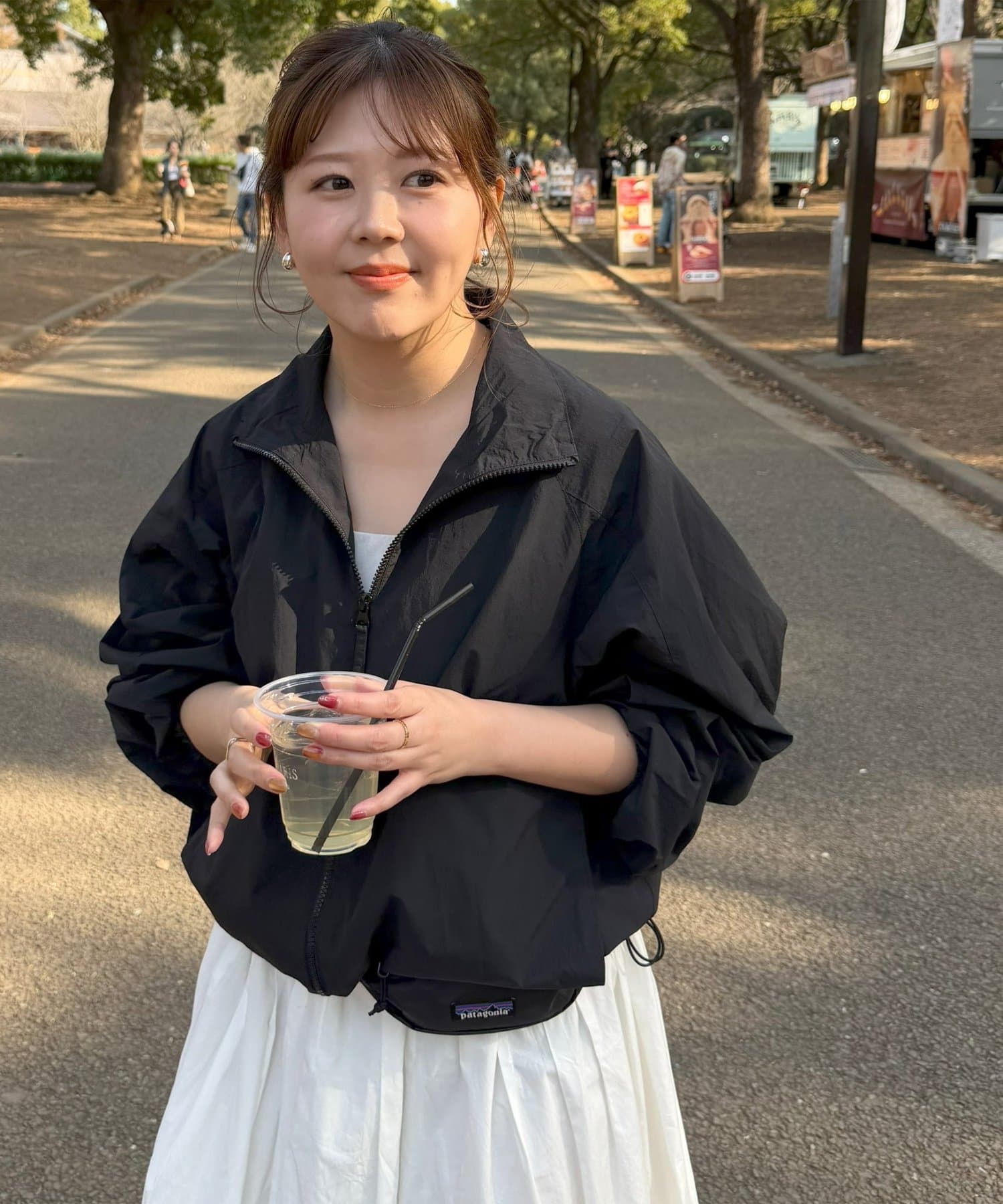 152cmスタッフ:ドローコードで裾を絞って着丈を調整できるので、小柄な私でもバランスがとりやすかったです♪シャリ感のある軽いナイロン素材で、レジャーなどのお出かけシーンにも持っていきたいです!