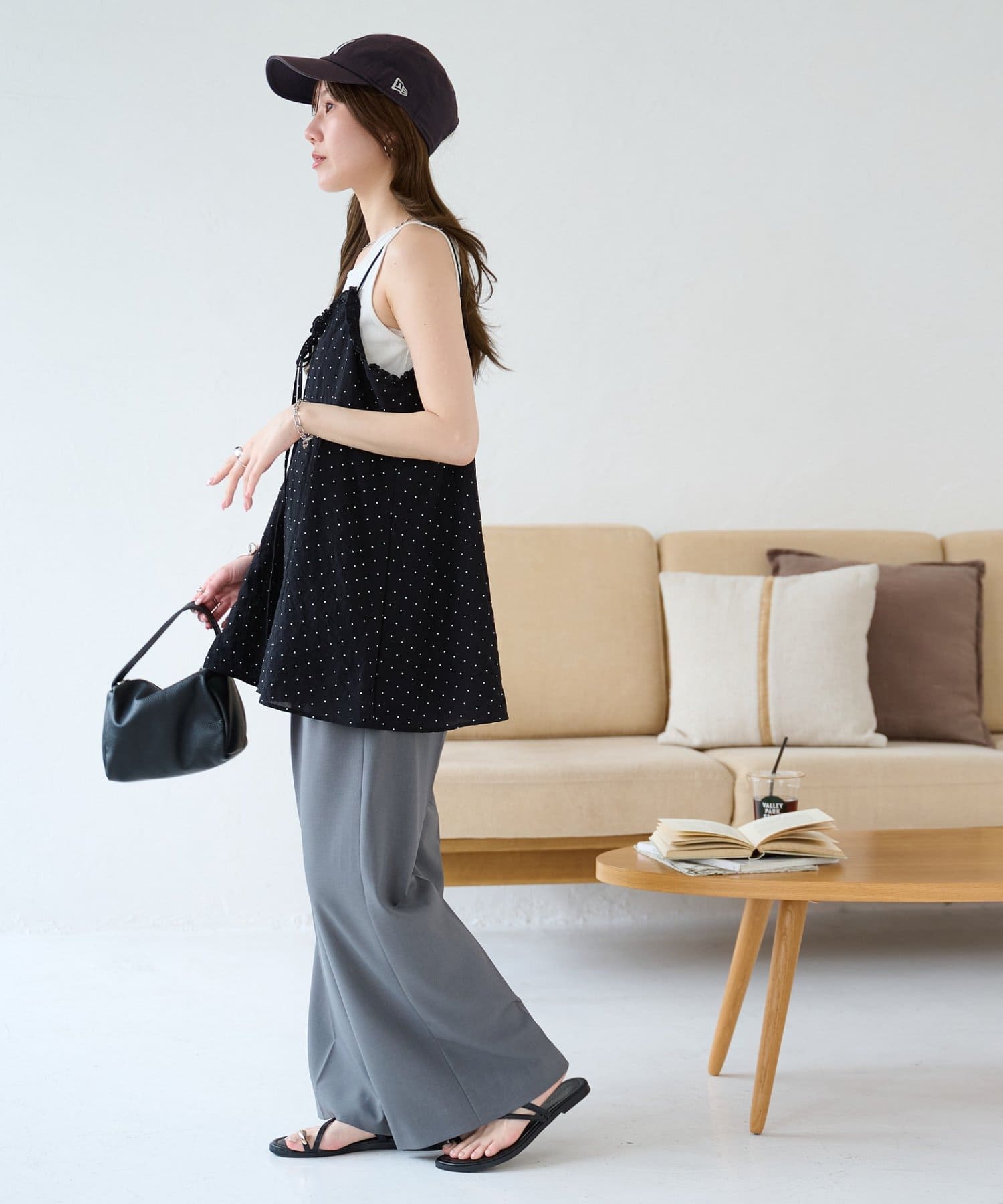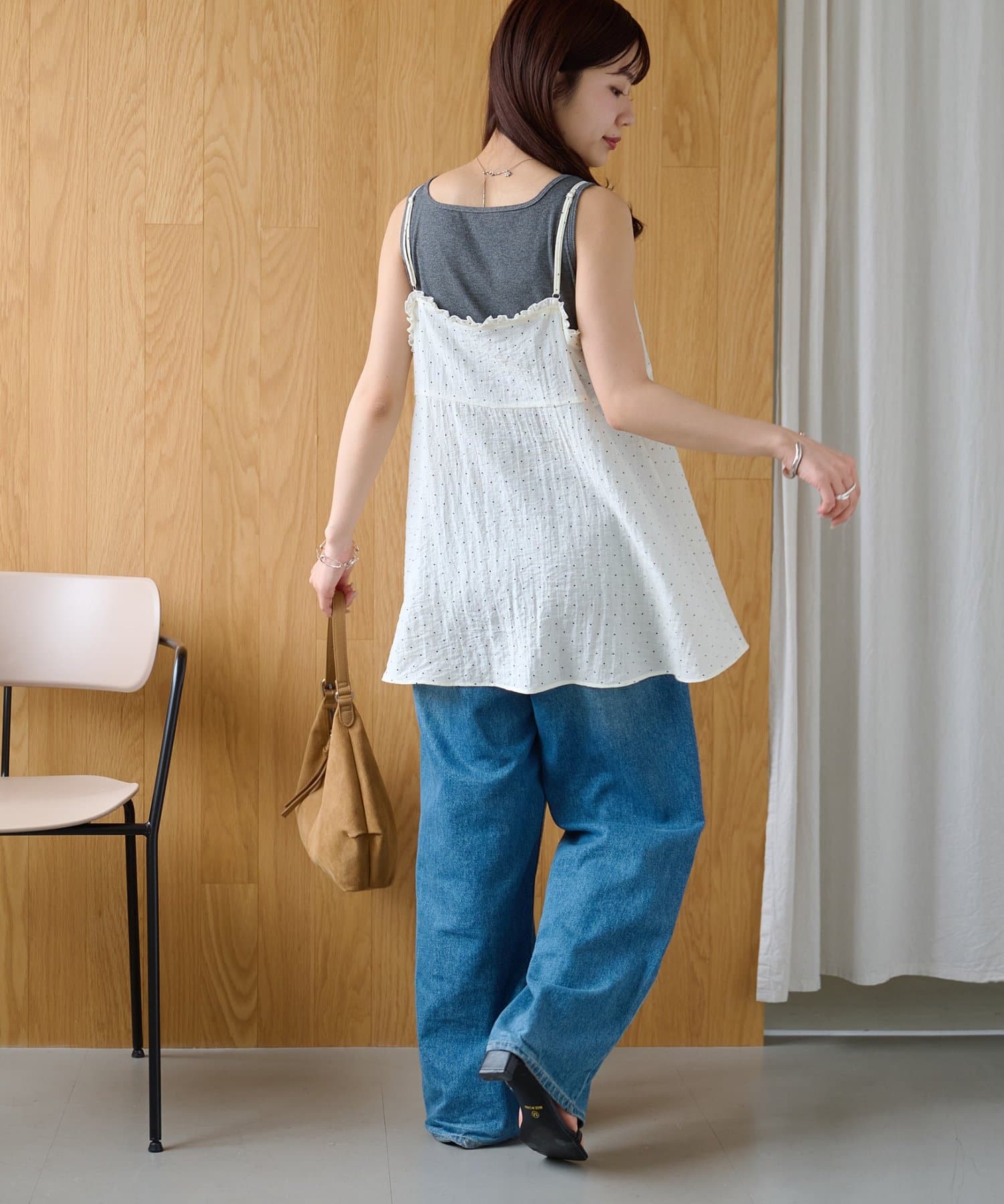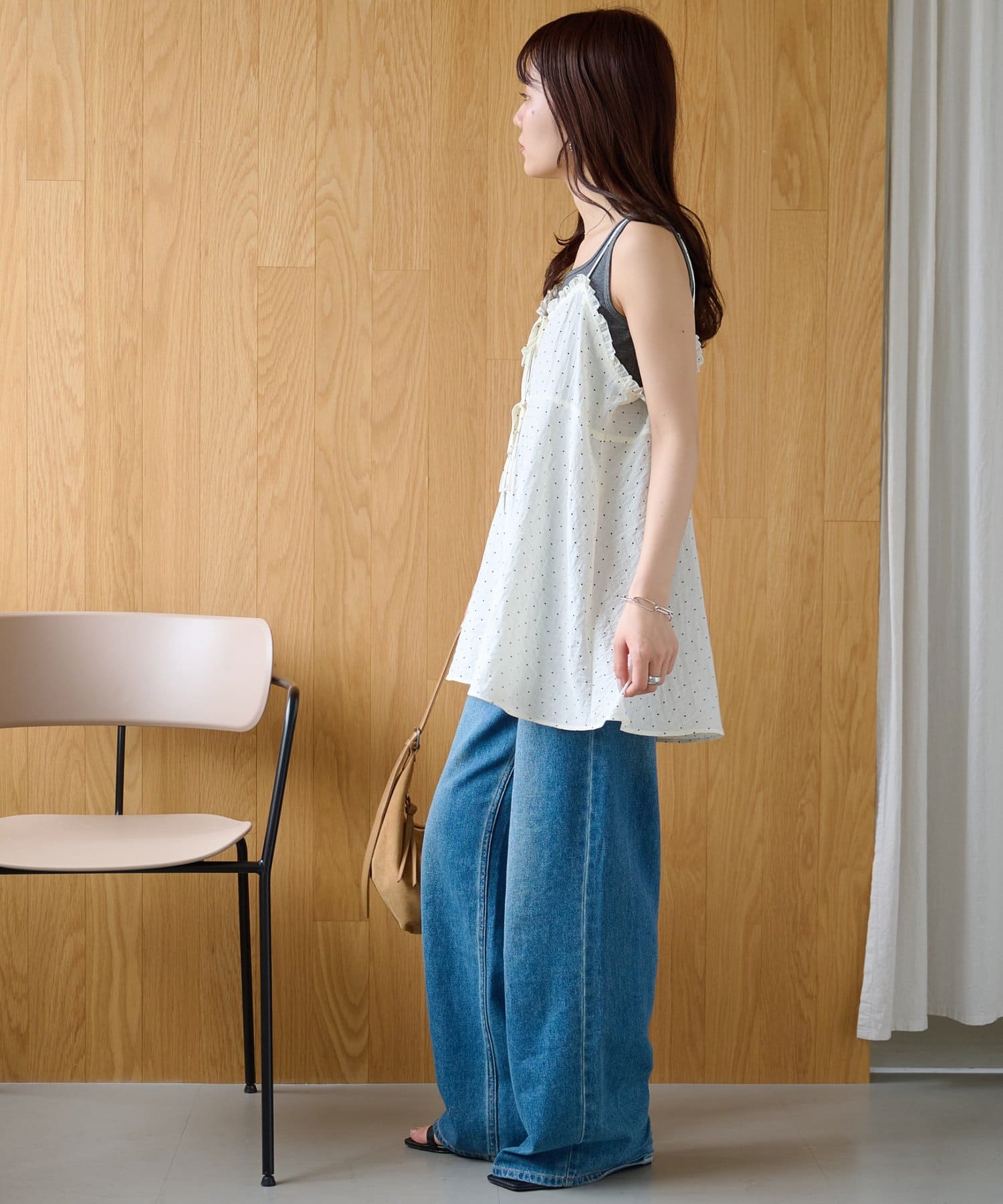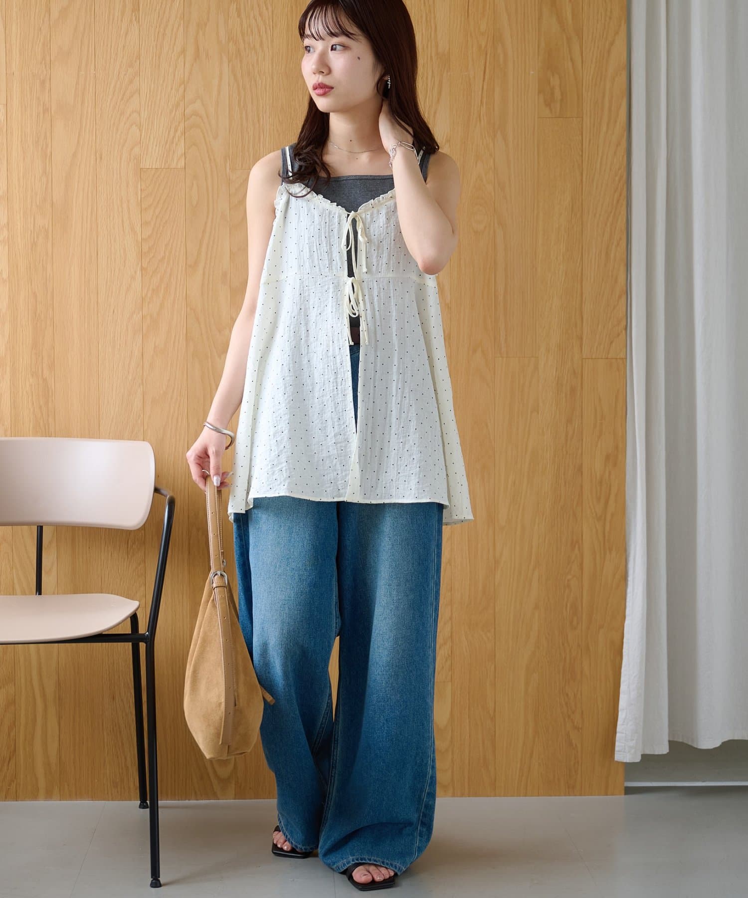 シアーな透け感とドット柄が大人可愛い!レイヤードスタイルに活躍するキャミソール