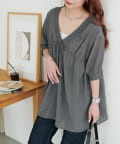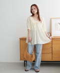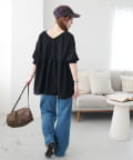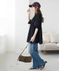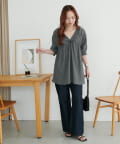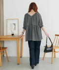 159cmスタッフ:ヒップが隠れるチュニック丈と、リラクシーなサイズ感でおしゃれに体型カバーが叶います♪肘にかかるくらいの長めの袖丈で、二の腕も隠れるのが◎