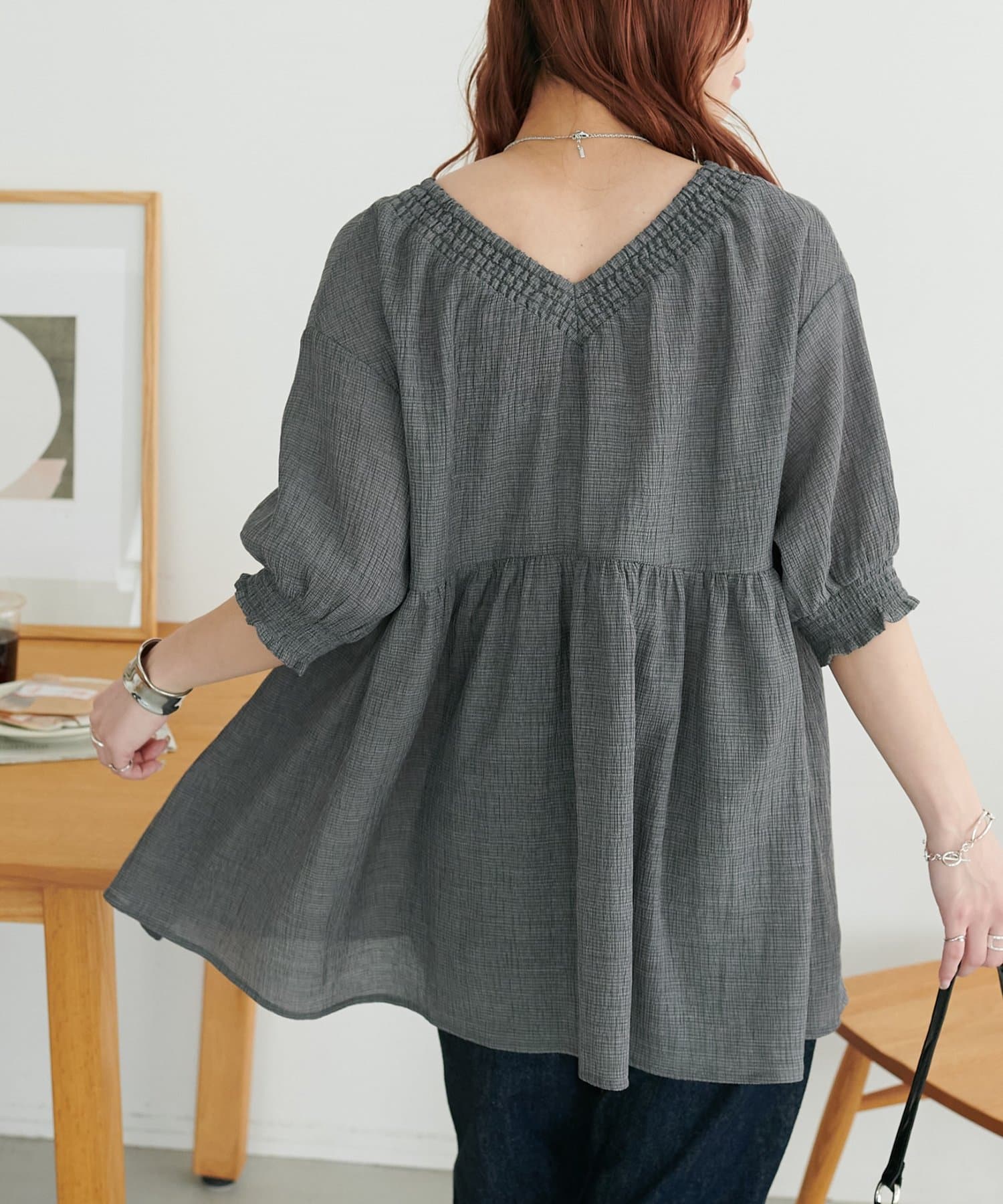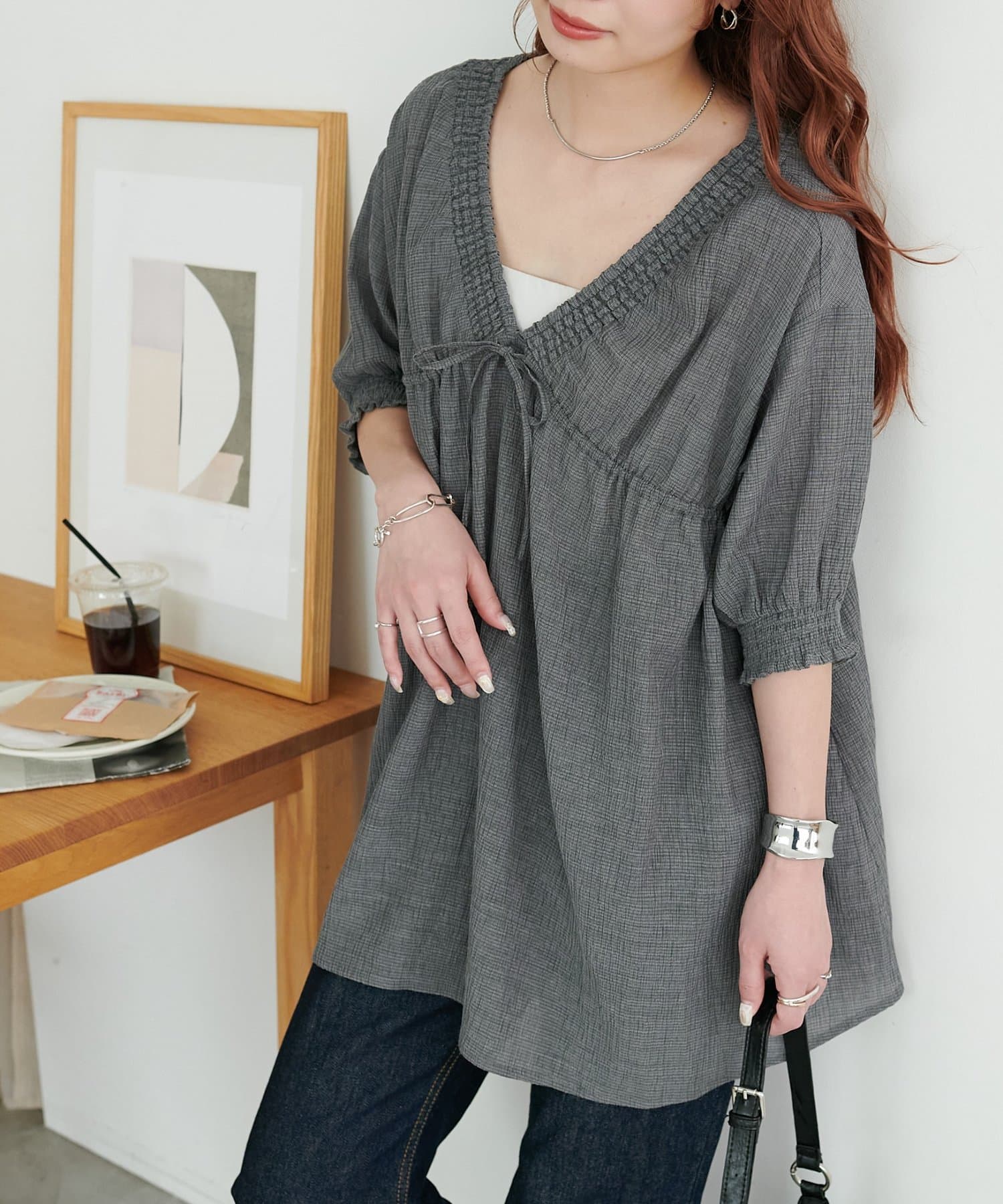 シャーリングチェックチュニック