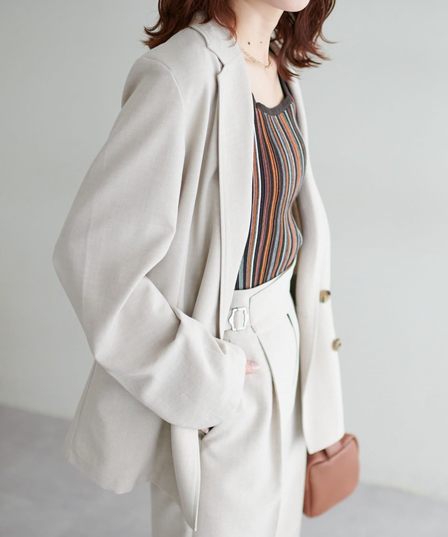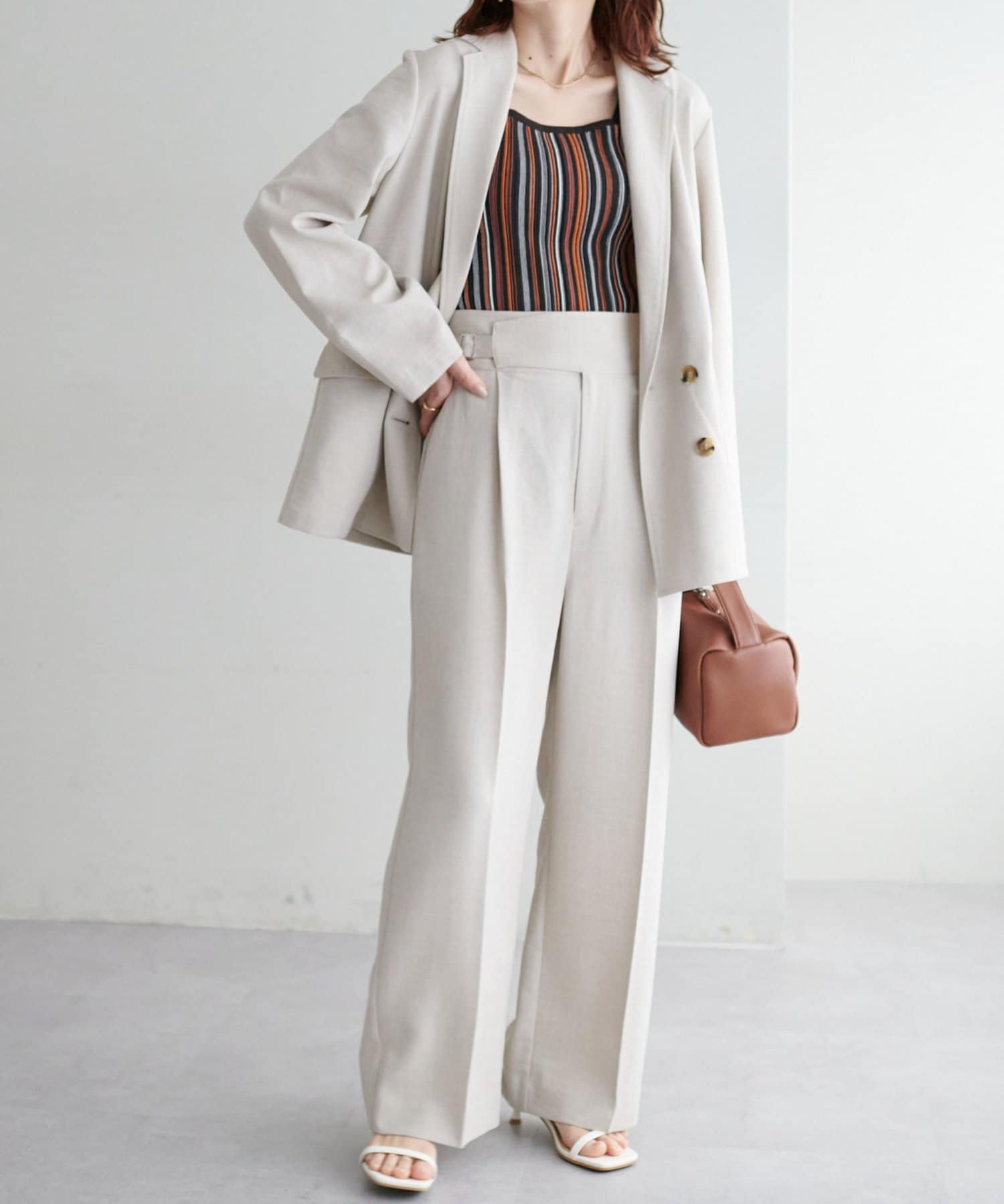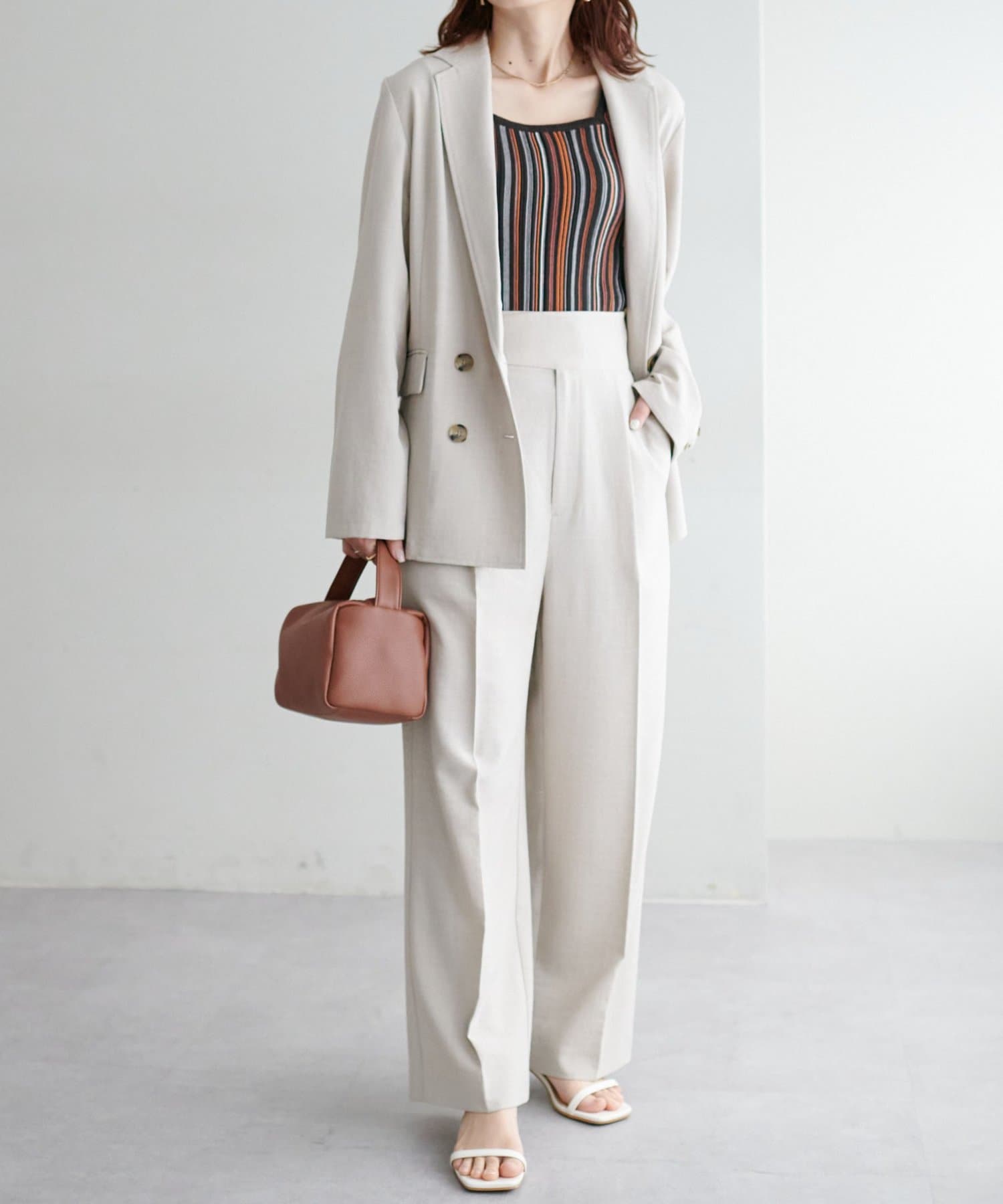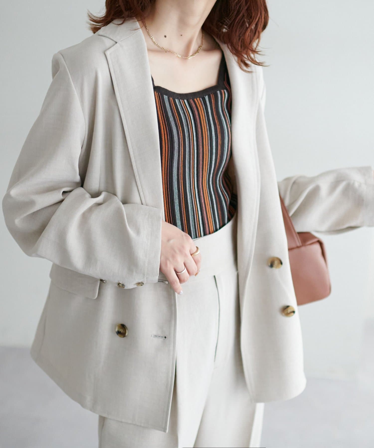 ・コーディネートにアクセントを添える、マルチストライプ柄のタンクトップ