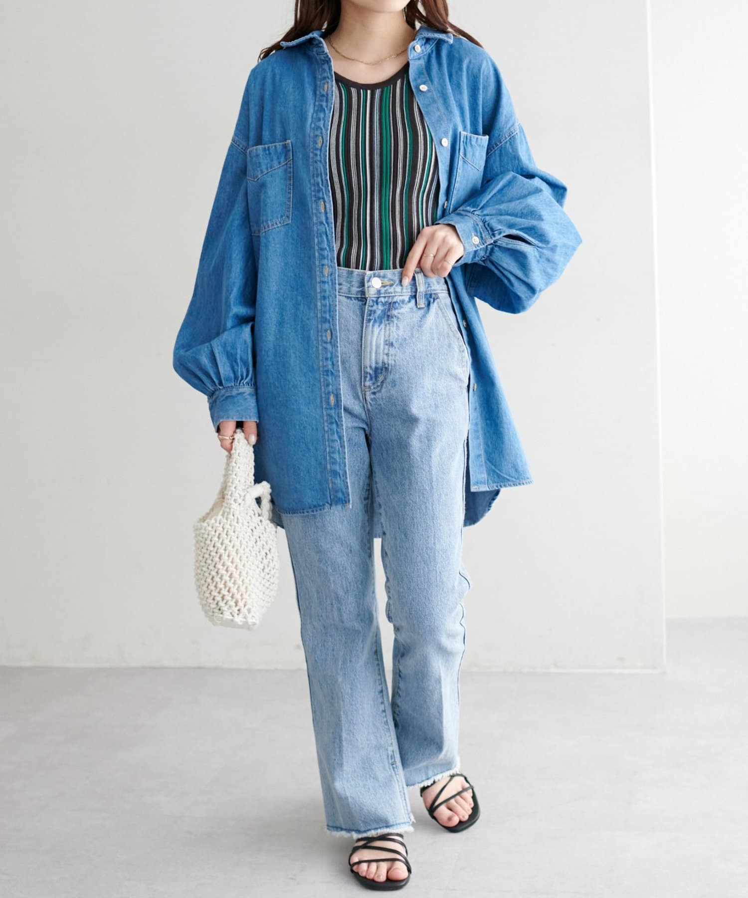 ・夏は一枚でさらっと着こなし、春秋はシャツやジャケットを羽織ってレイヤードを楽しむのがおすすめ◎