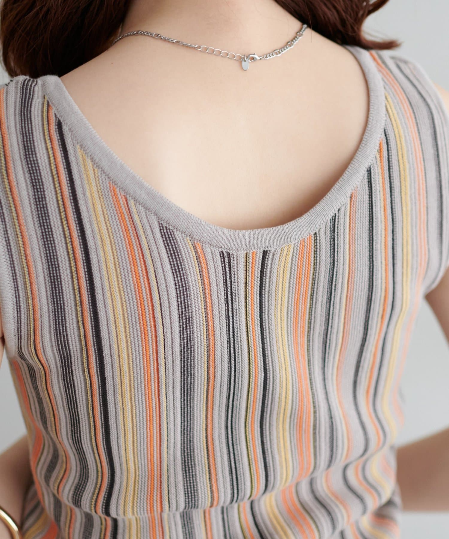 マルチストライプが目を惹くノースリーブ。