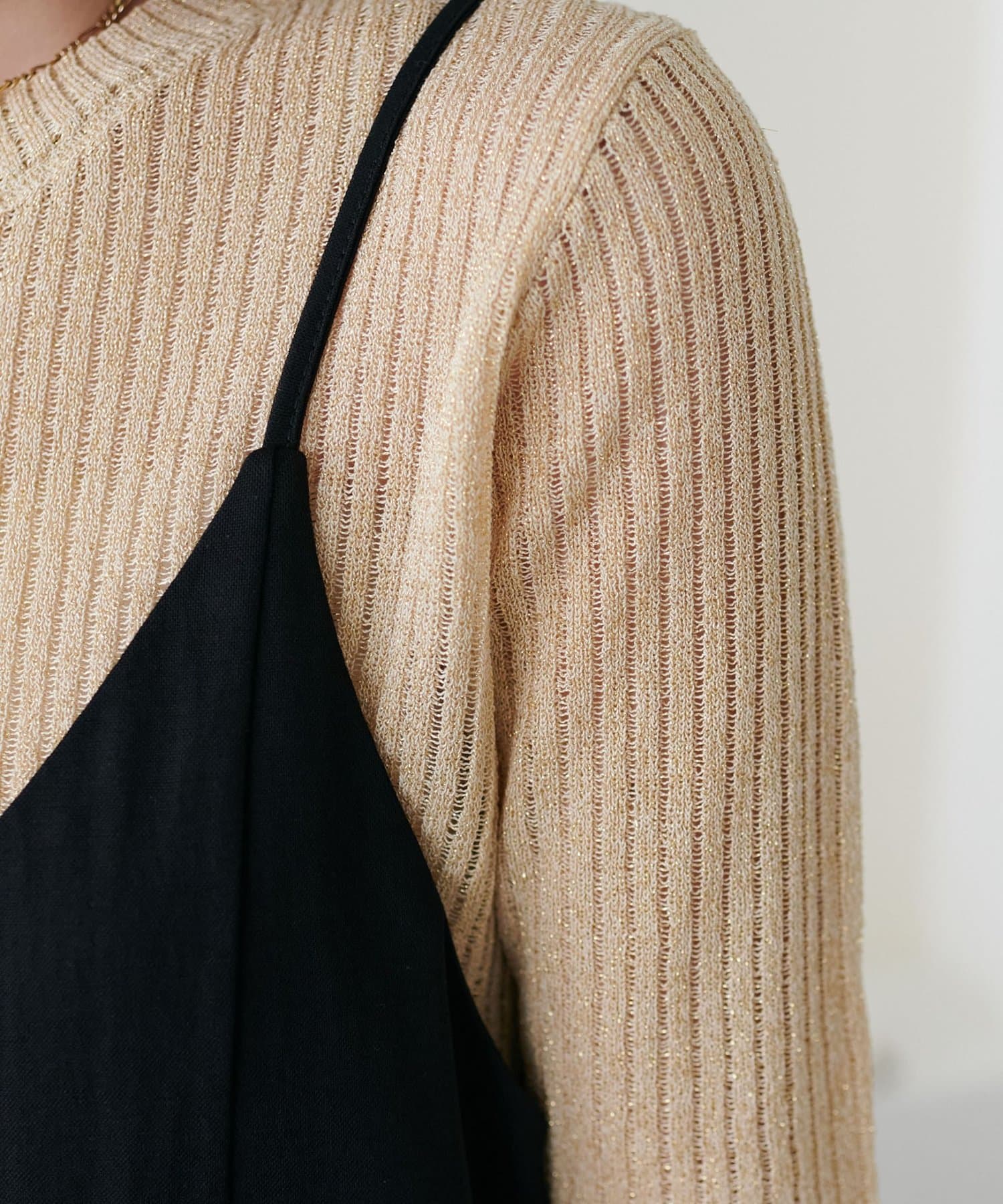 ・さりげないラメが上品で女性らしさのあるラメリブトップス