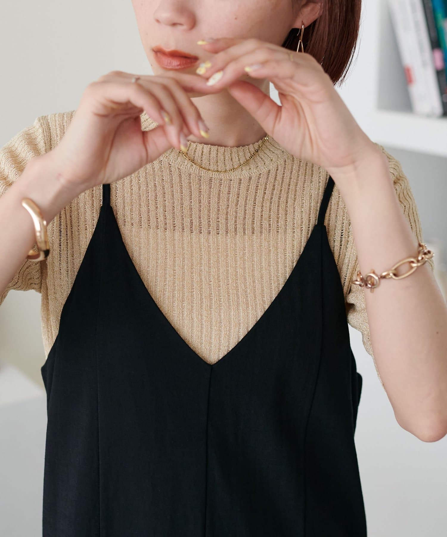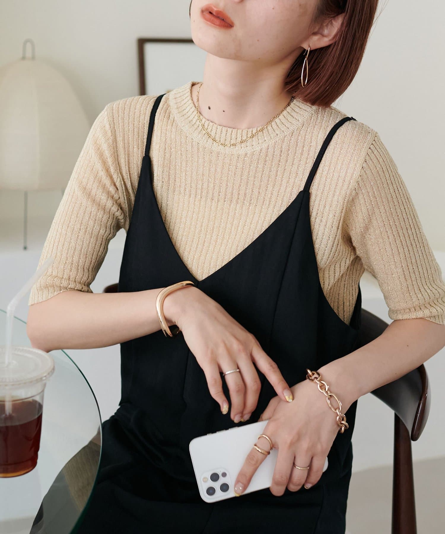 164cmスタッフ:ラメ感があるのが特徴的で、デニムなどのシンプルなボトムスと合わせるだけでサマになります!