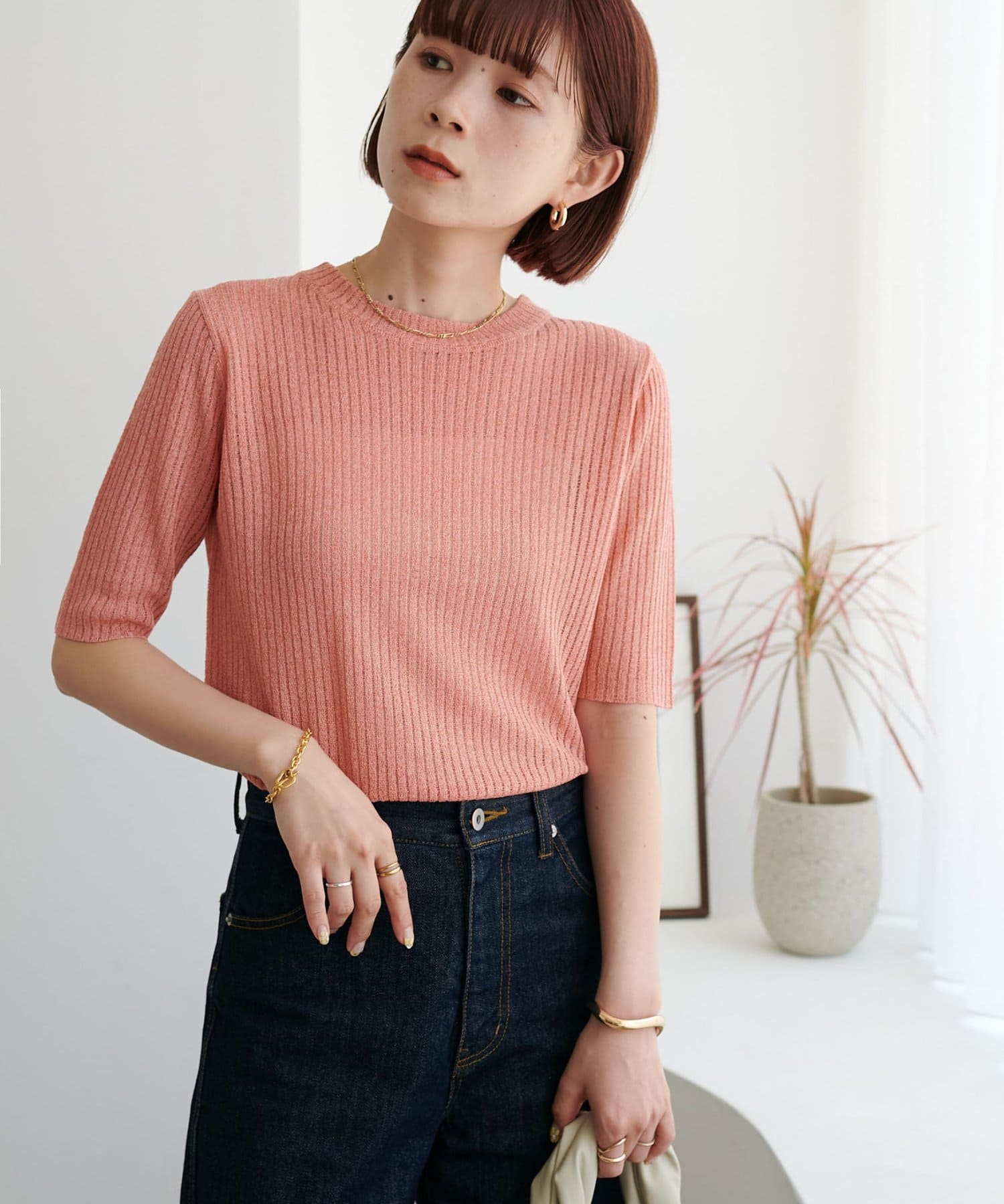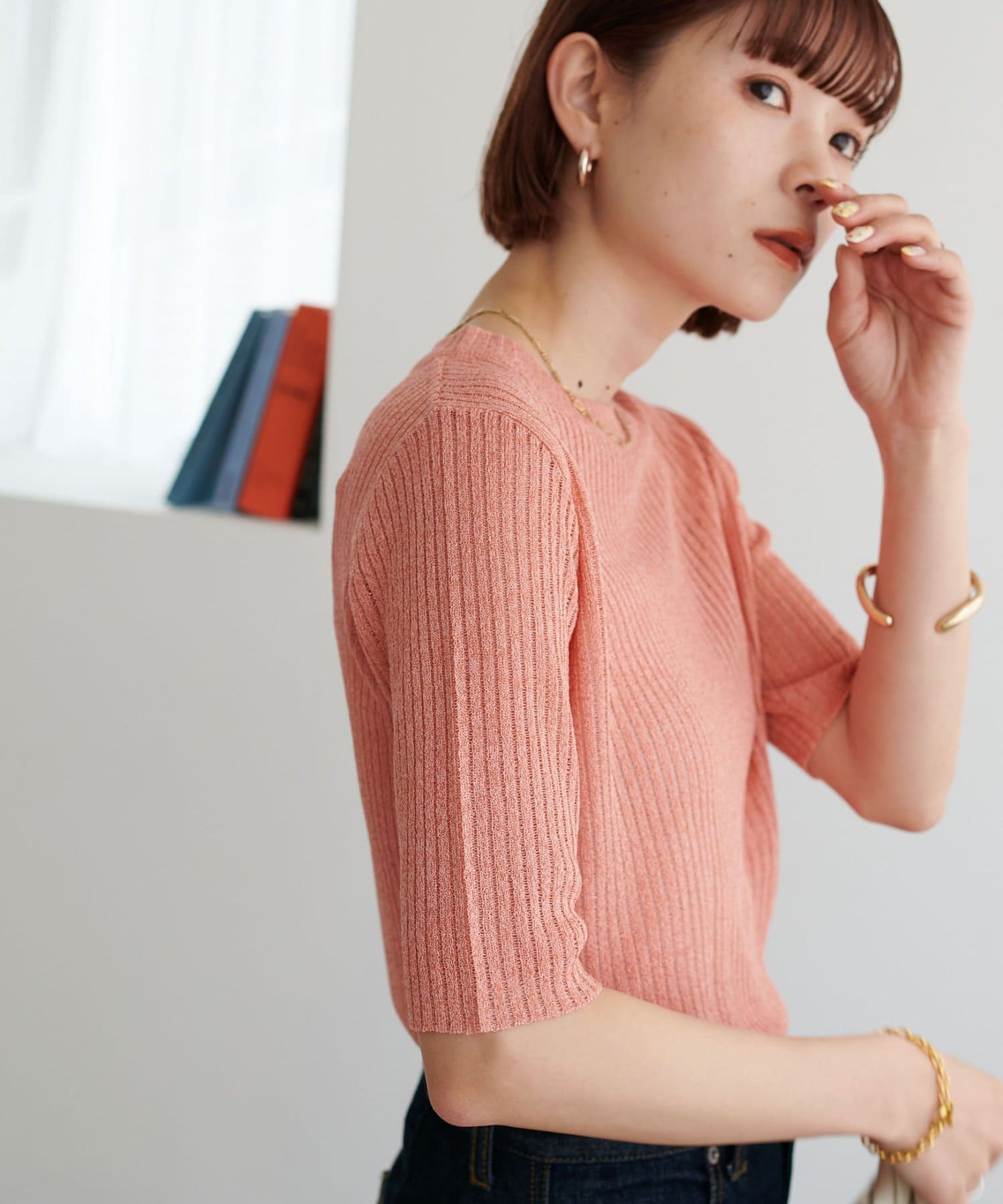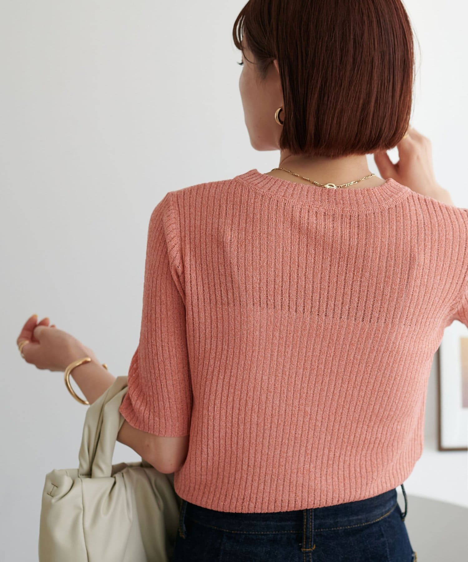 TOP > DISCOAT > レディース > トップス > ニット/セーター > 【WEB限定】ラメリブ5分袖プルオーバー